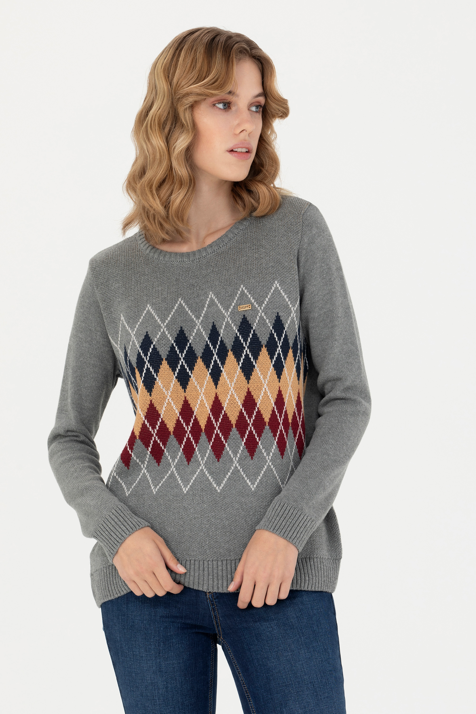 Kadın Gri Melanj Bisiklet Yaka Kazak