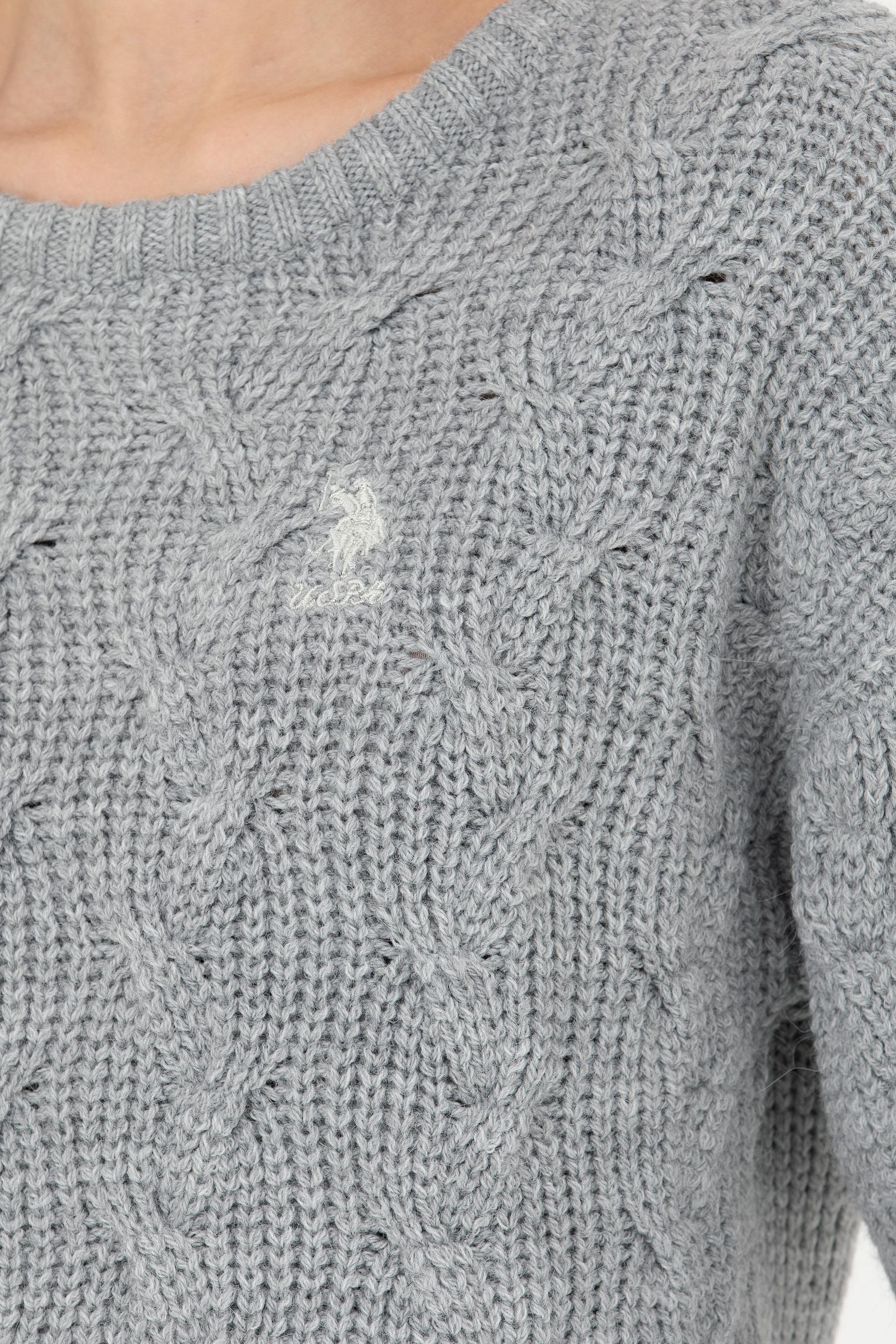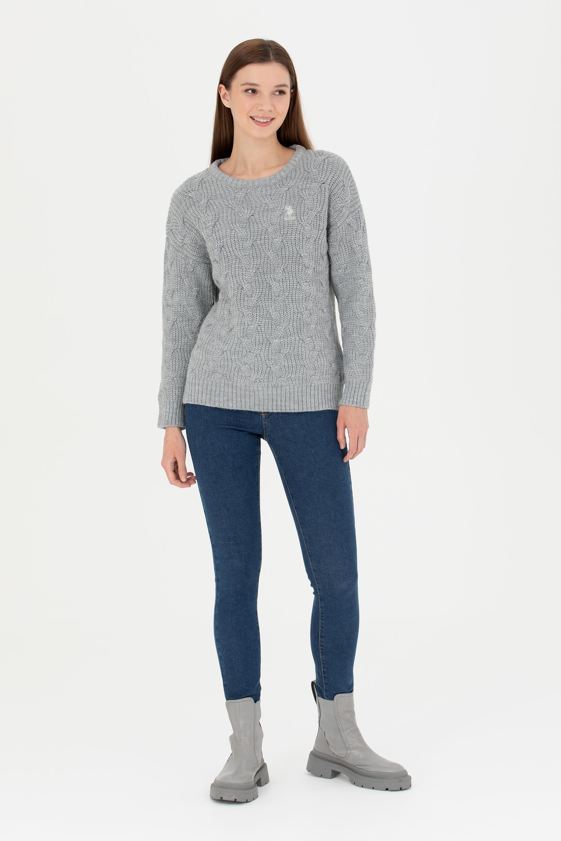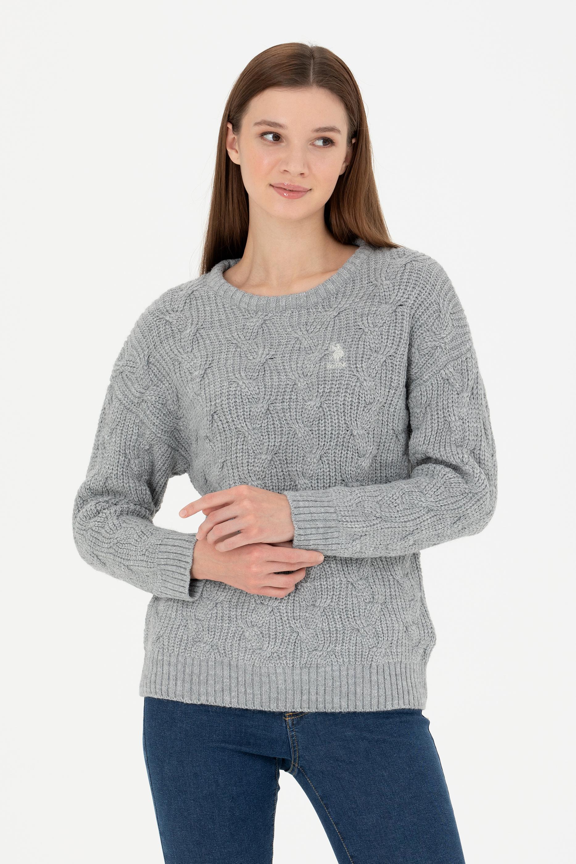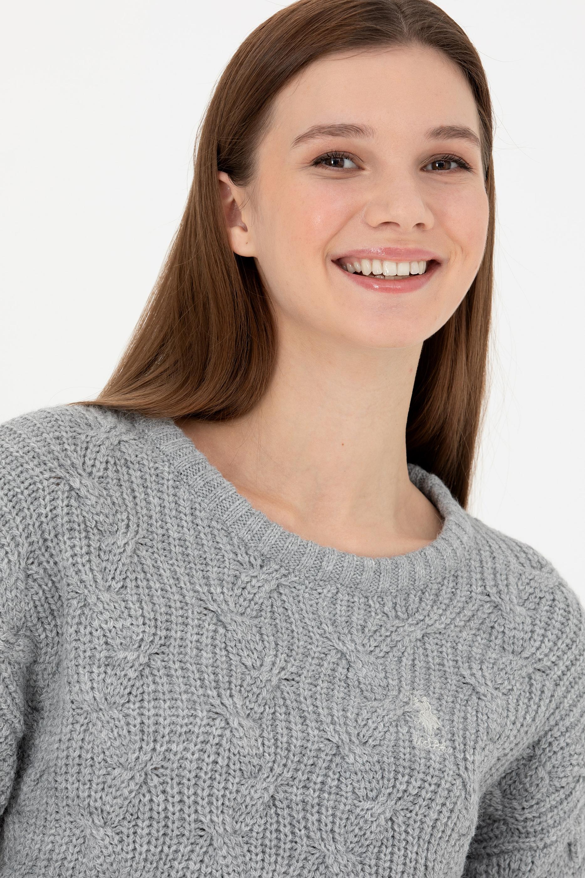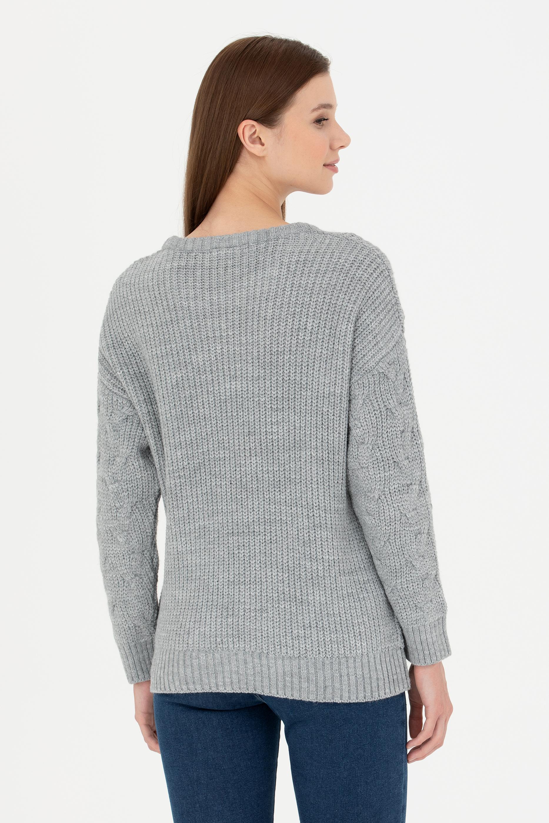 Kadın Gri Melanj Bisiklet Yaka Kazak