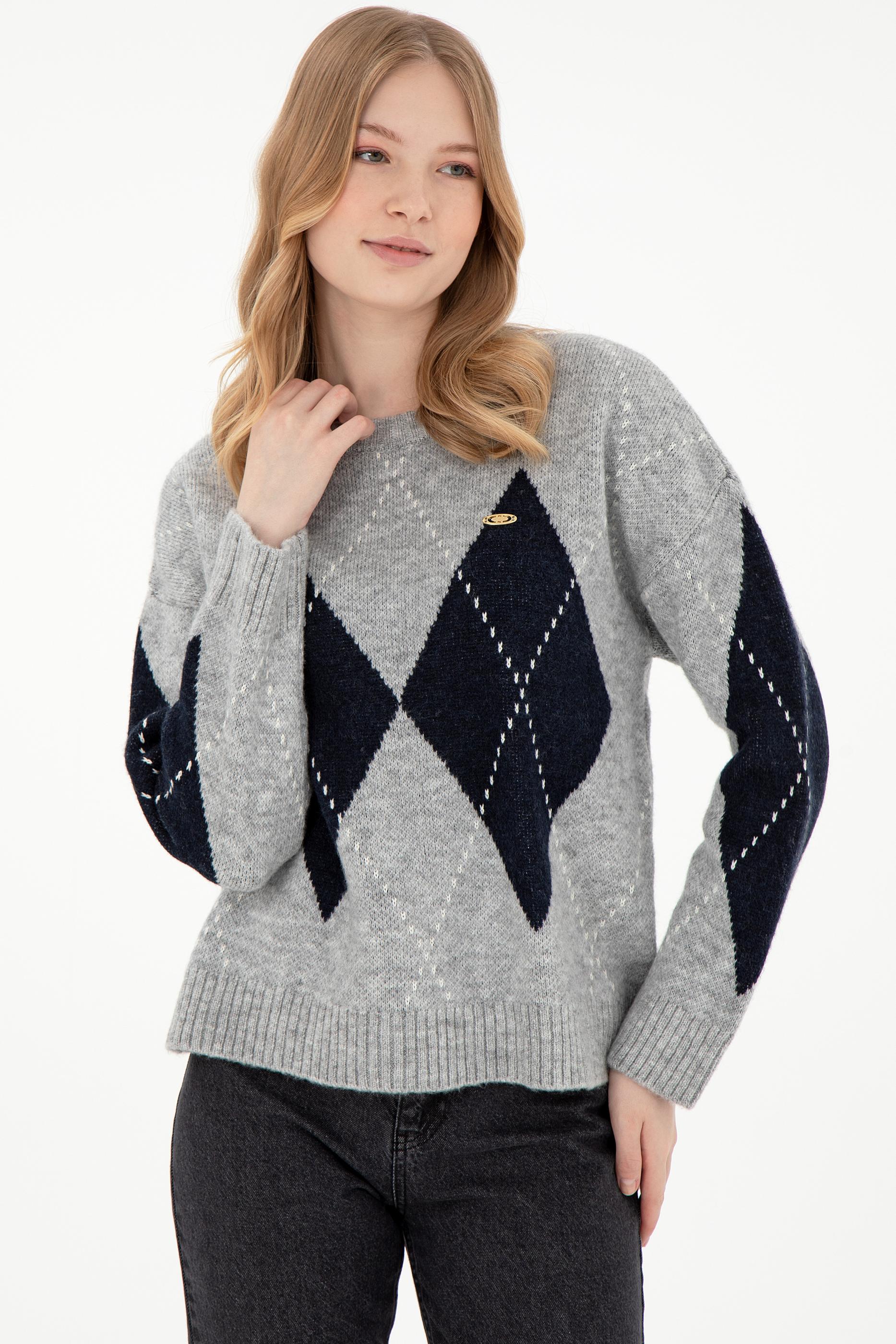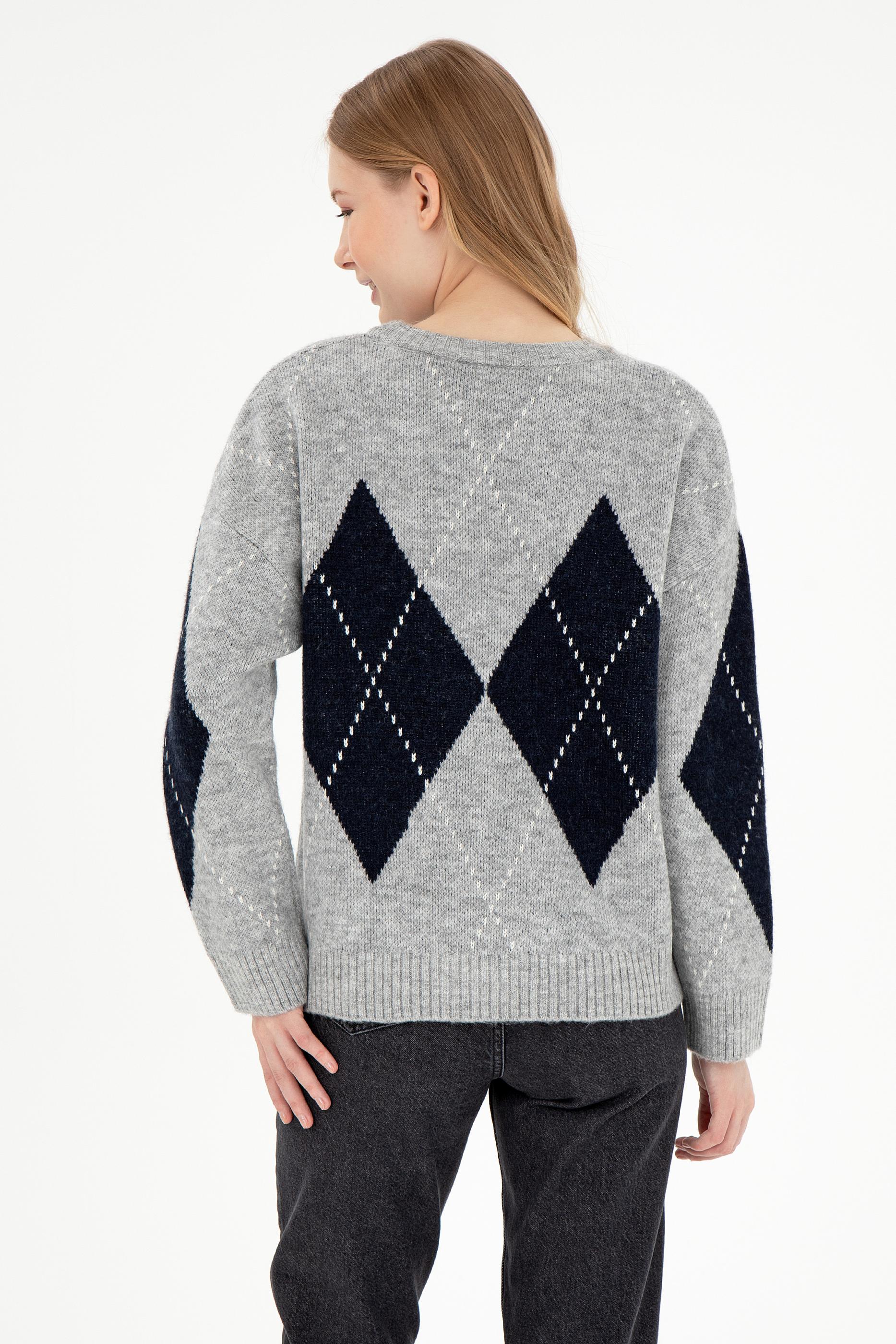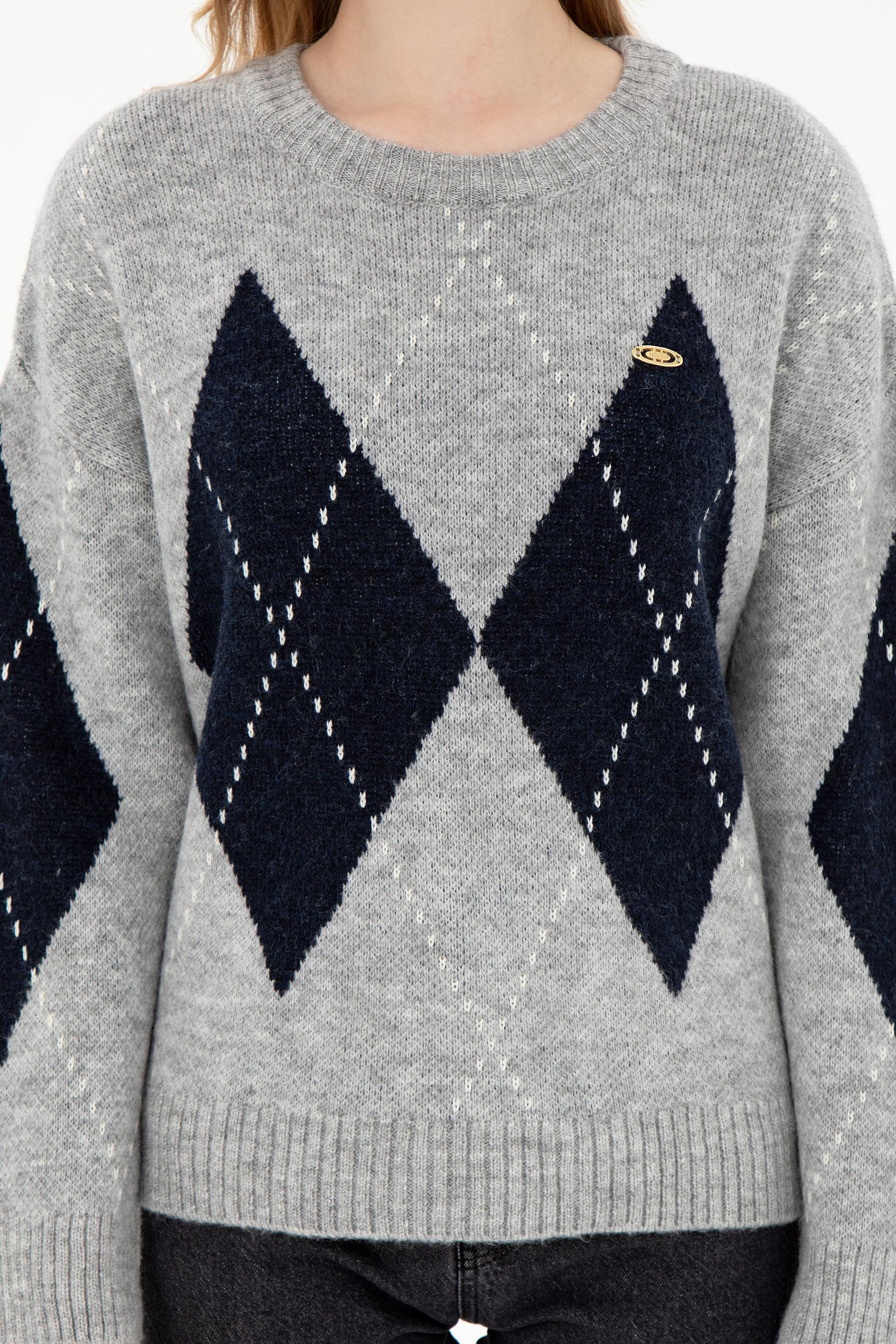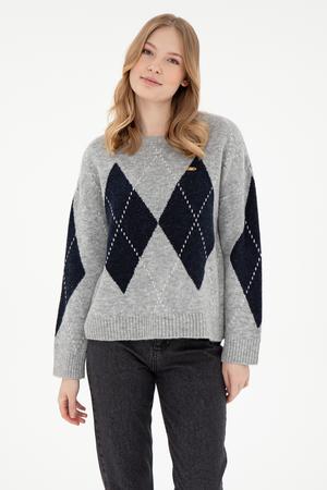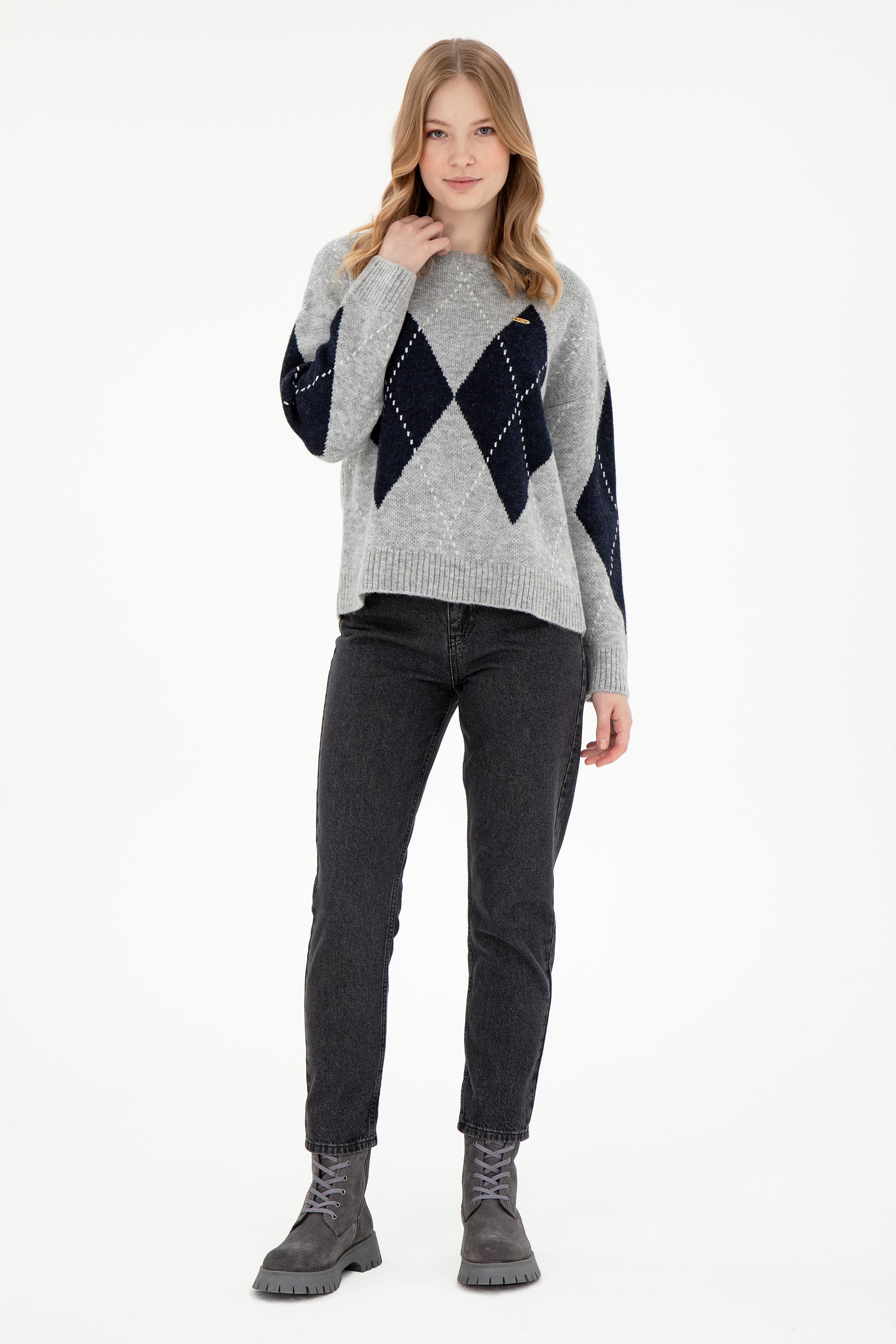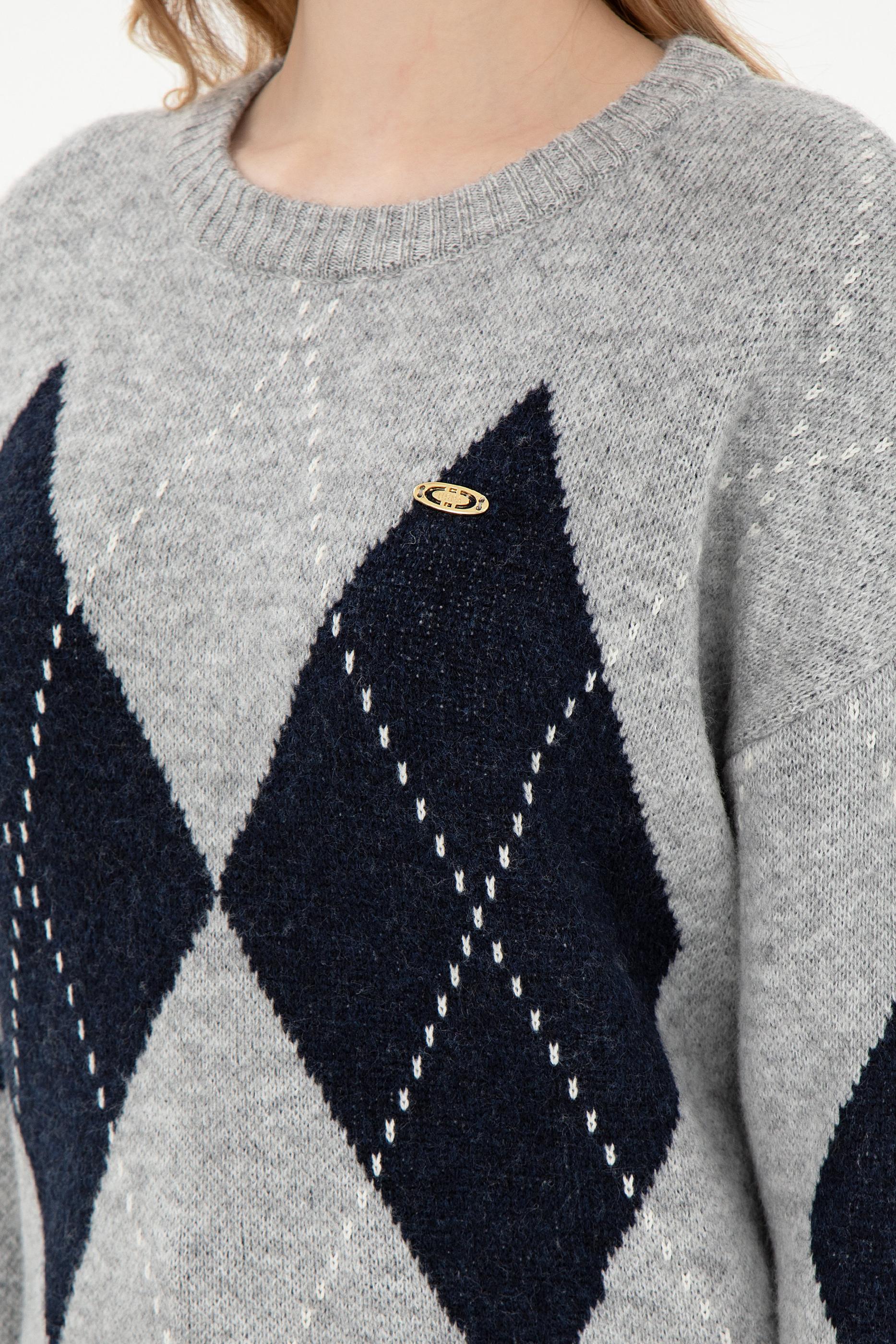 Kadın Gri Melanj Bisiklet Yaka Kazak