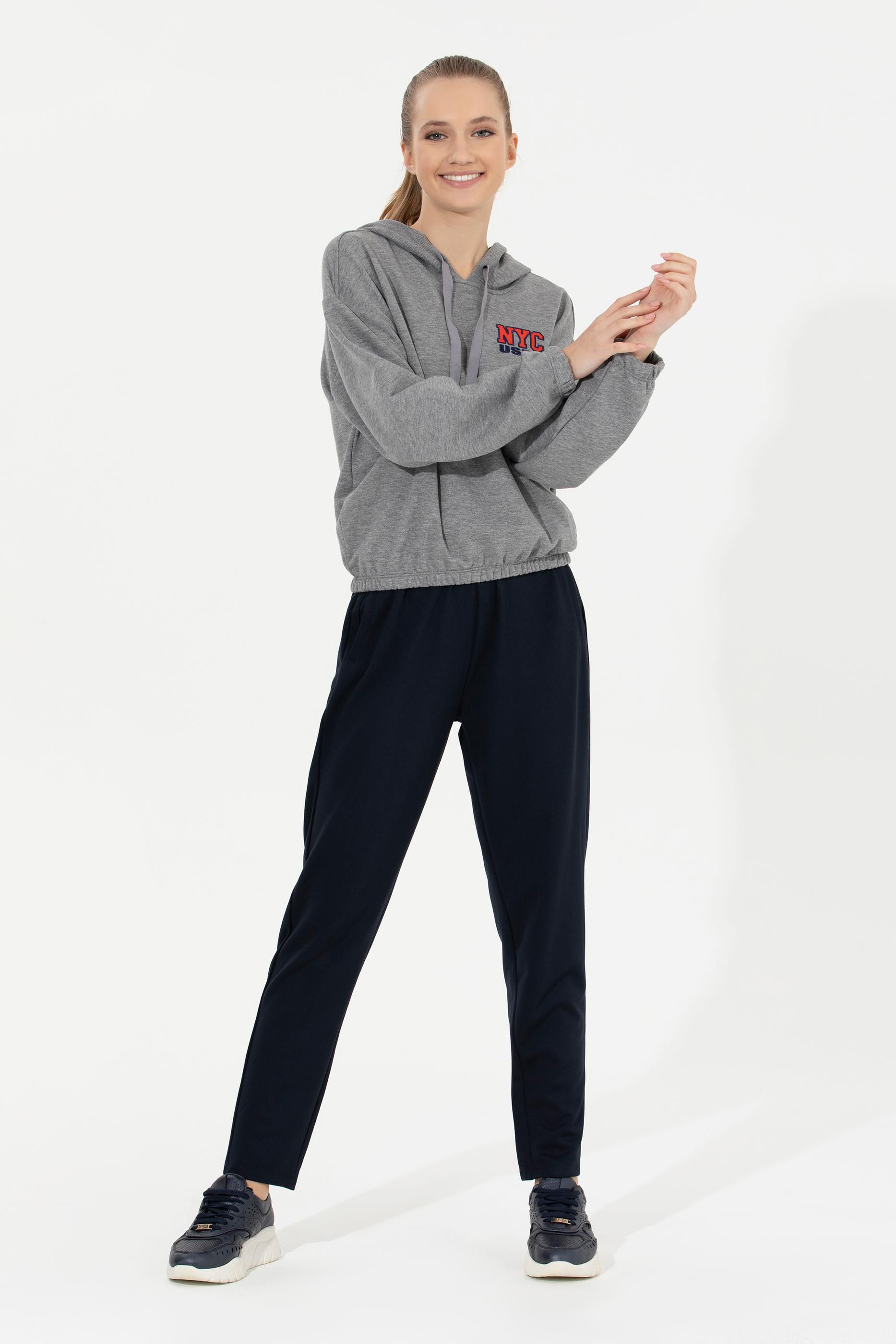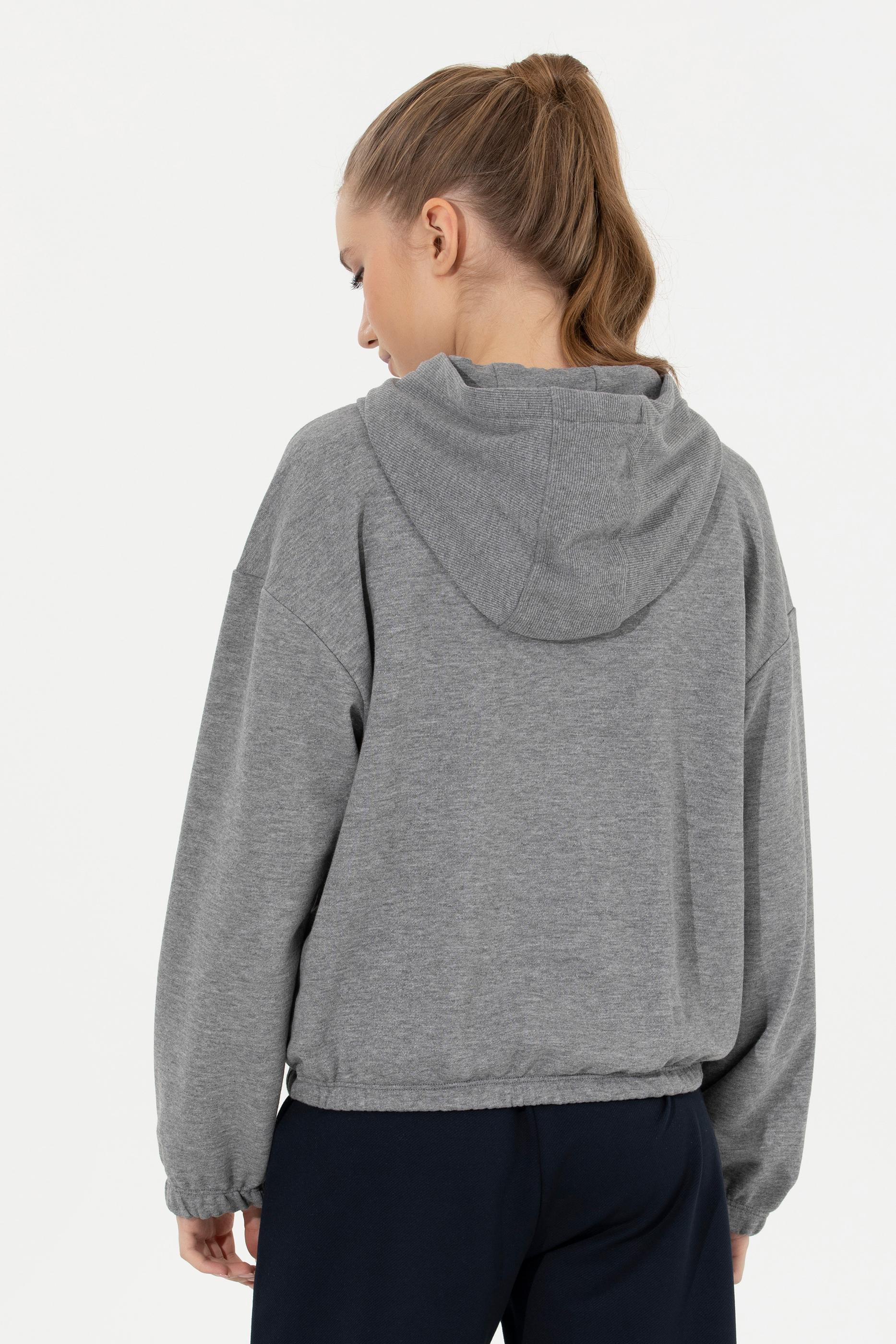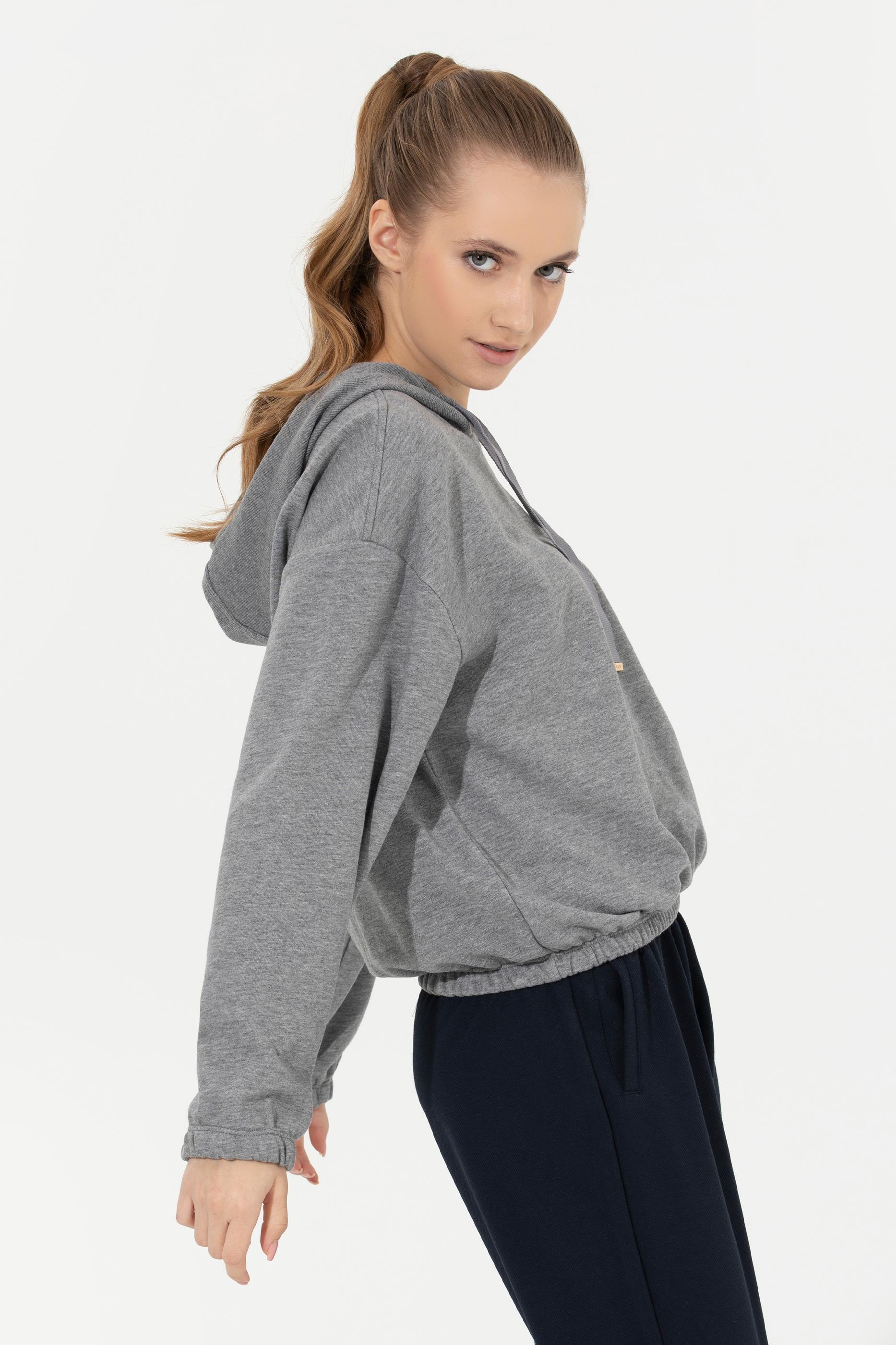 - Kadın Gri Melanj Kapüşonlu Sweatshirt
