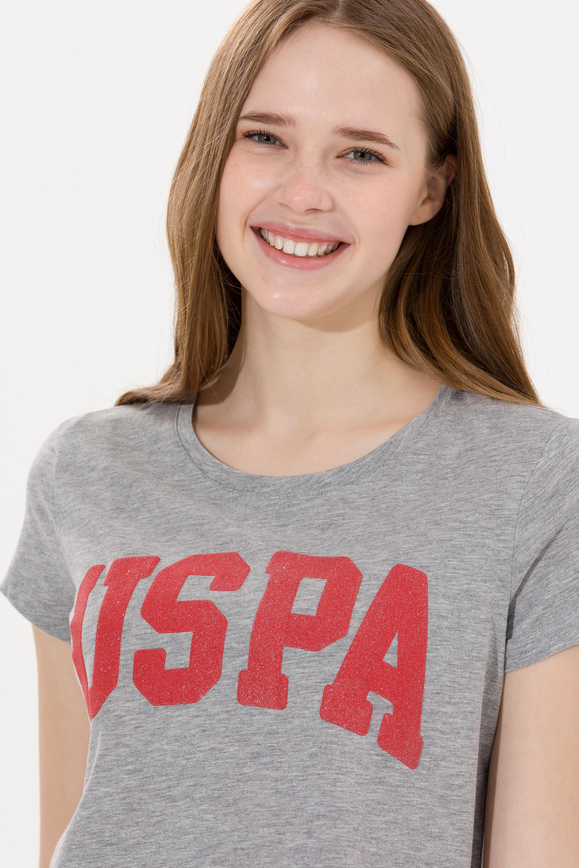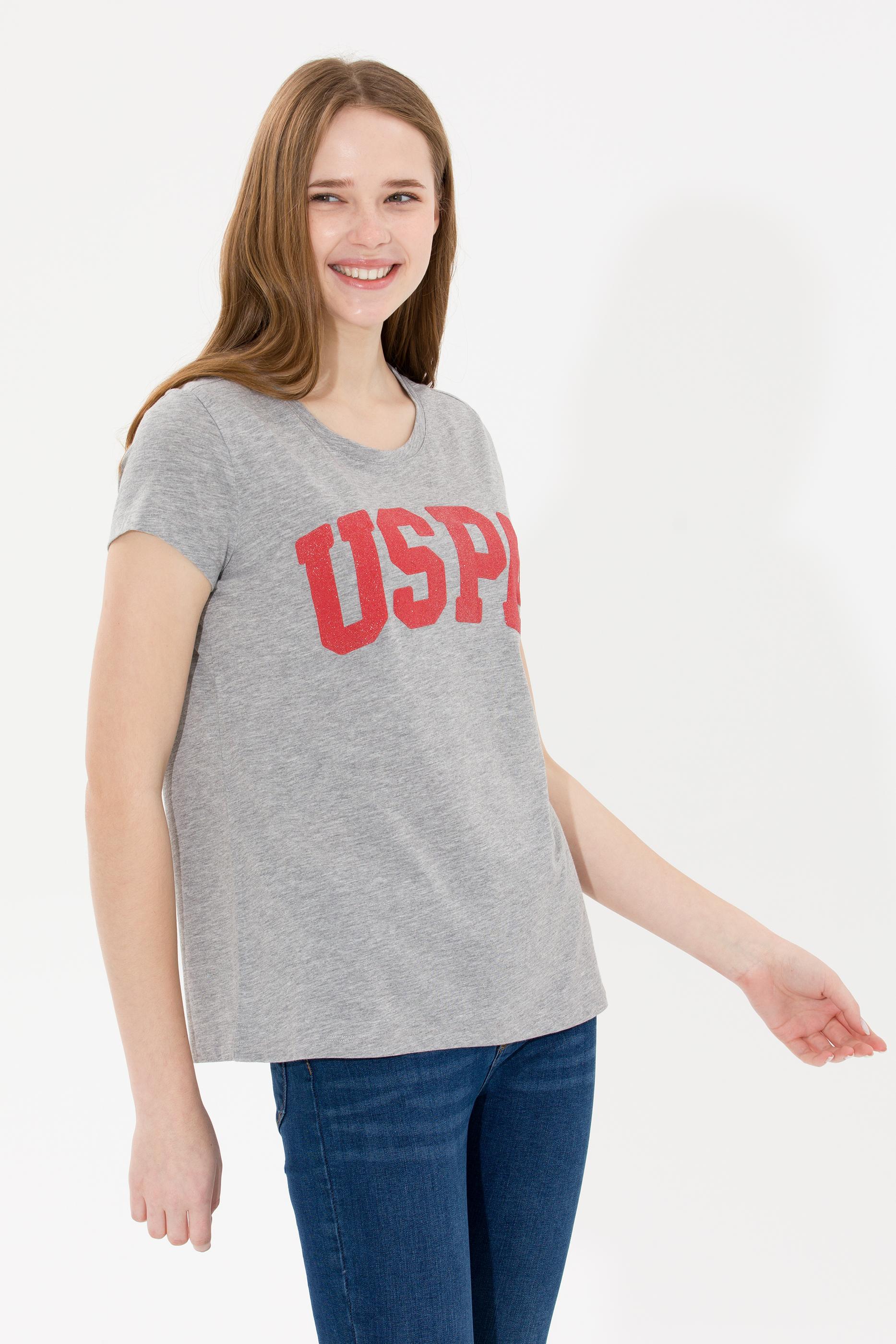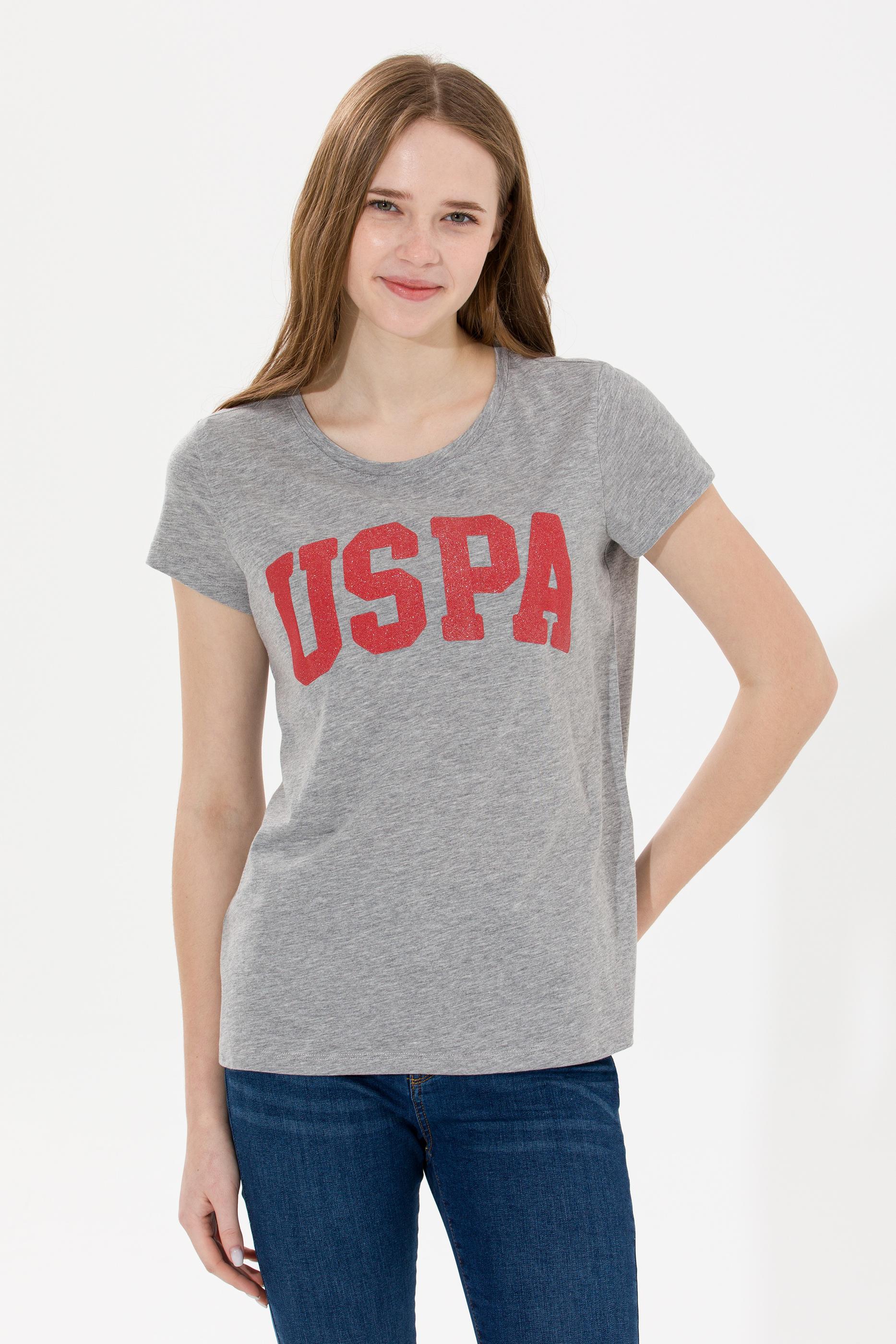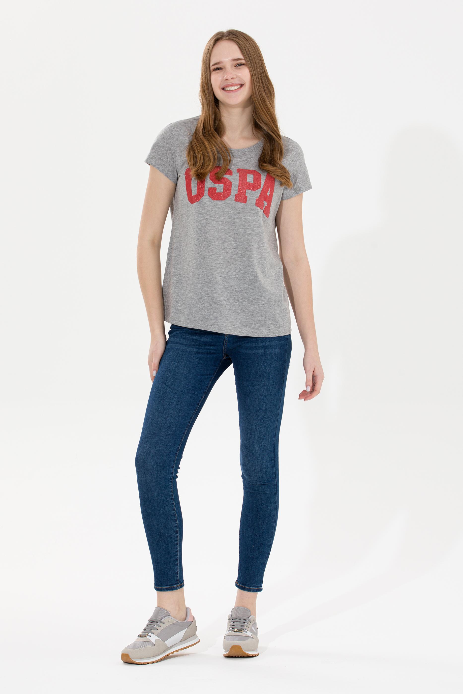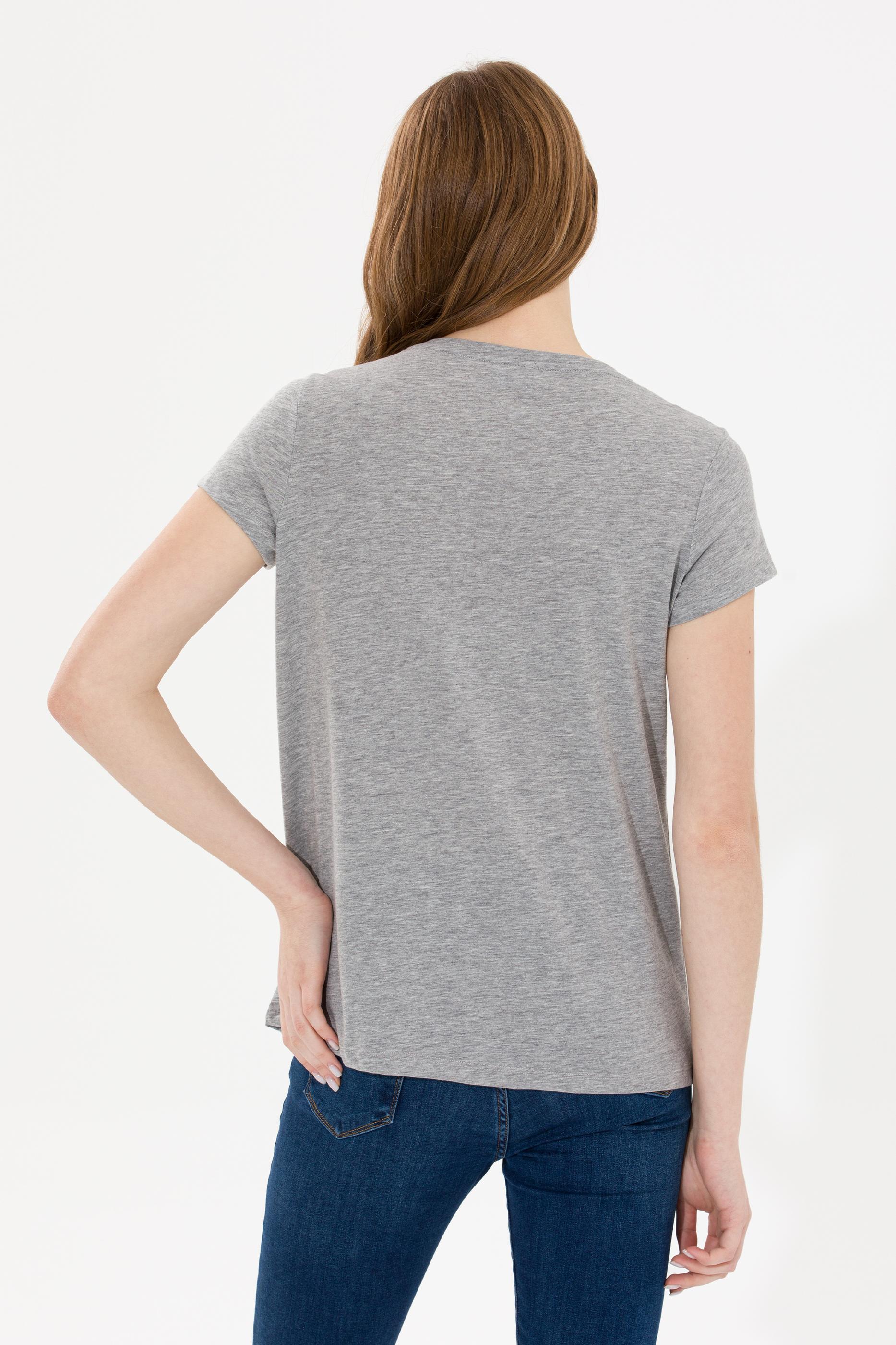 Kadın Gri Melanj Bisiklet Yaka Tişört