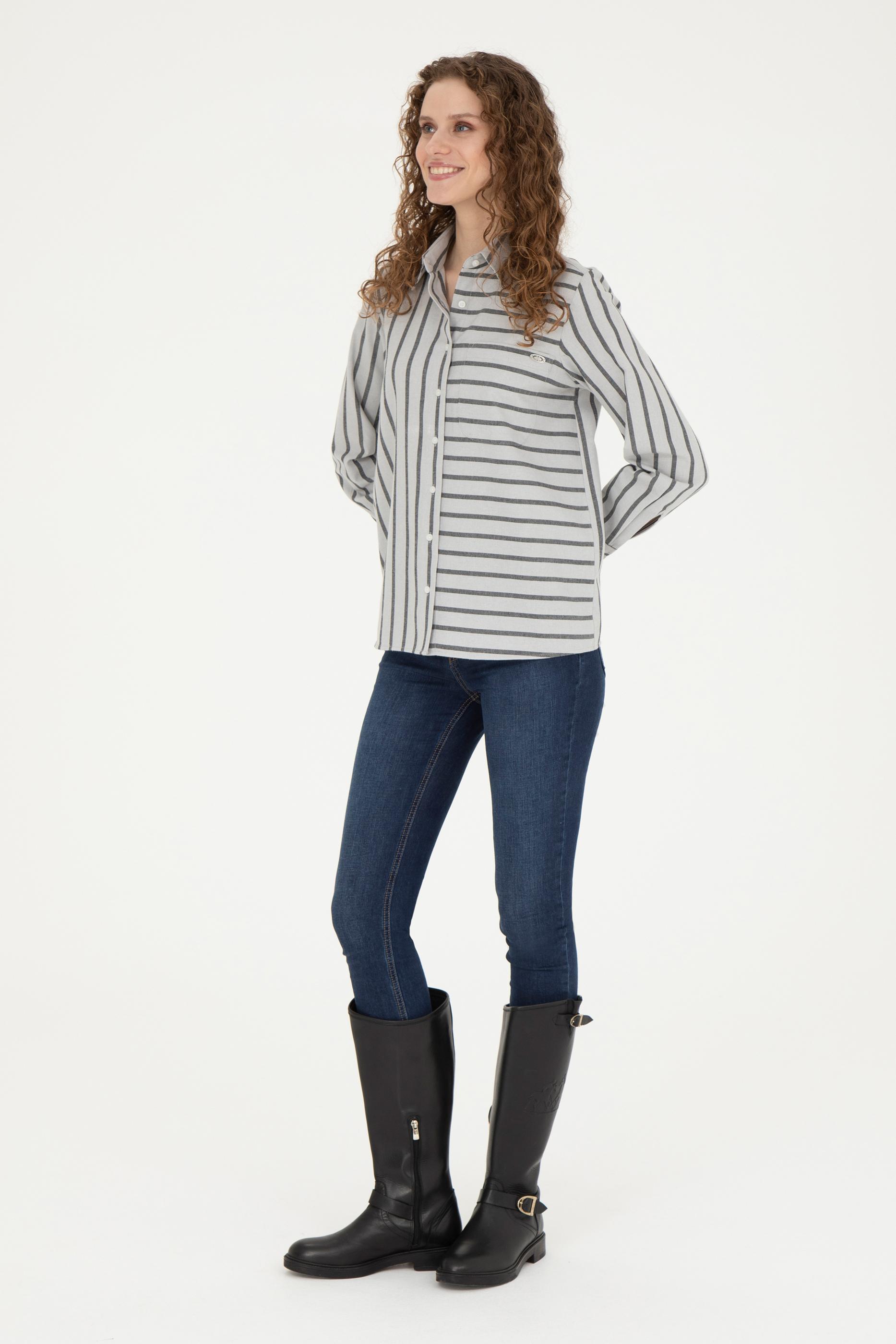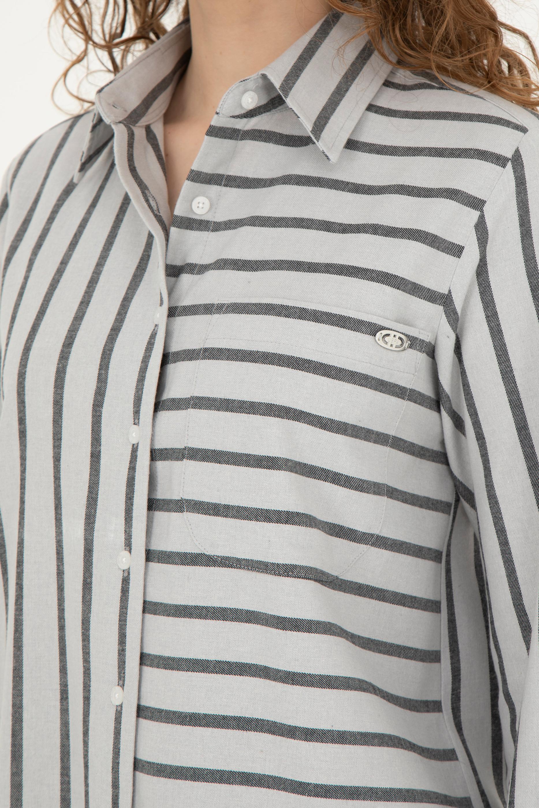 - Kadın Gri Melanj Uzun Kollu Gömlek
