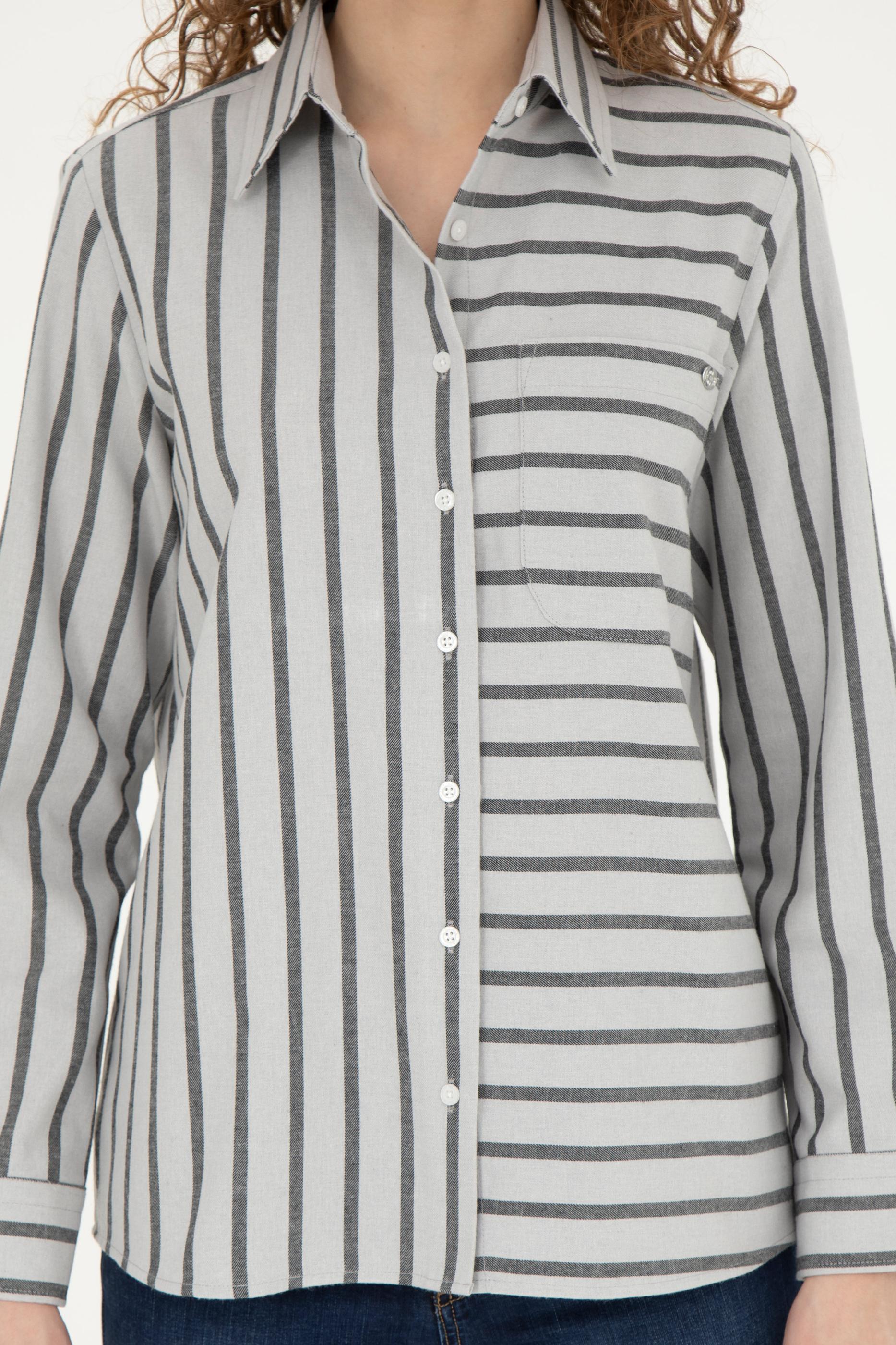 Kadın Gri Melanj Uzun Kollu Gömlek