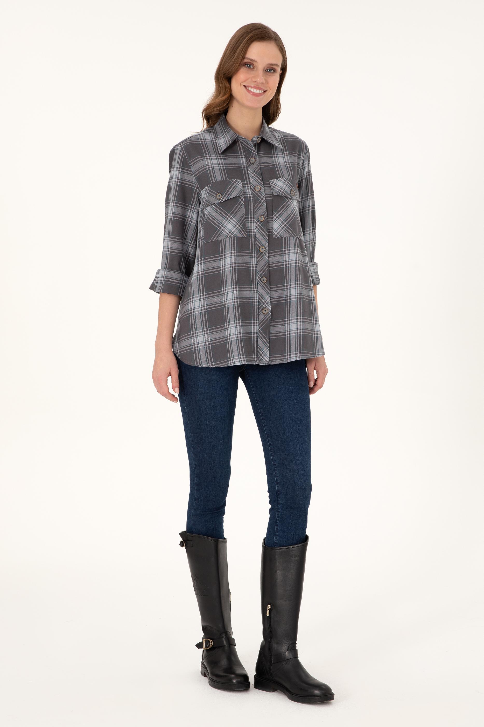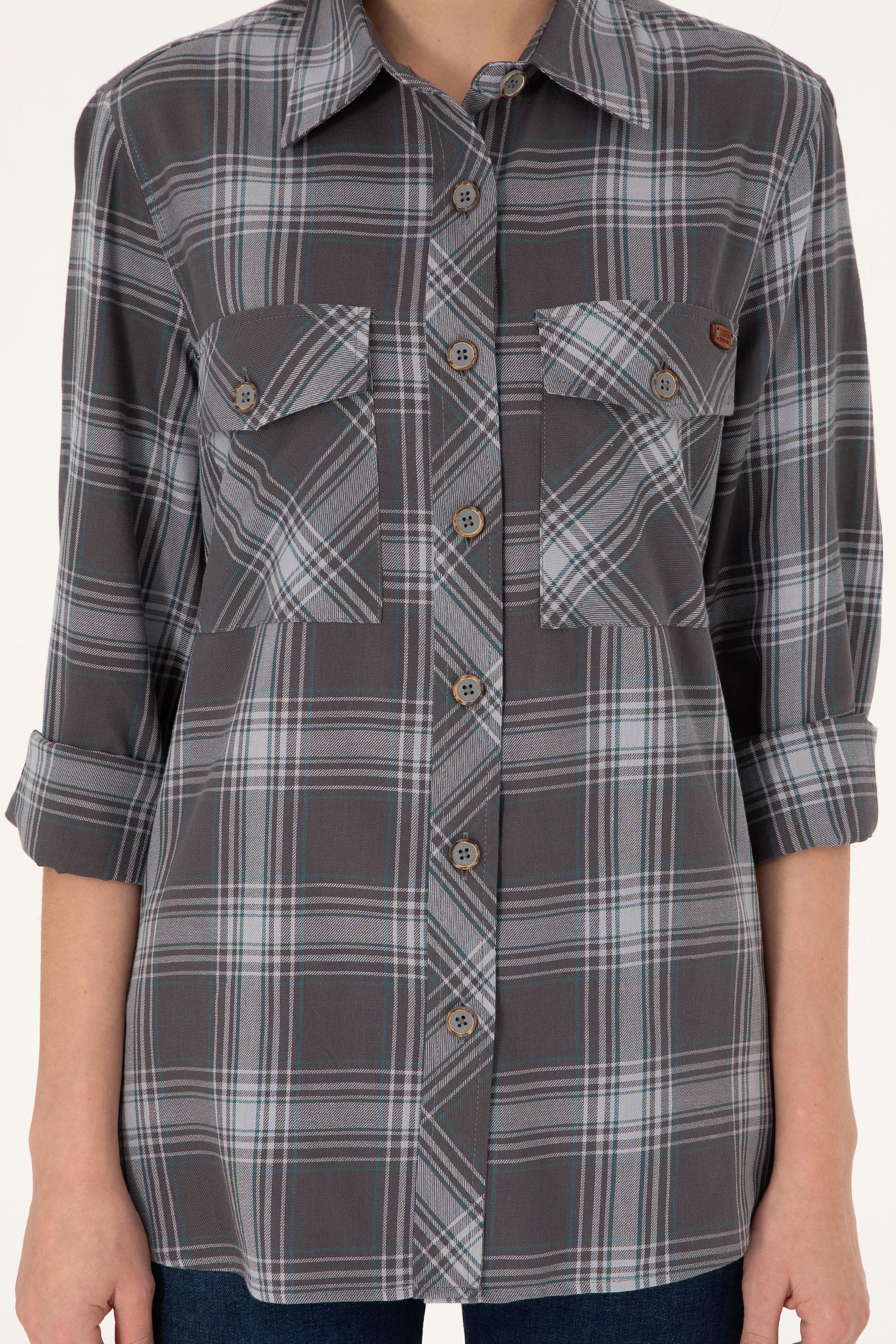 - Kadın Gri Uzun Kollu Tunik Gömlek