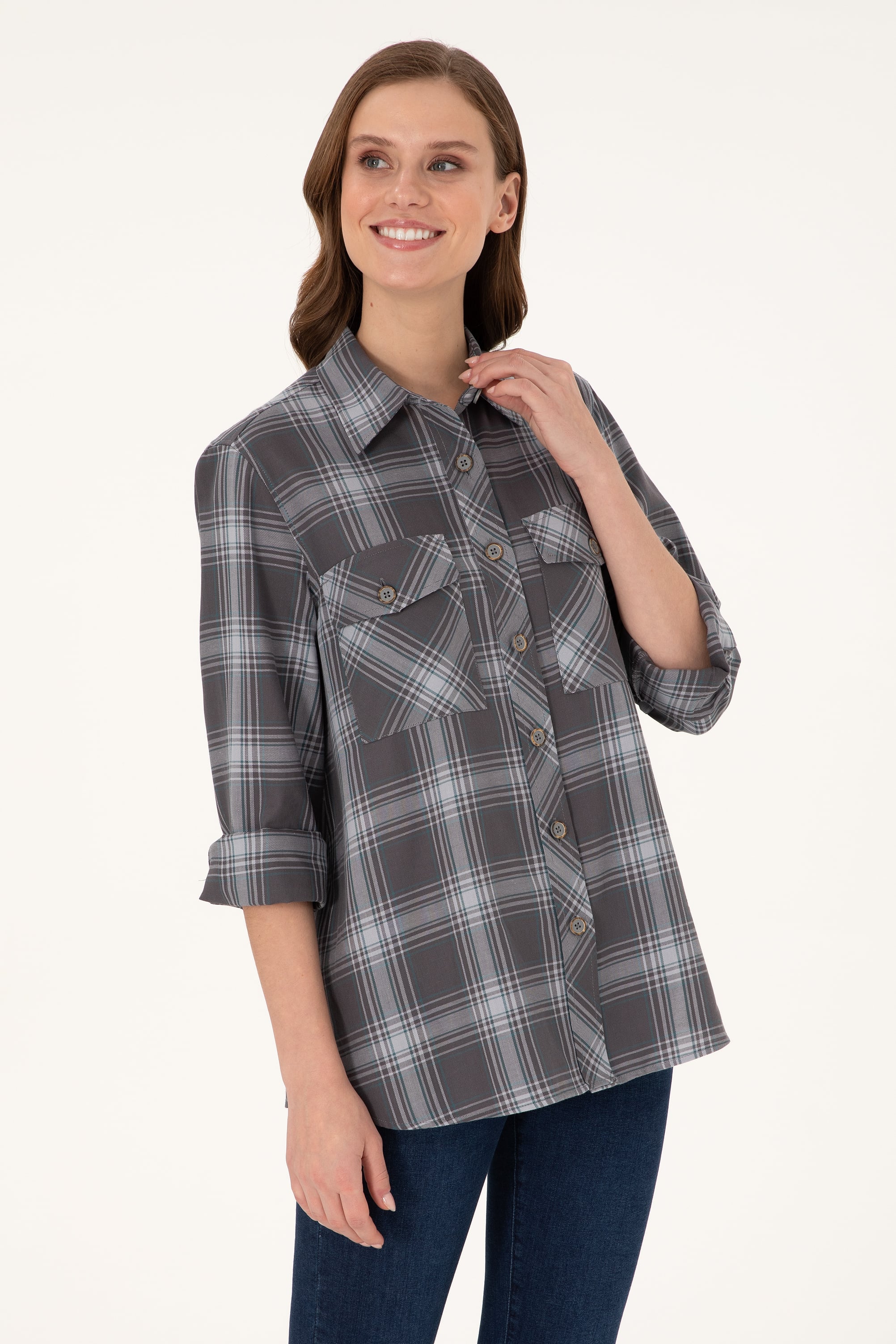 Kadın Gri Uzun Kollu Tunik Gömlek
