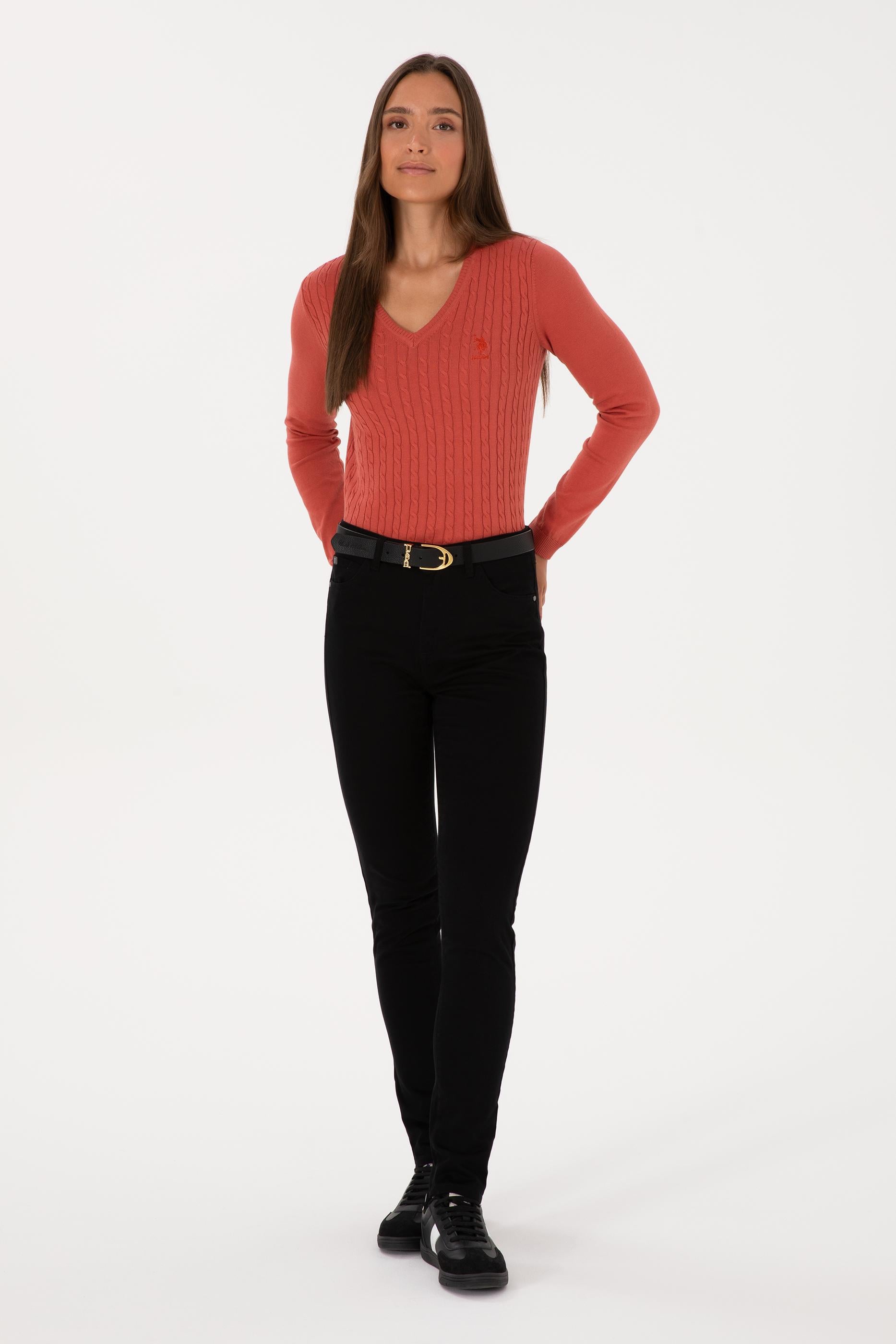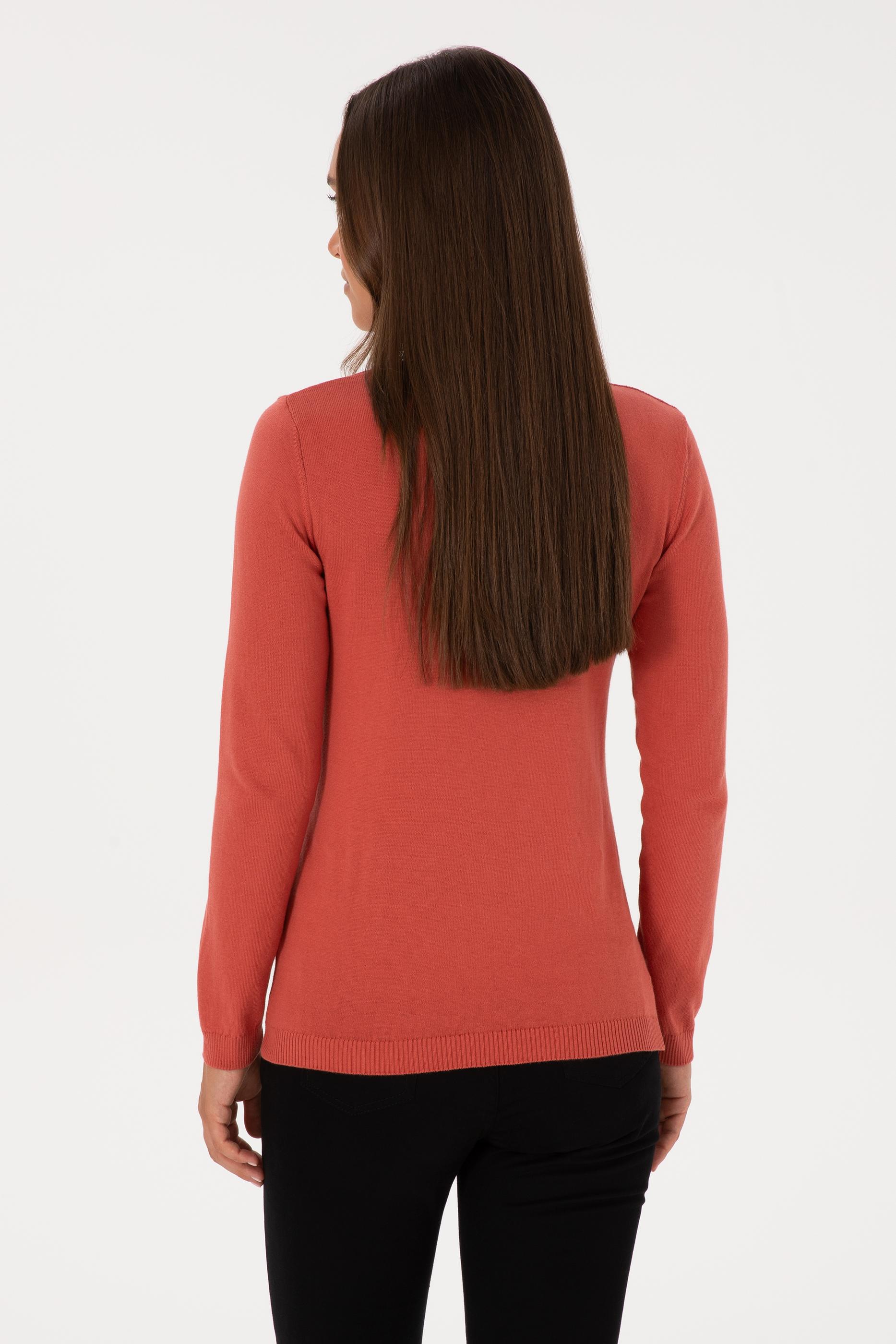 Kadın Gül Kurusu V Yaka Basic Kazak