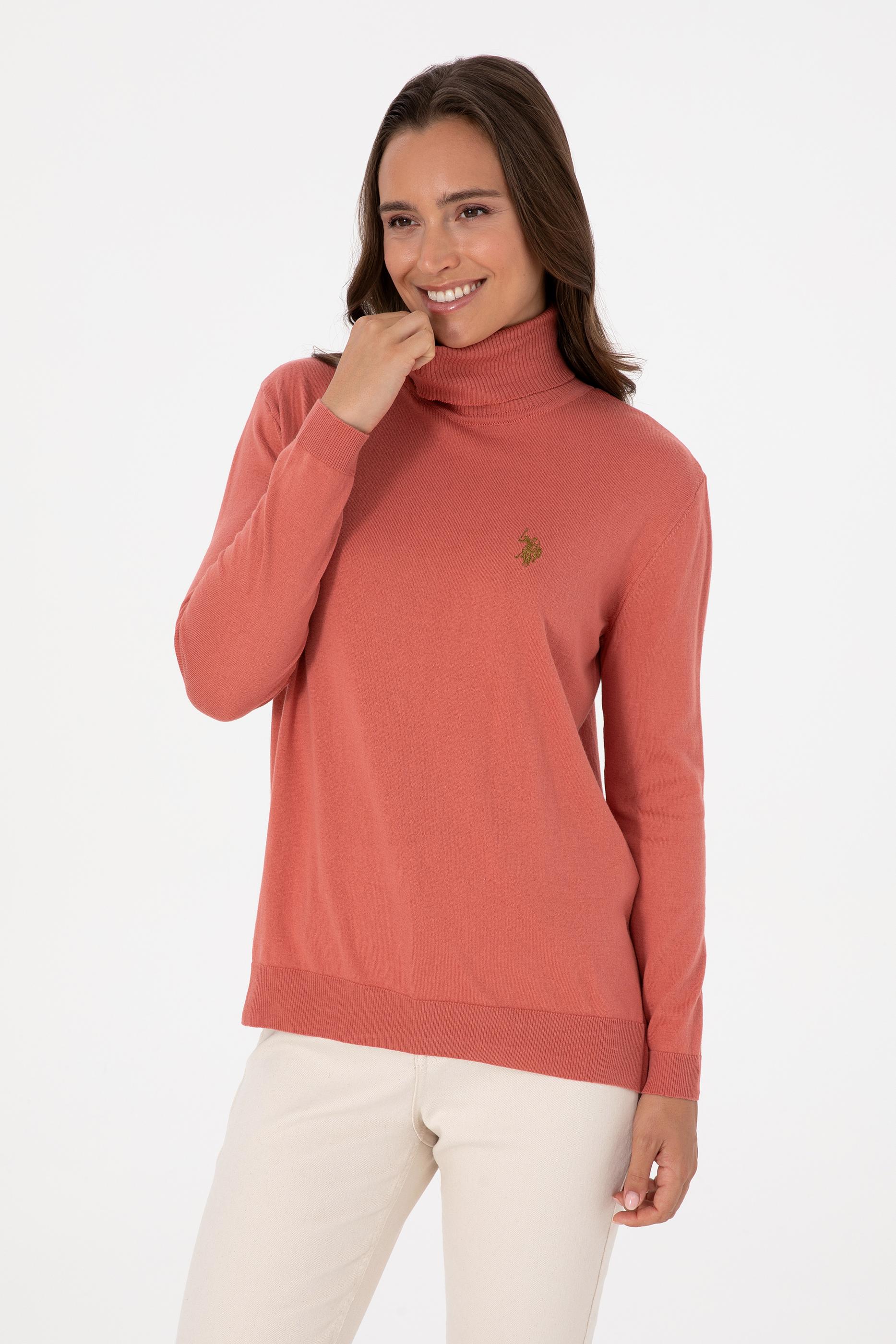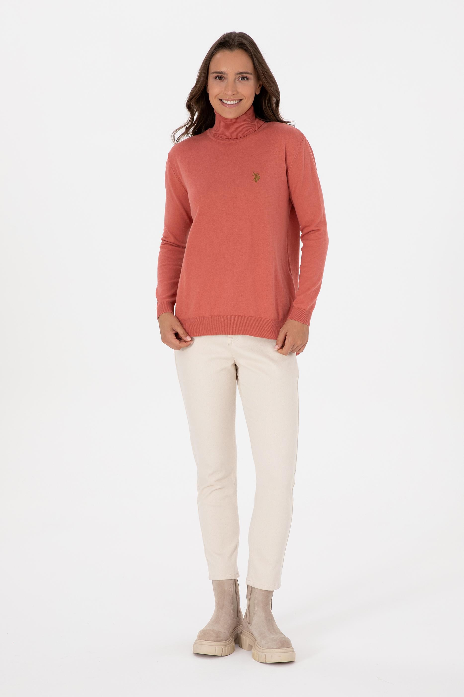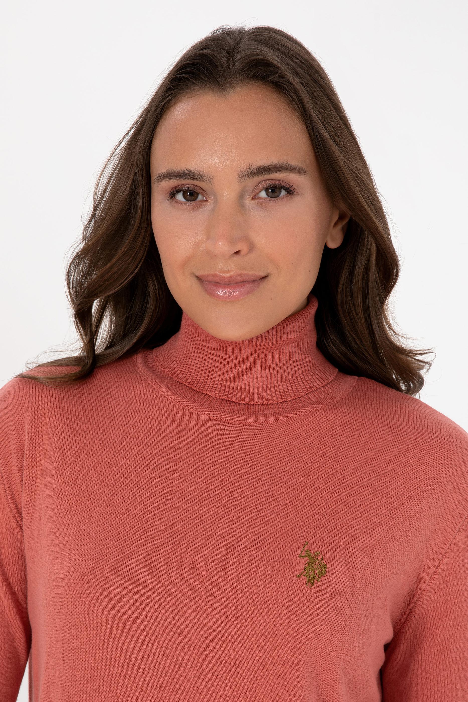 Kadın Gül Kurusu Boğazlı Basic Kazak