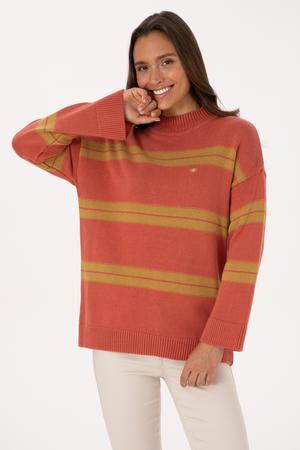 Kadın Balıkçı Yaka Çizgili Gül Kurusu Kazak