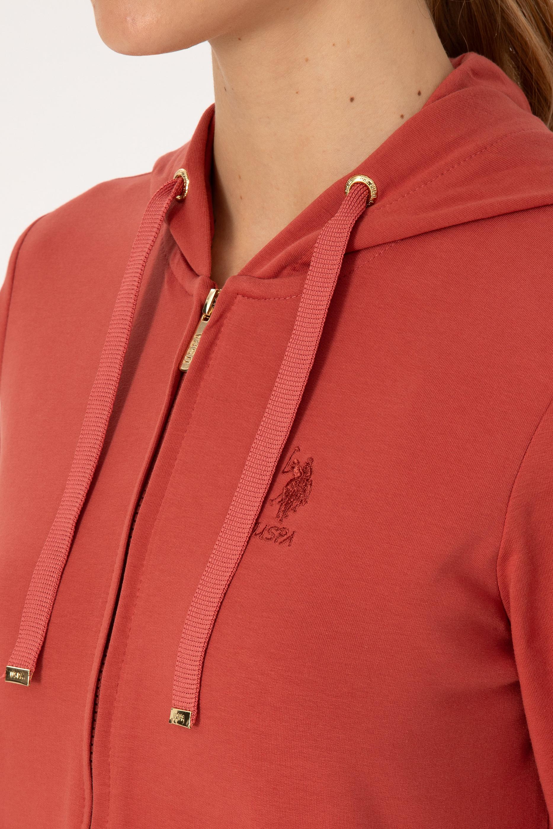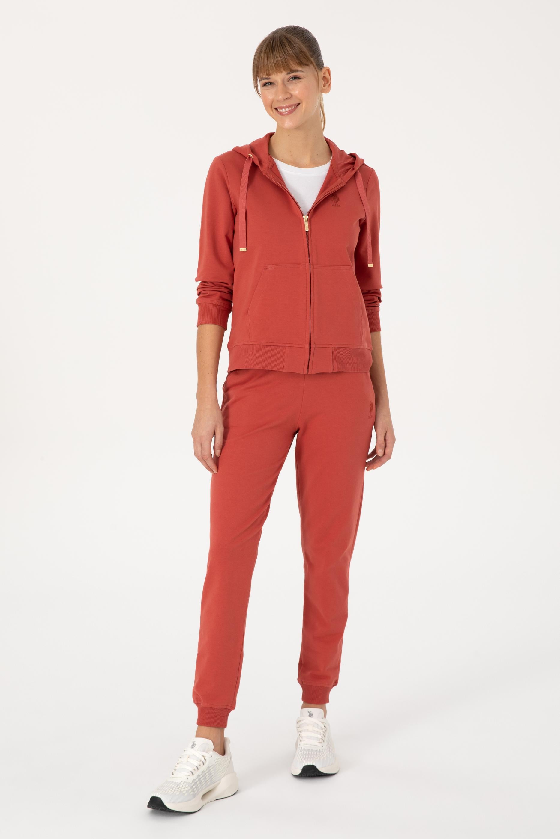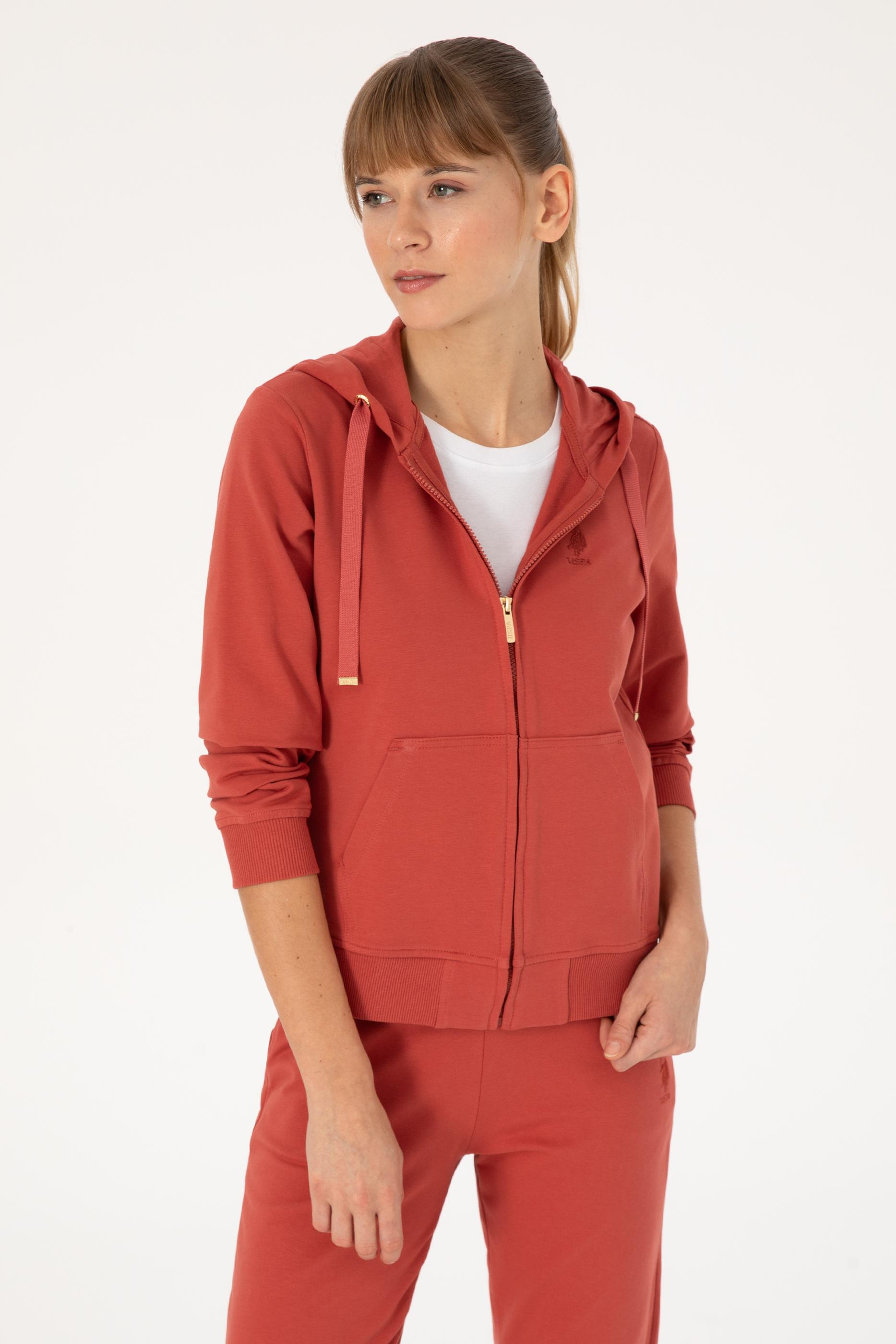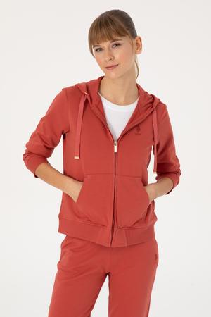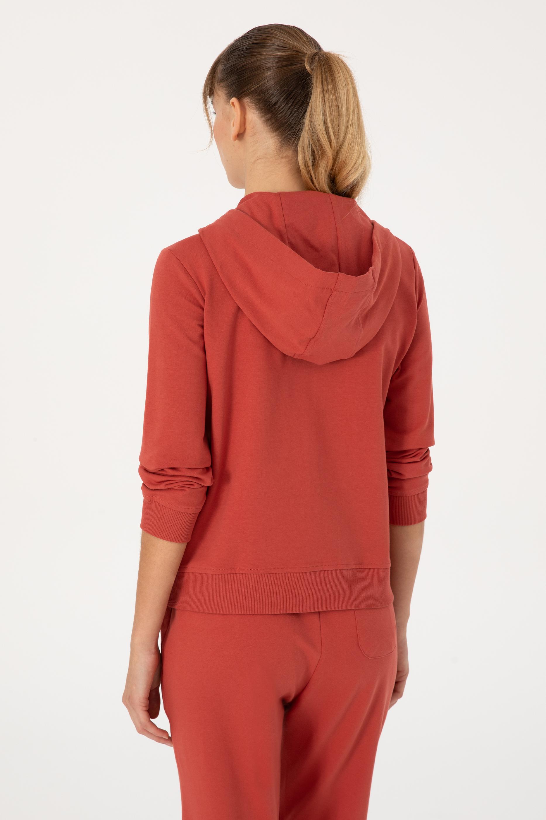 - Kadın Kiremit Fermuarlı Kapüşonlu Sweatshırt