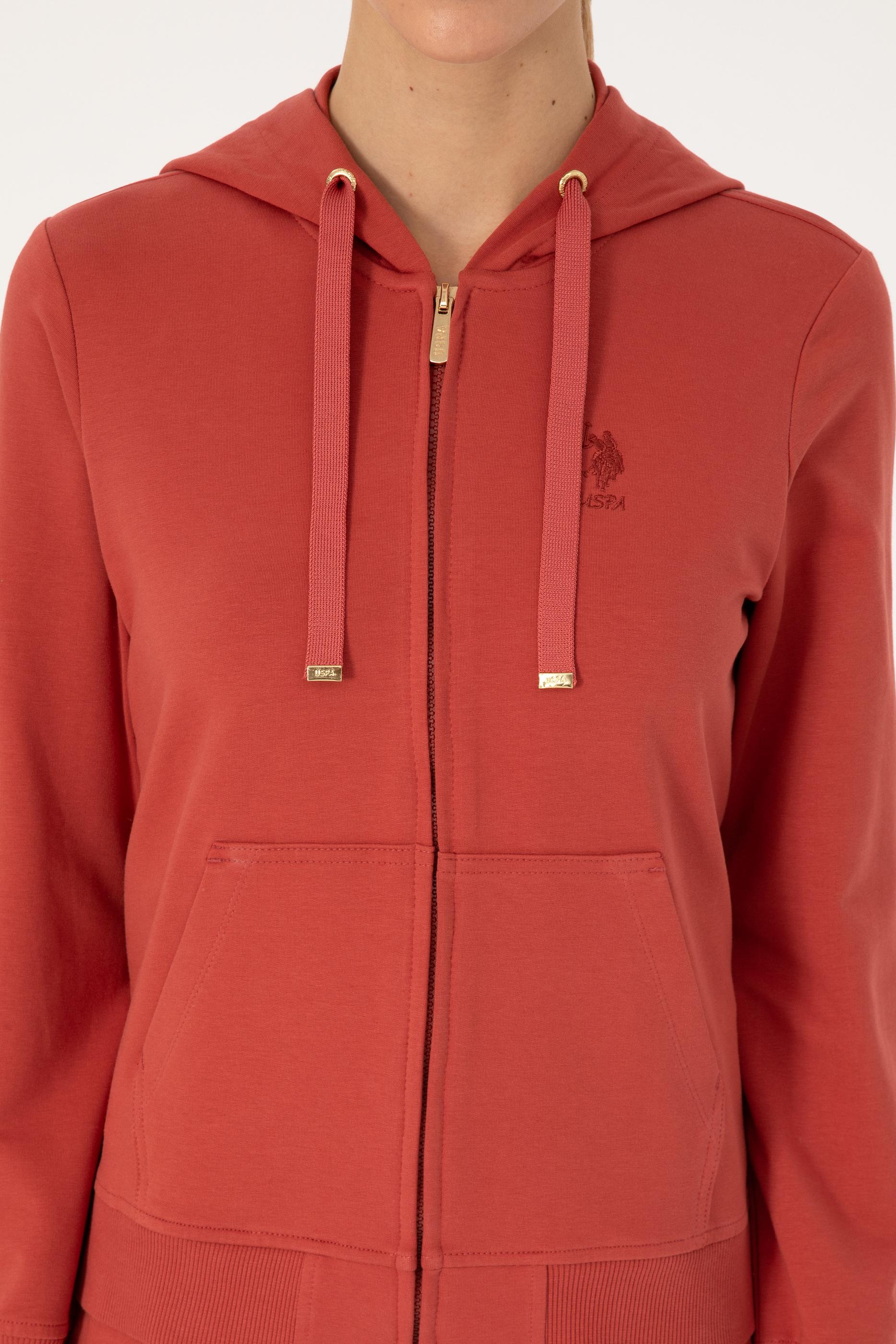 Kadın Kiremit Fermuarlı Kapüşonlu Sweatshırt