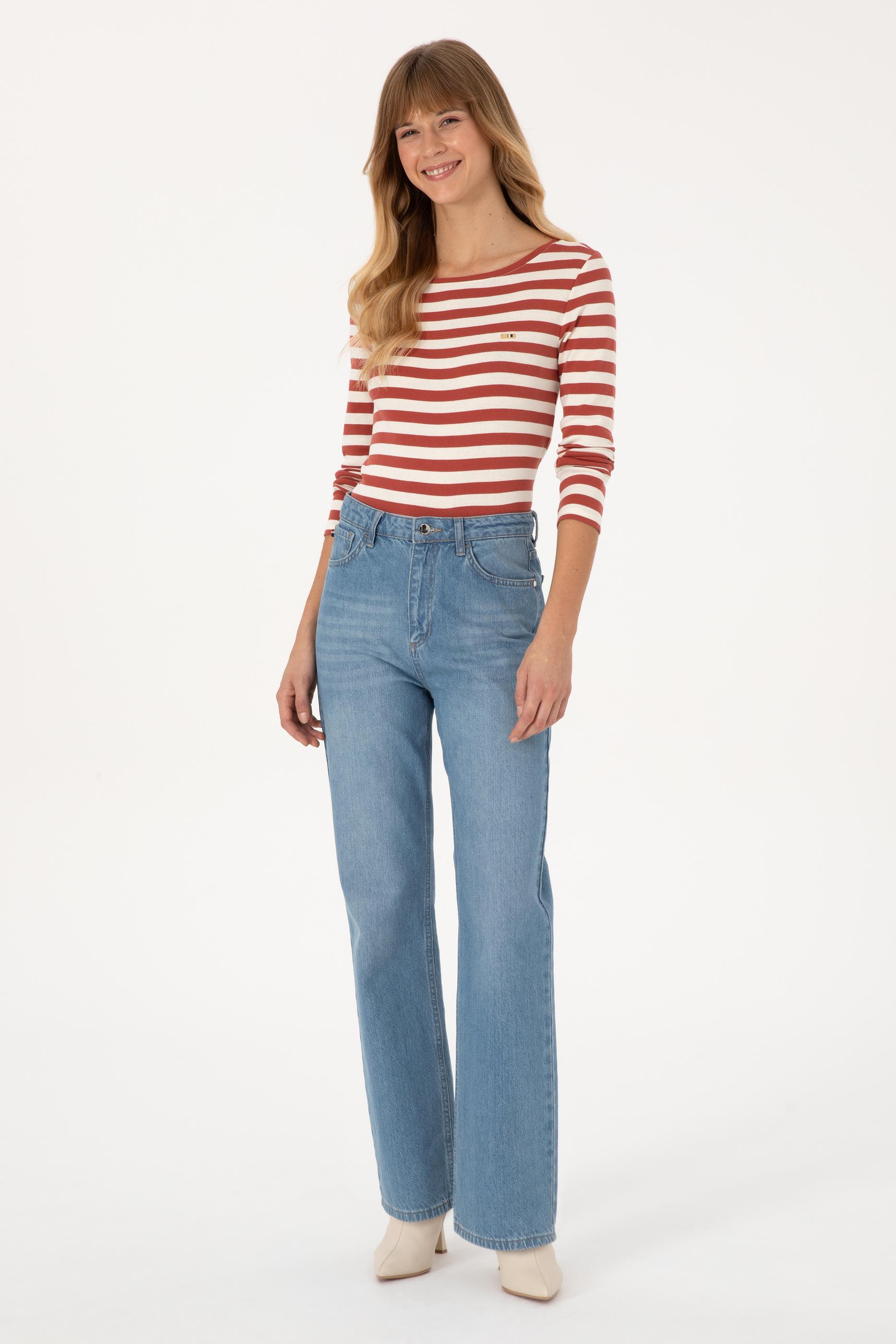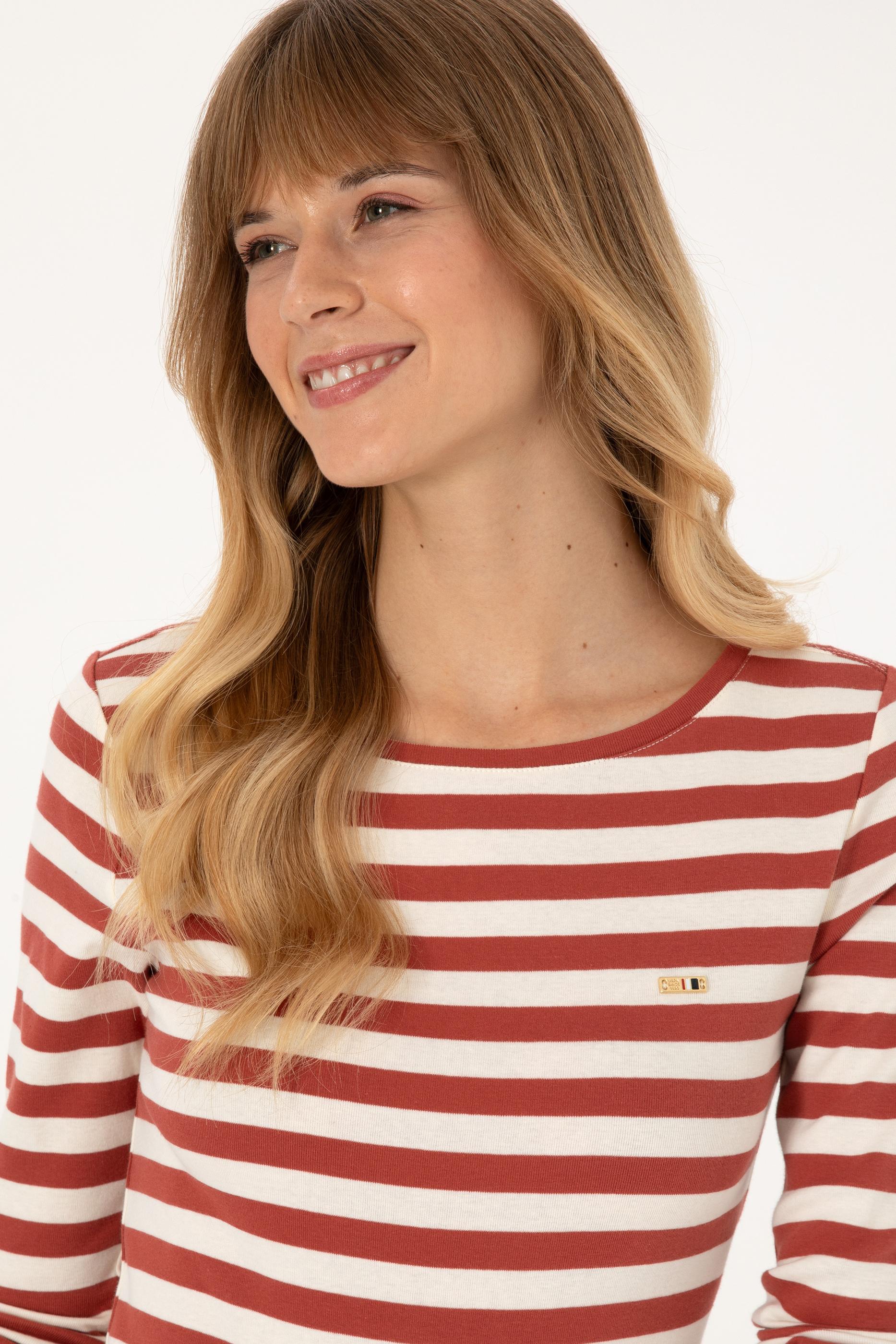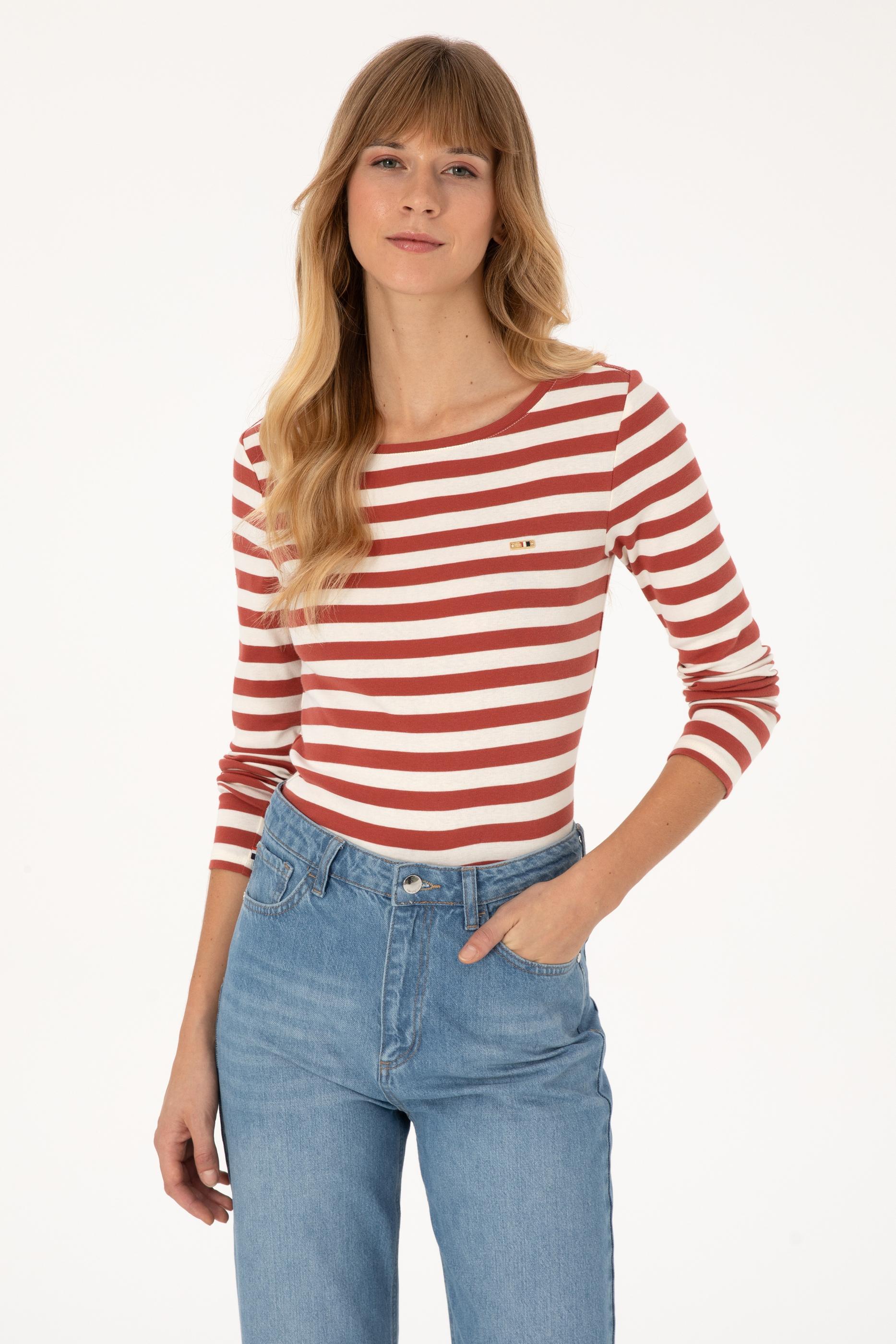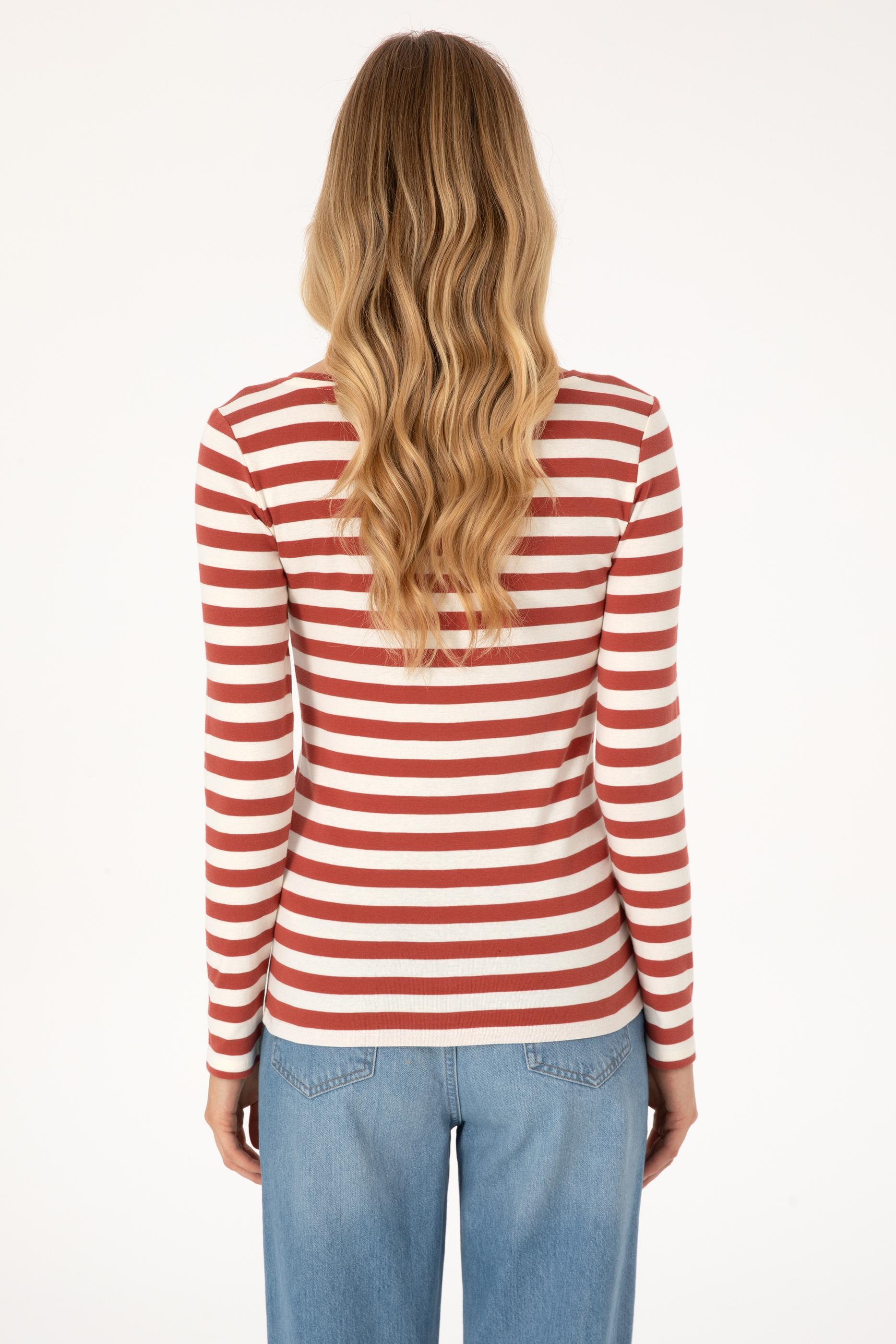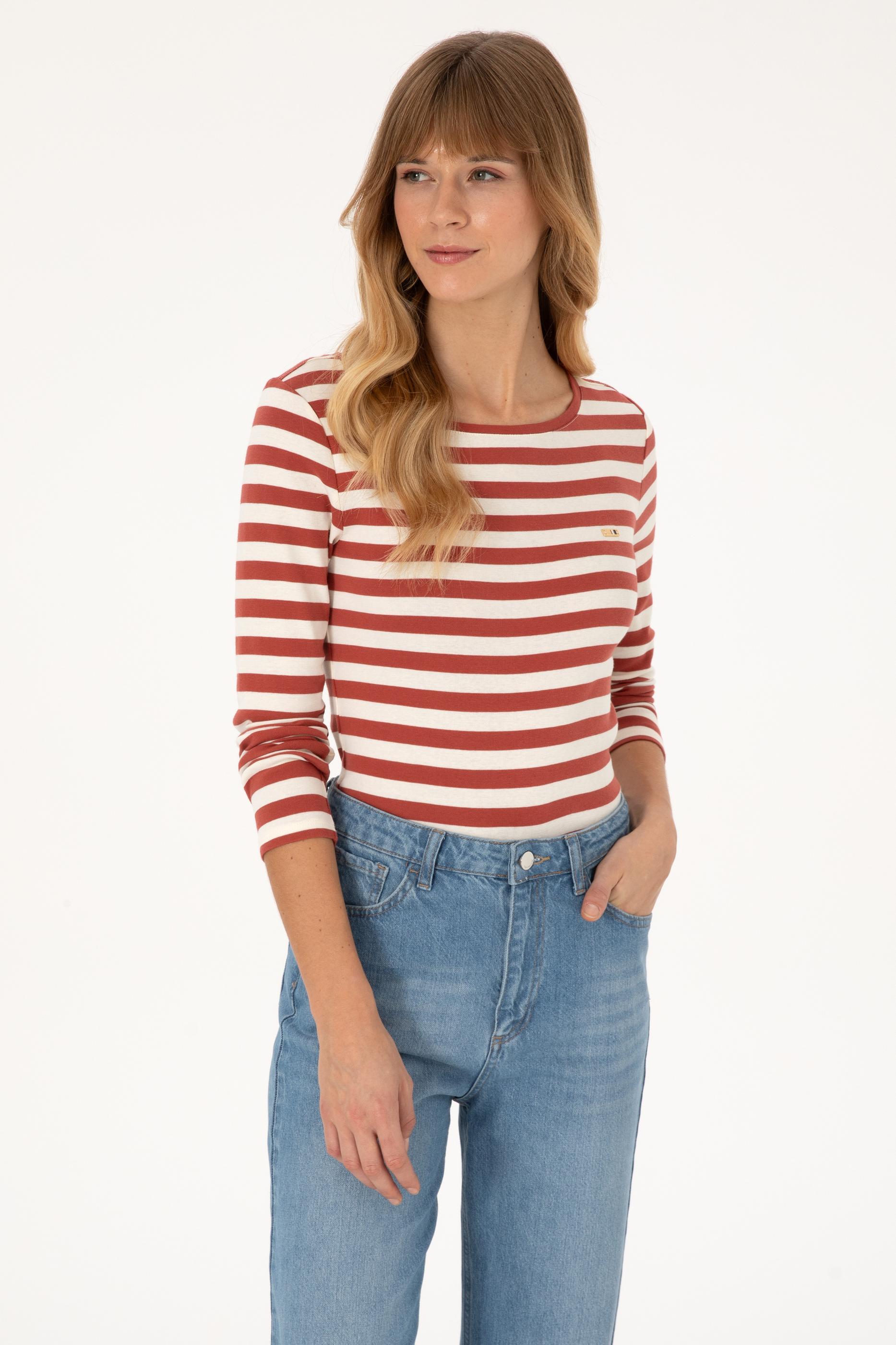 Kadın Kiremit Çizgili Bisiklet Yaka Sweatshırt - 50314203014