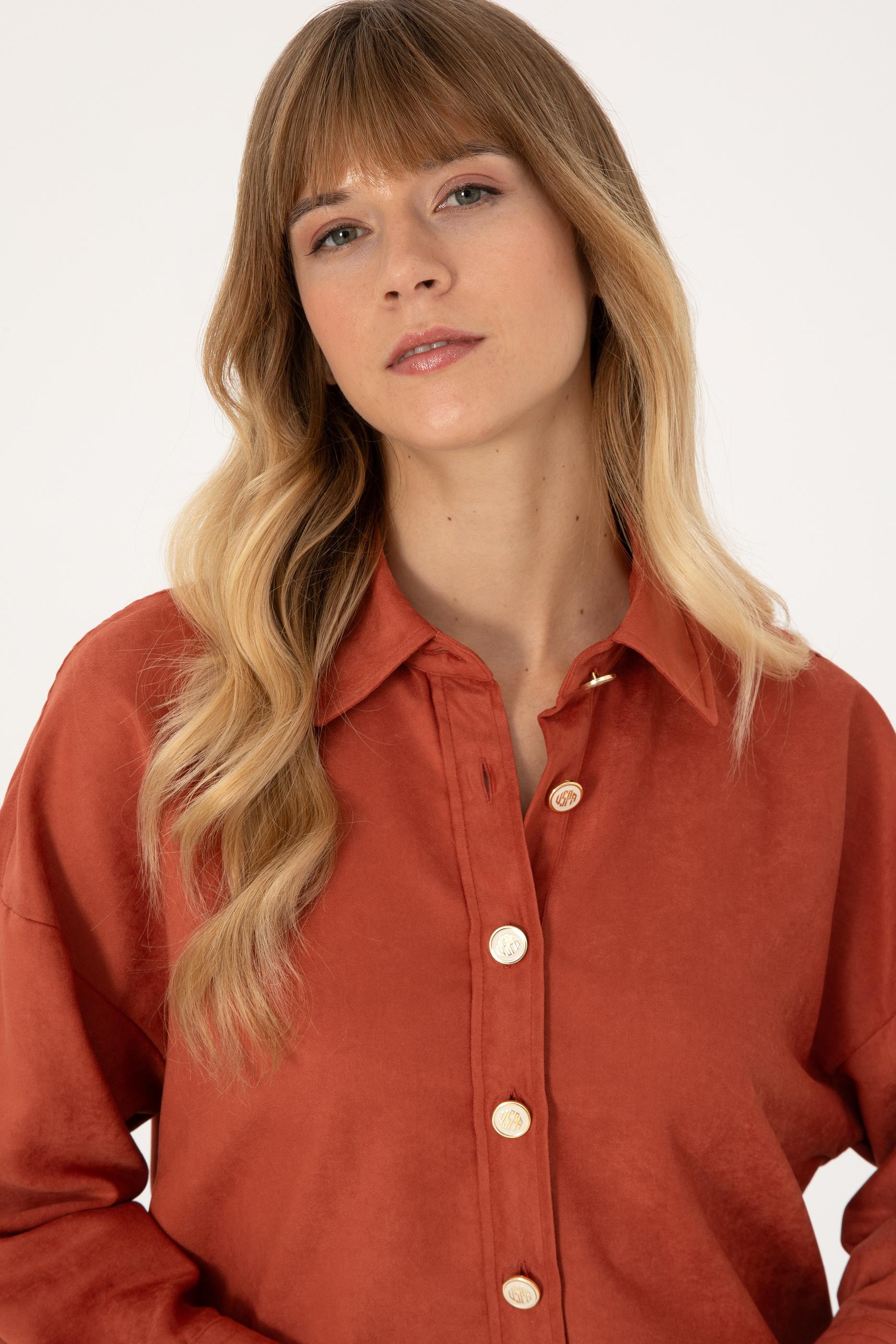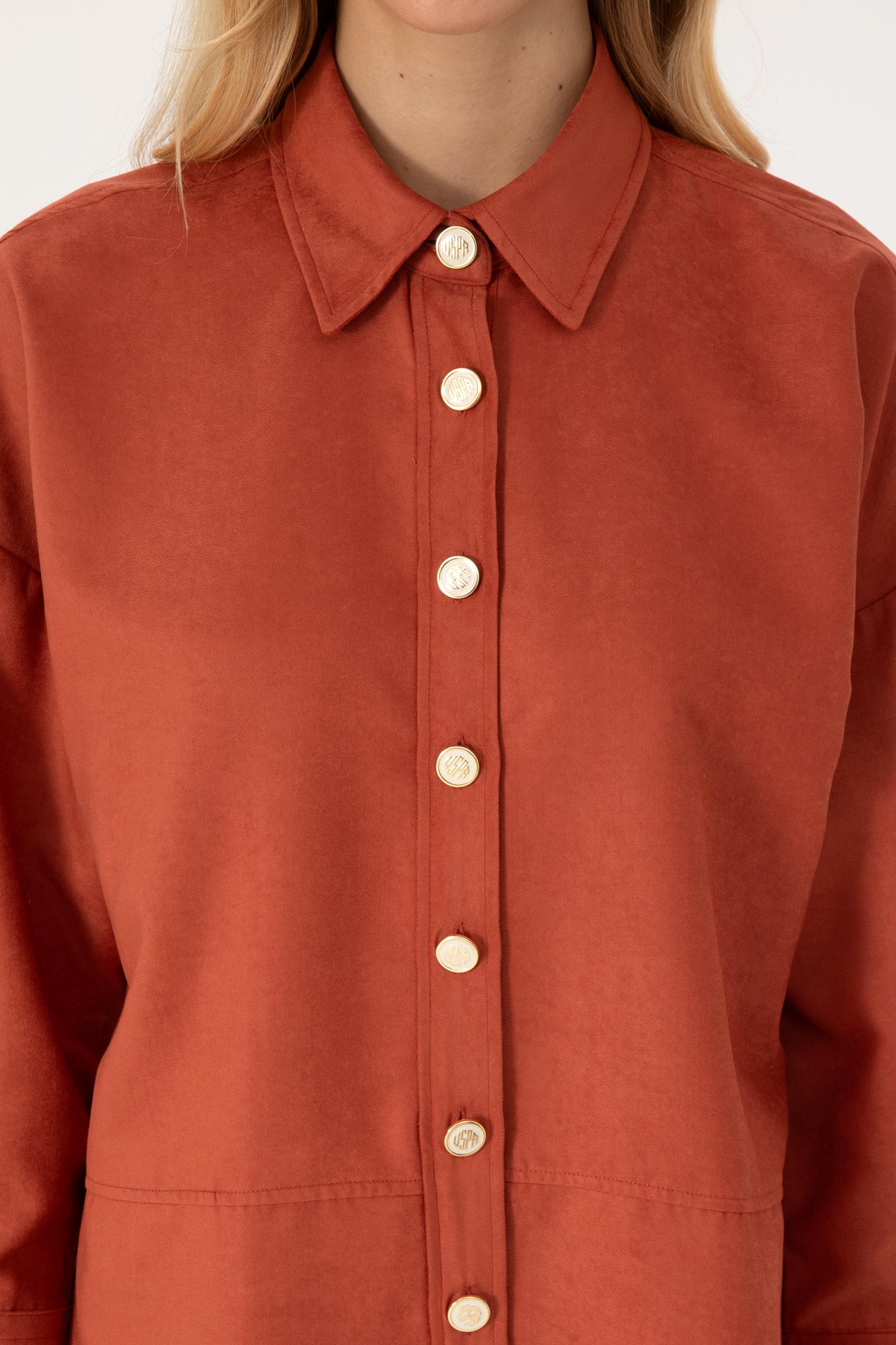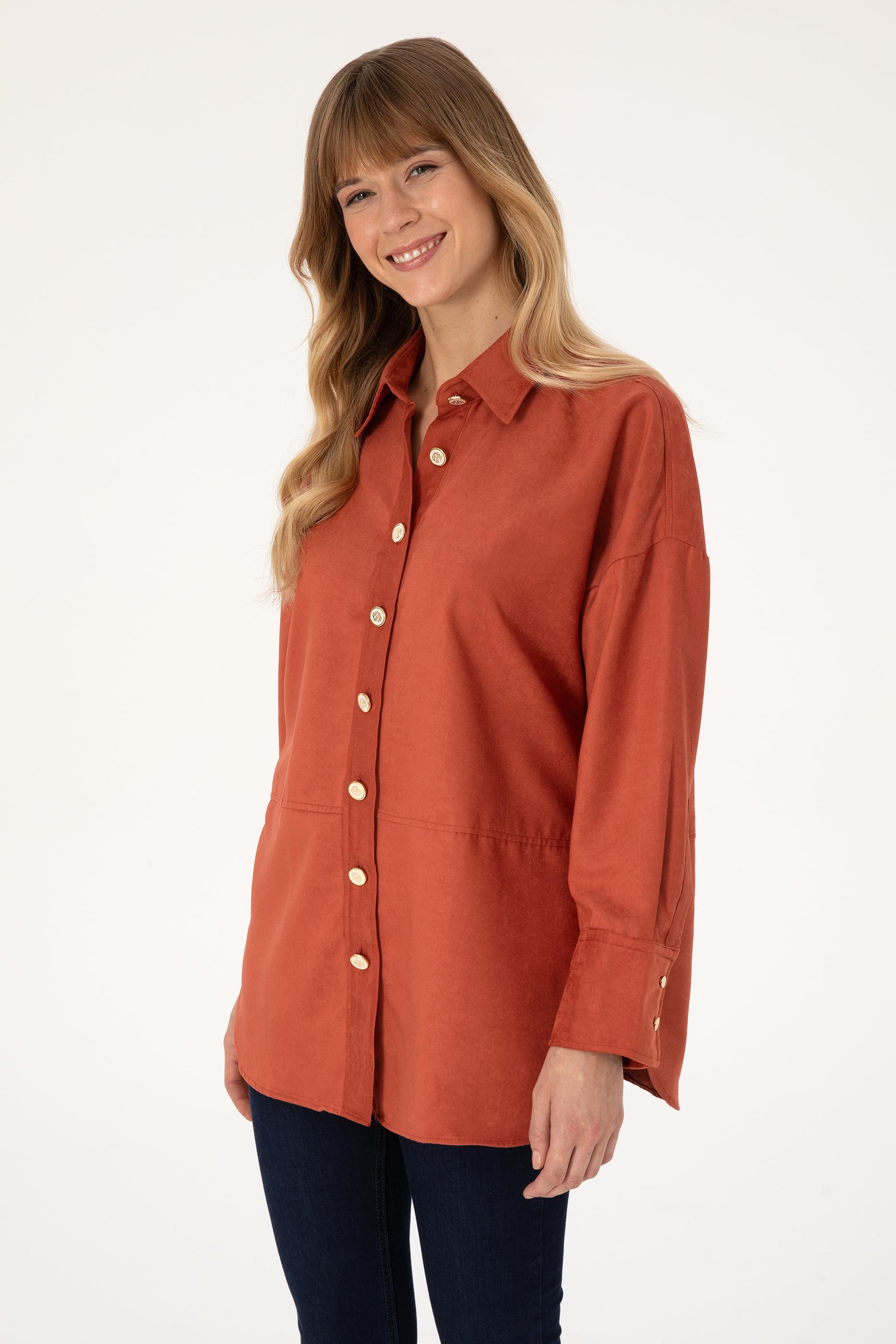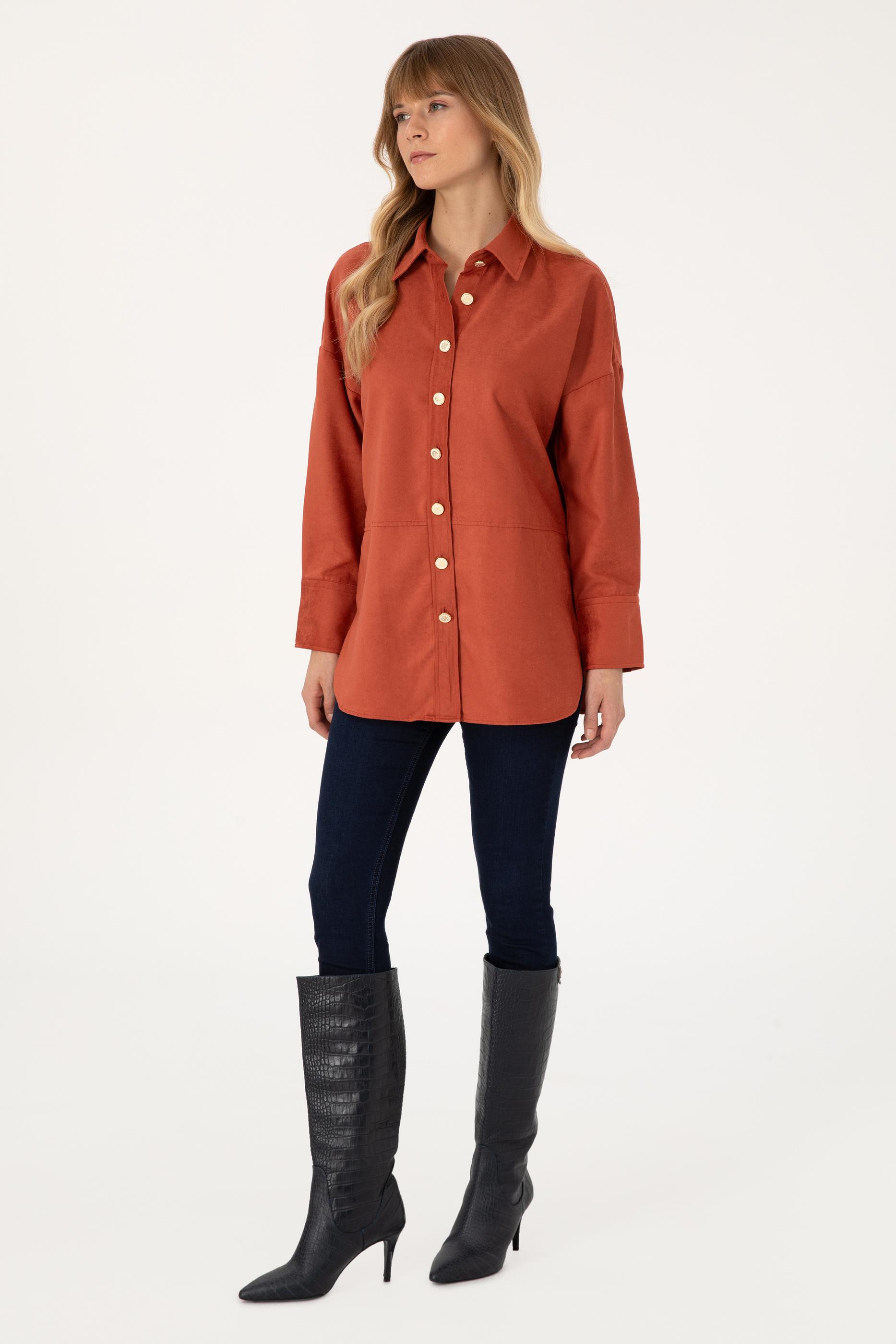 Kadın Gül Kurusu Uzun Kollu Gömlek