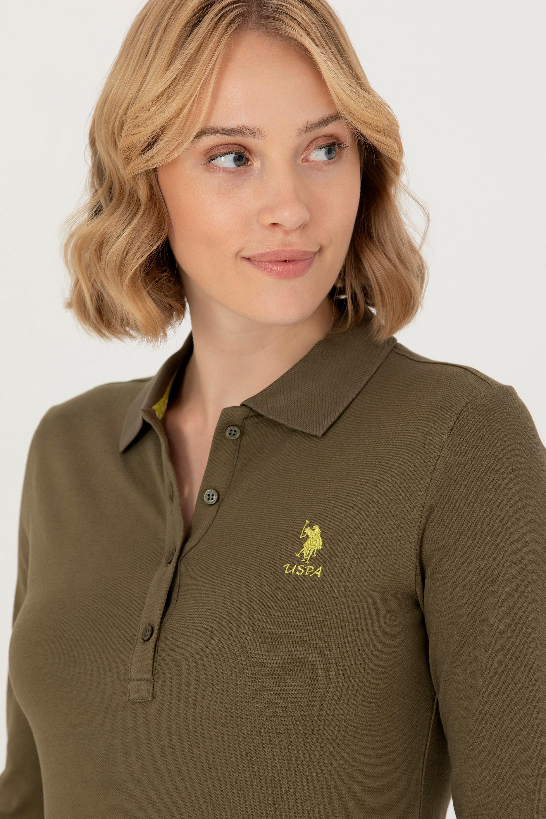 Kadın Haki Basic Polo Yaka Sweatshirt