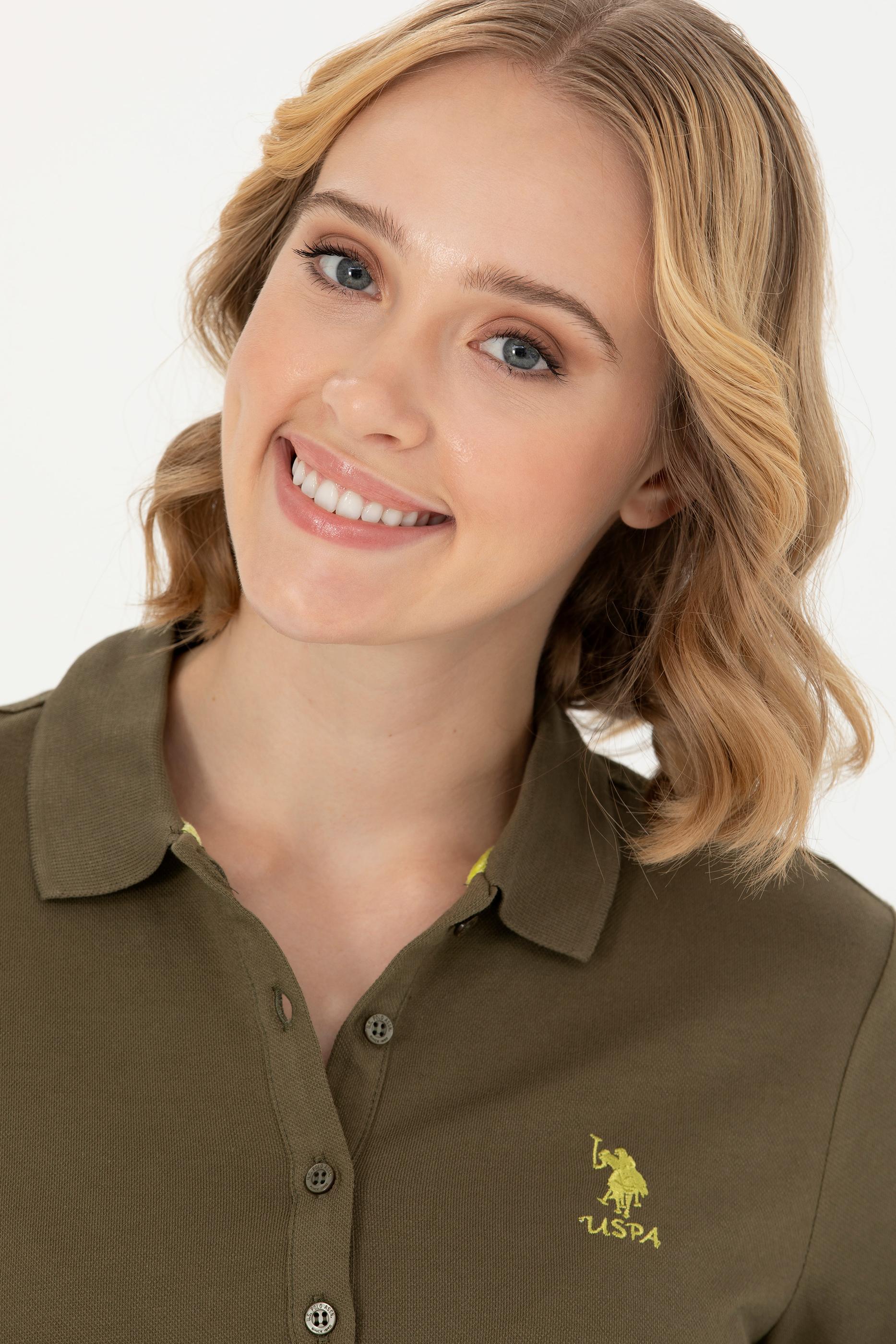 Kadın Haki Polo Yaka Basic Sweatshirt