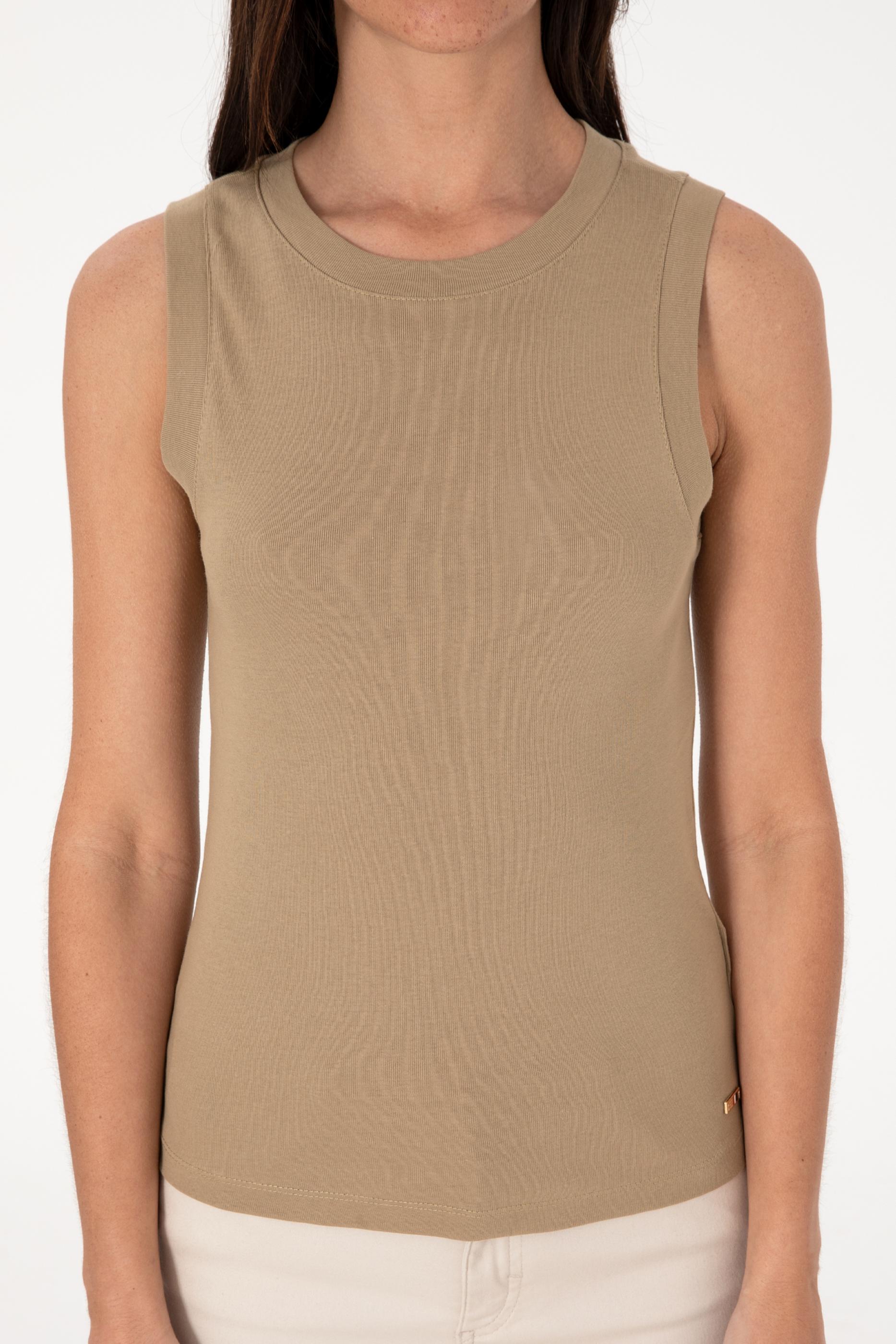 - Kadın Haki Kolsuz Bisiklet Yaka Basic Tişört