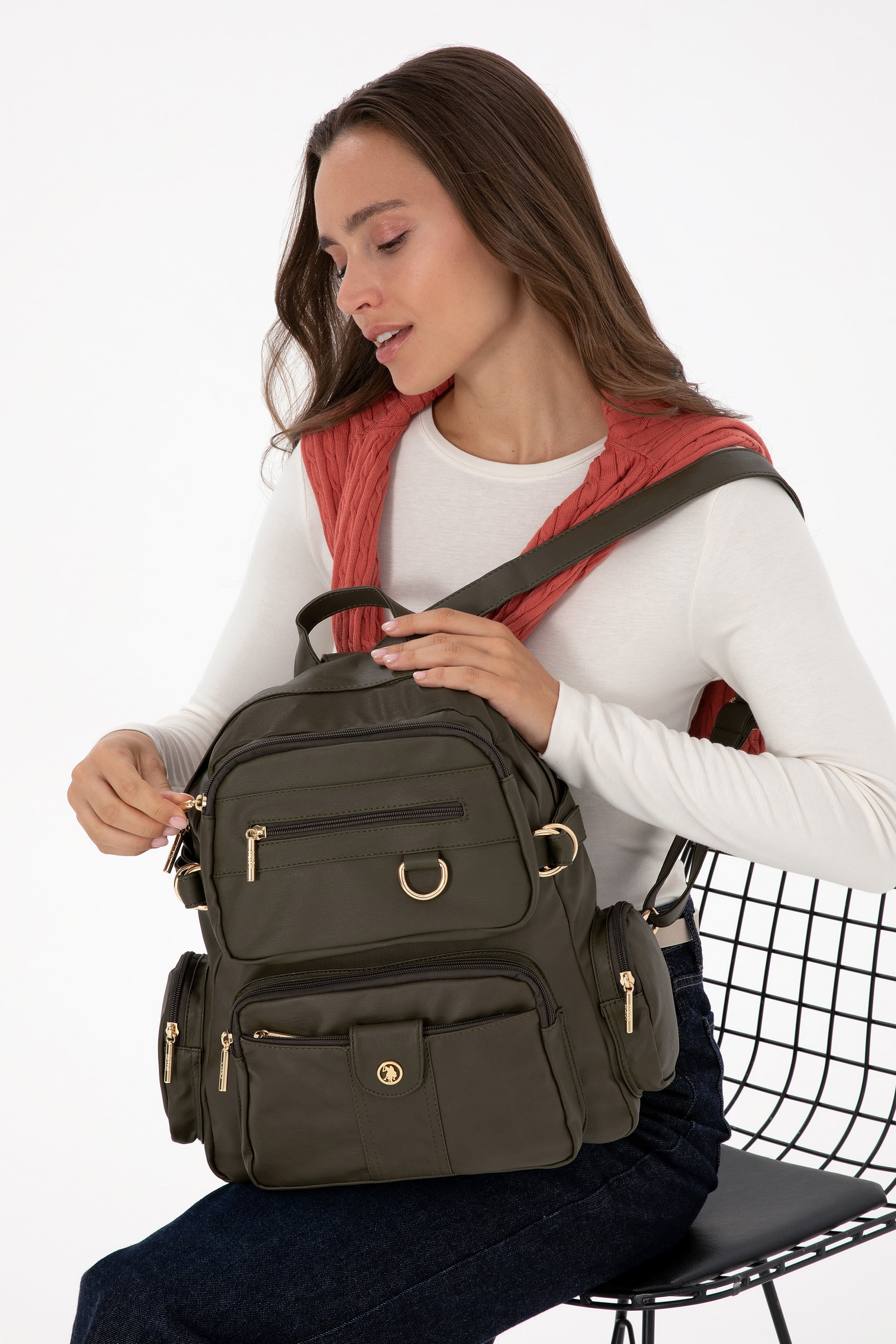 - Kadın Haki Yumuşak Sırt Çantası