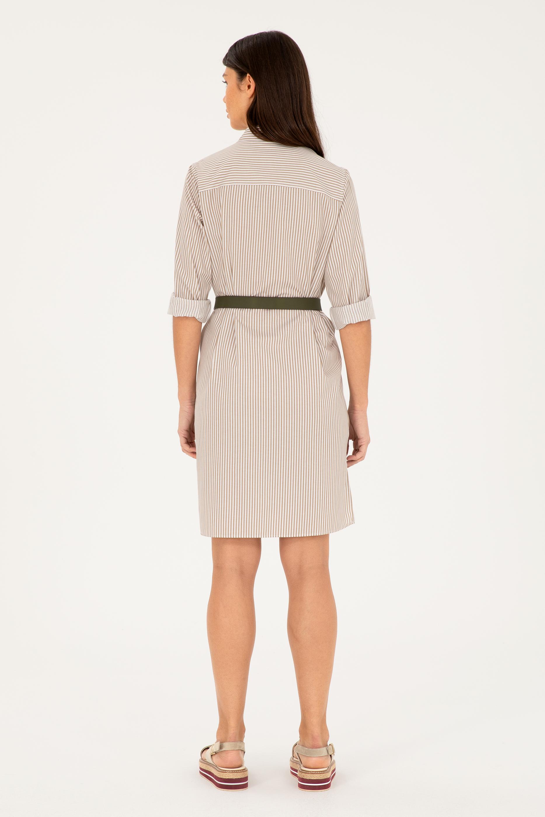 Kadın Haki Çizgili Mini Boy Dokuma Elbise