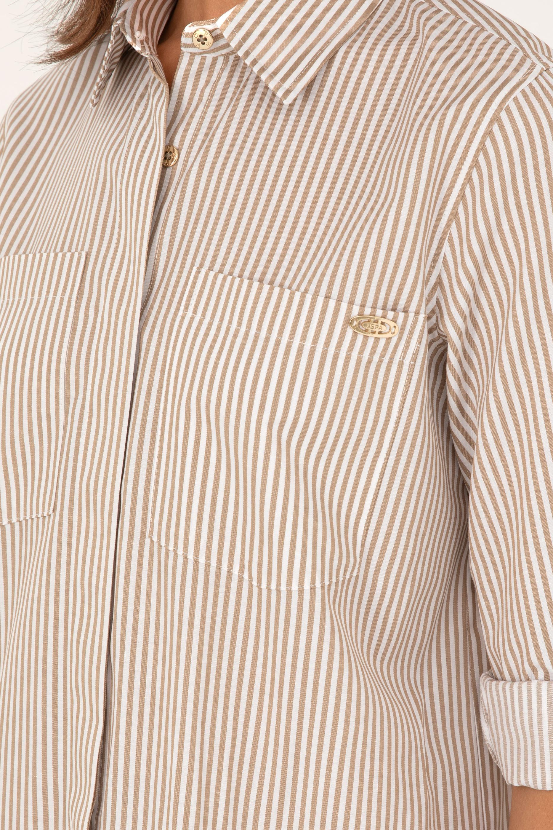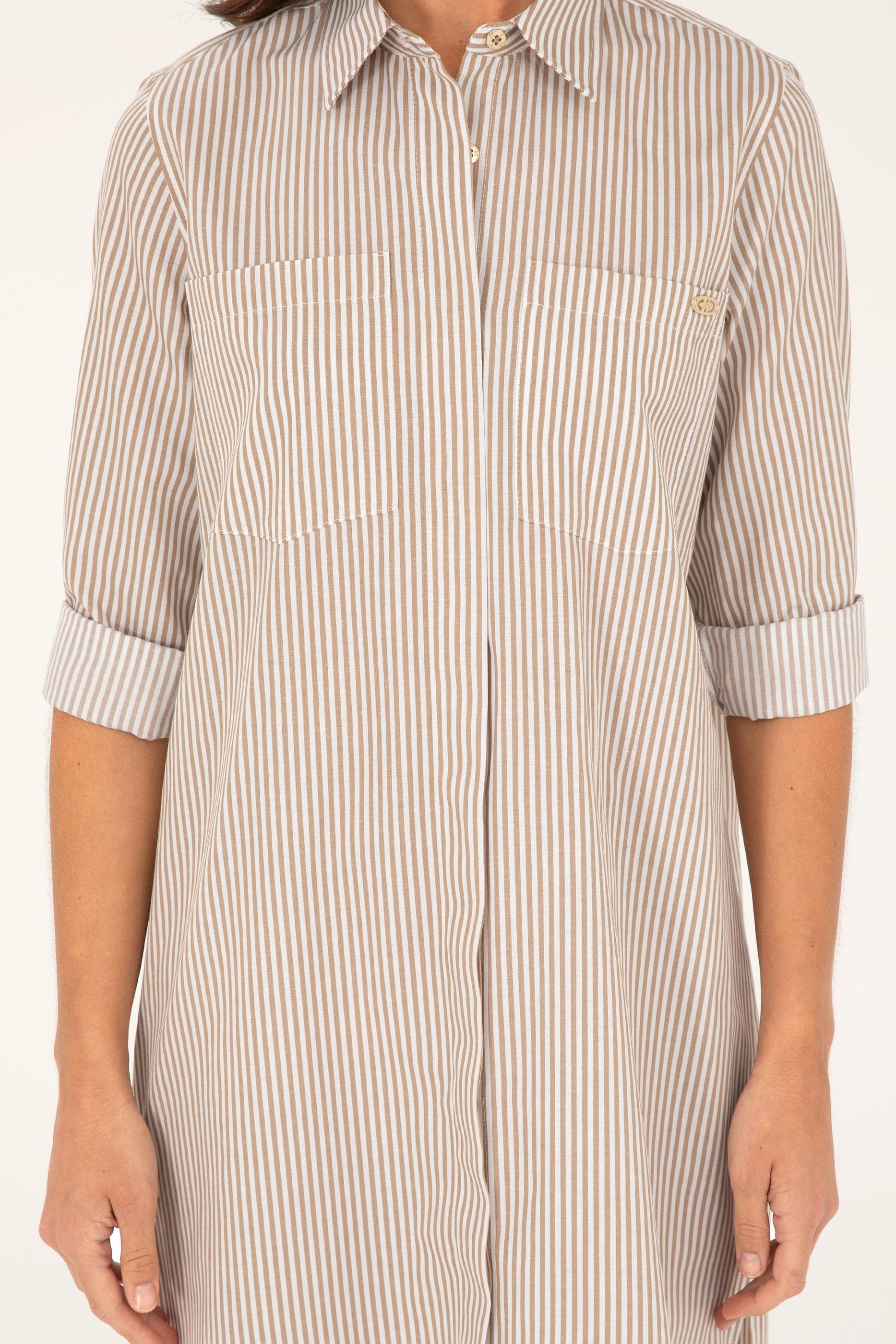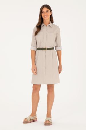 Kadın modasında rahatlığı ve şıklığı bir araya getiren çizgili gömlek elbise, %50 pamuk ve %50 polyester dokusu ile dikkat çeker. Hem nefes alabilen hem de hafif olan elbise, gün boyu konfor sağlar. Haki renk seçeneği ile doğanın zarif tonlarını gardırobunuza taşırken, çizgili deseni modern bir dokunuş katar. Standart fit kesimi vücut hatlarınızı nazikçe sarar ve size göz alıcı bir görünüm sunar.