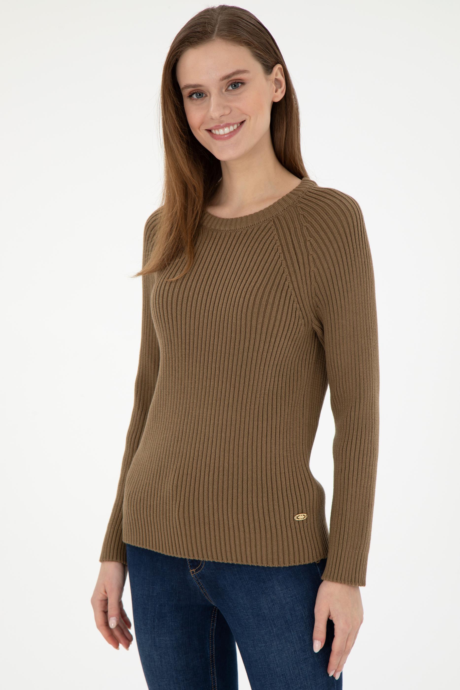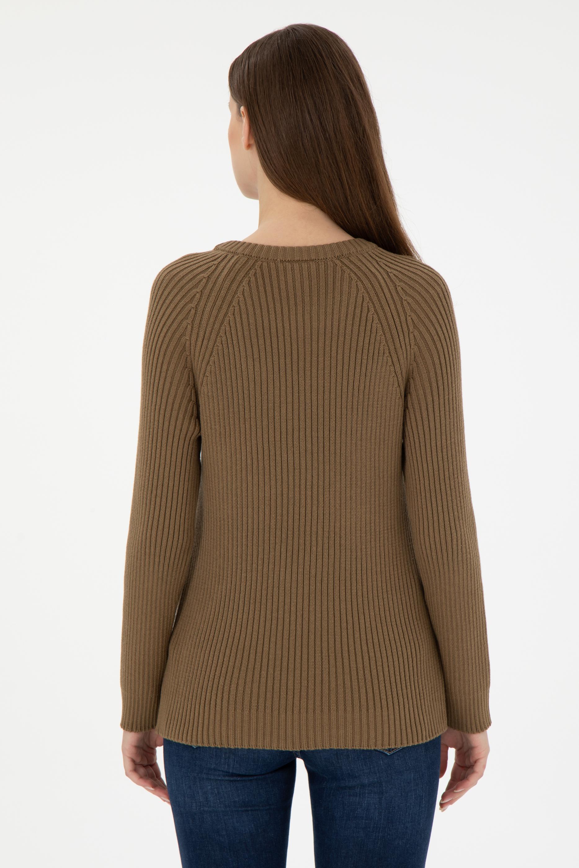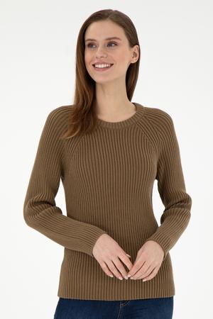 Kadın Haki Bisiklet Yaka Kazak