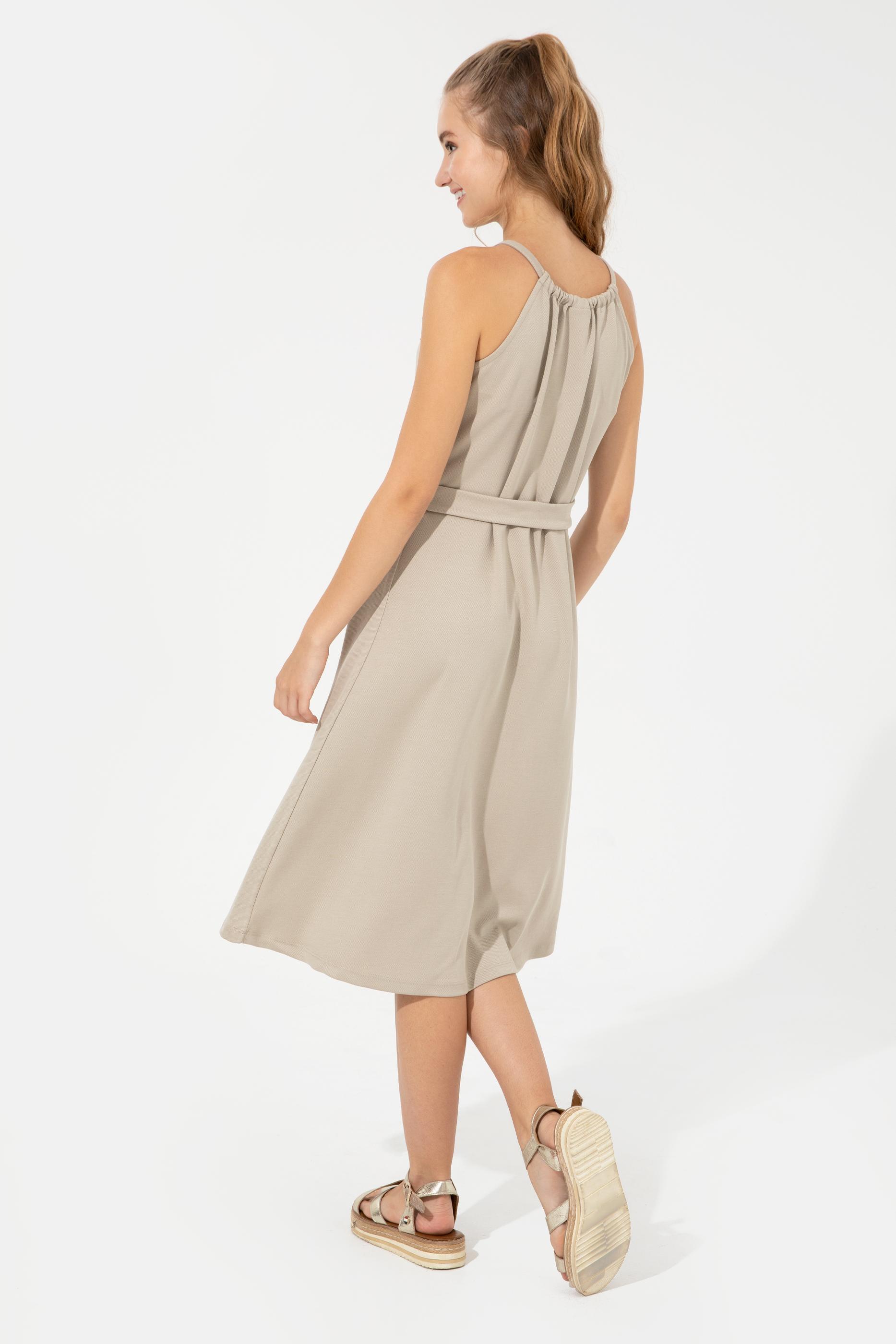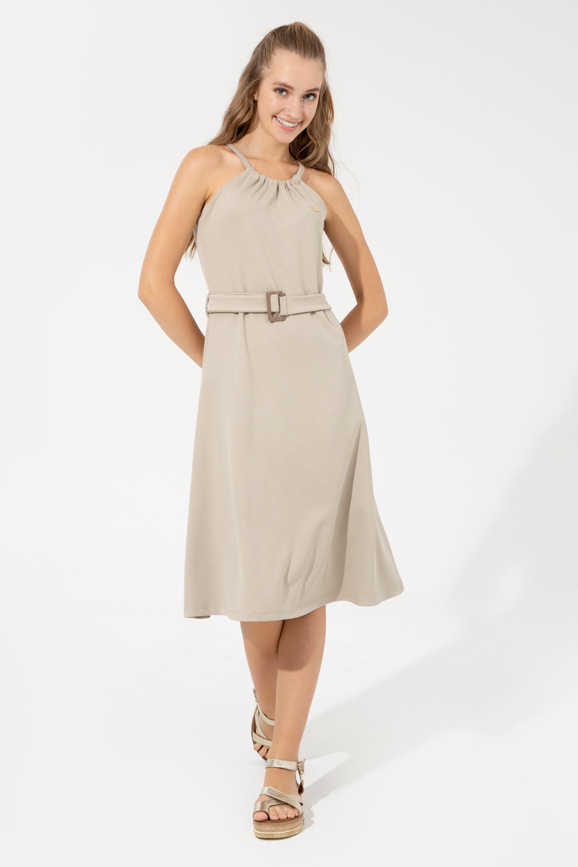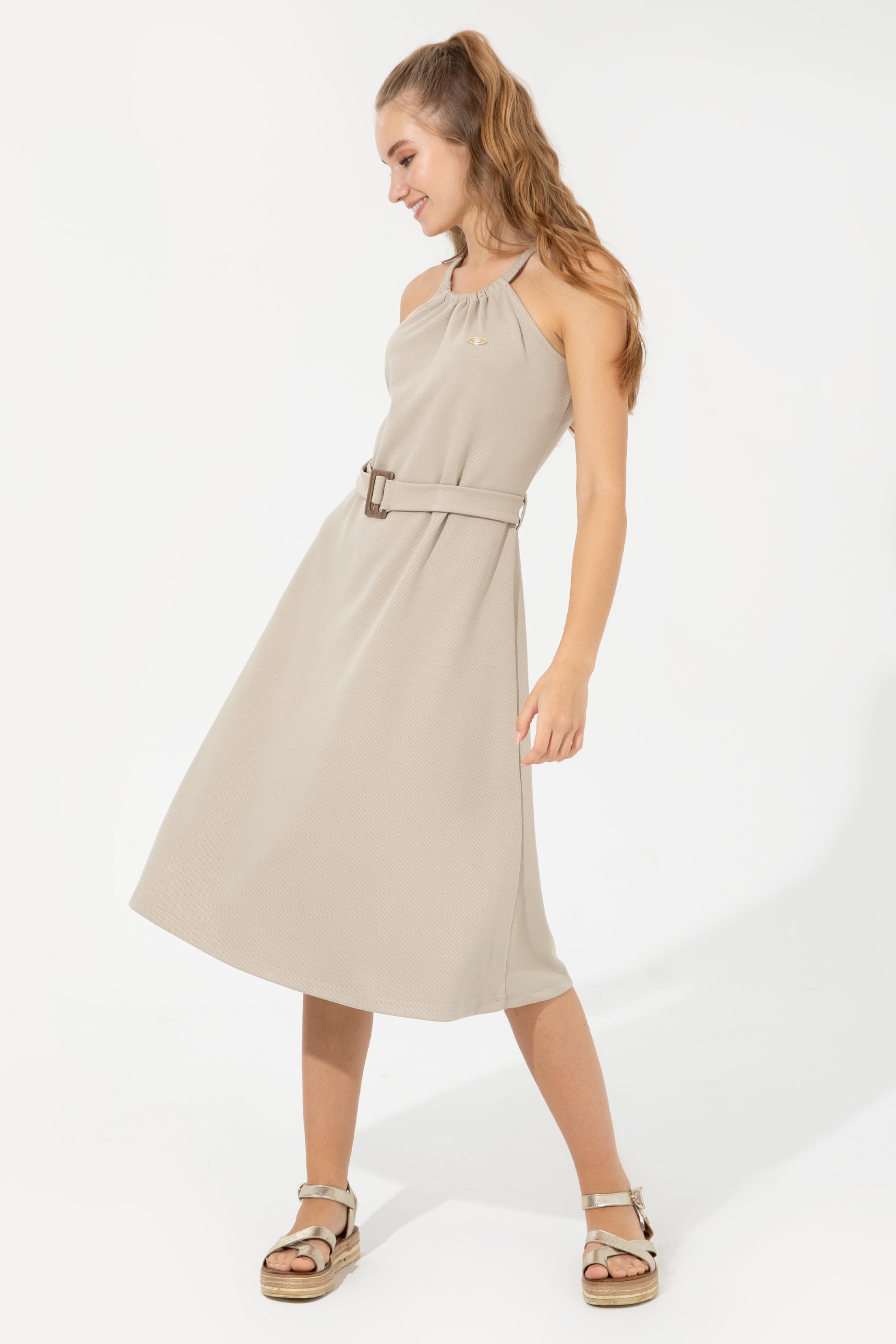 Kadın Haki Bisiklet Yaka Örme Elbise