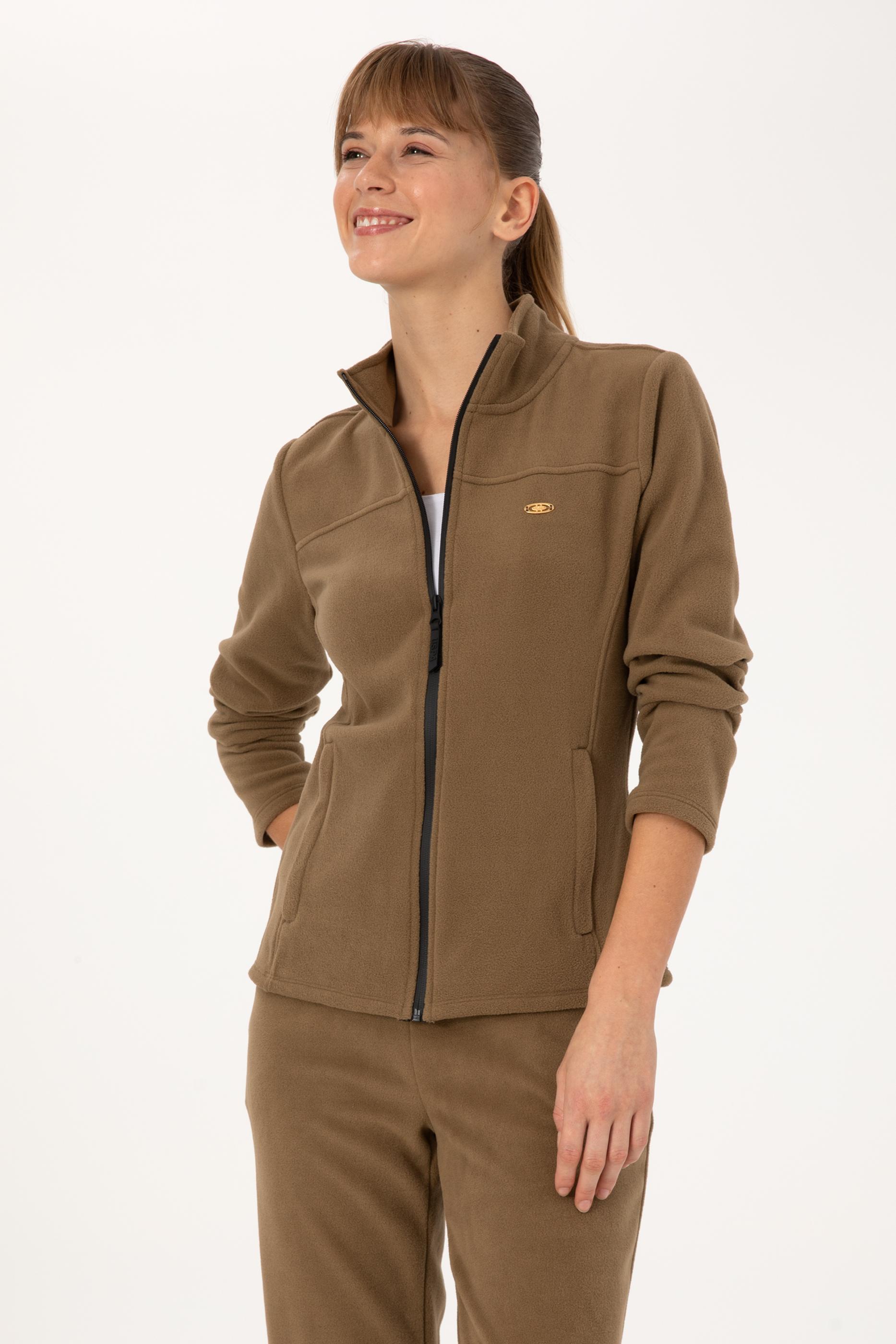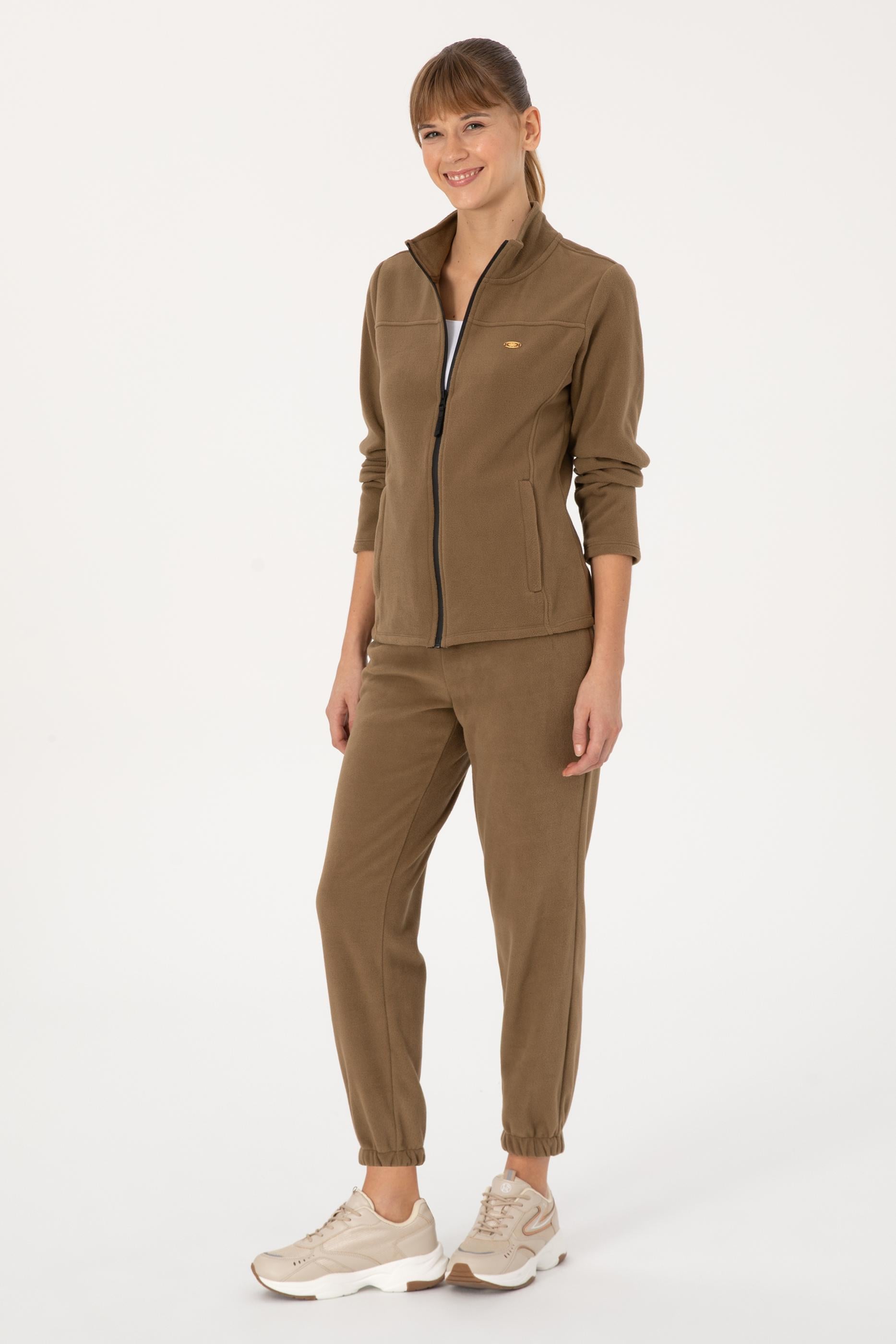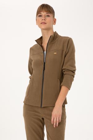 - Kadın Haki Fermuarlı Dik Yaka Polar Sweatshirt