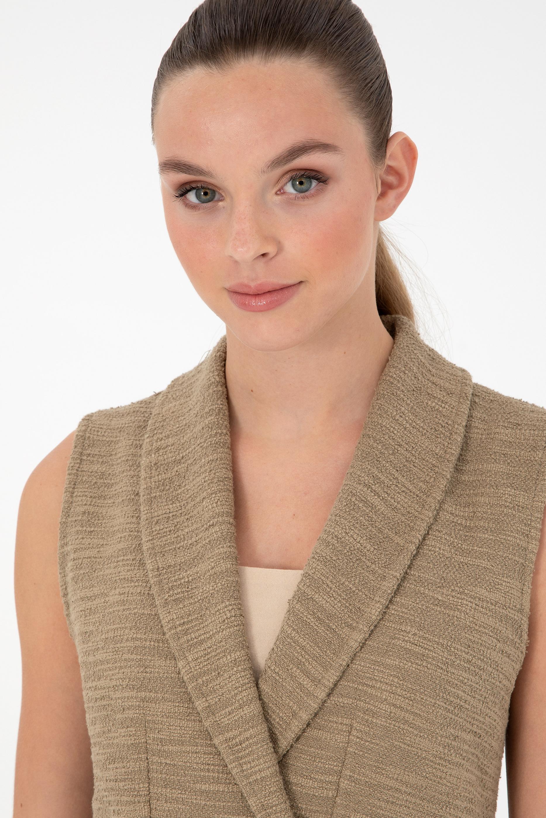 Kadın Haki V Yaka Örme Yelek