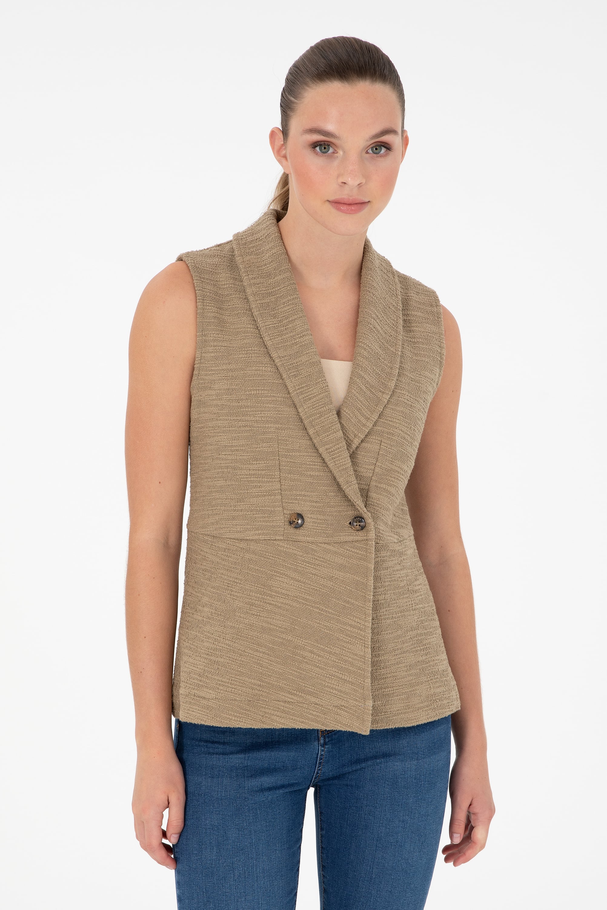 - Kadın Haki V Yaka Örme Yelek