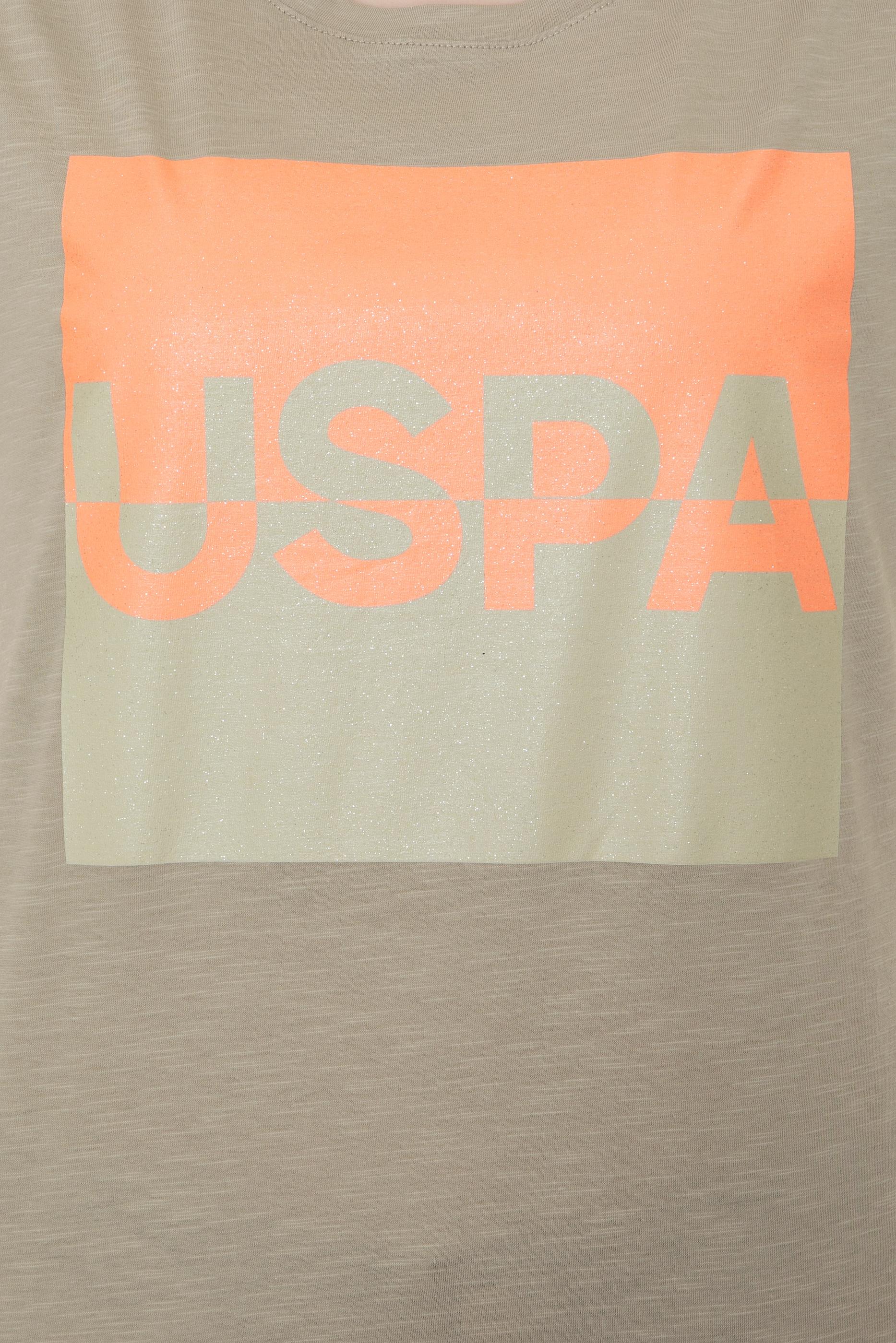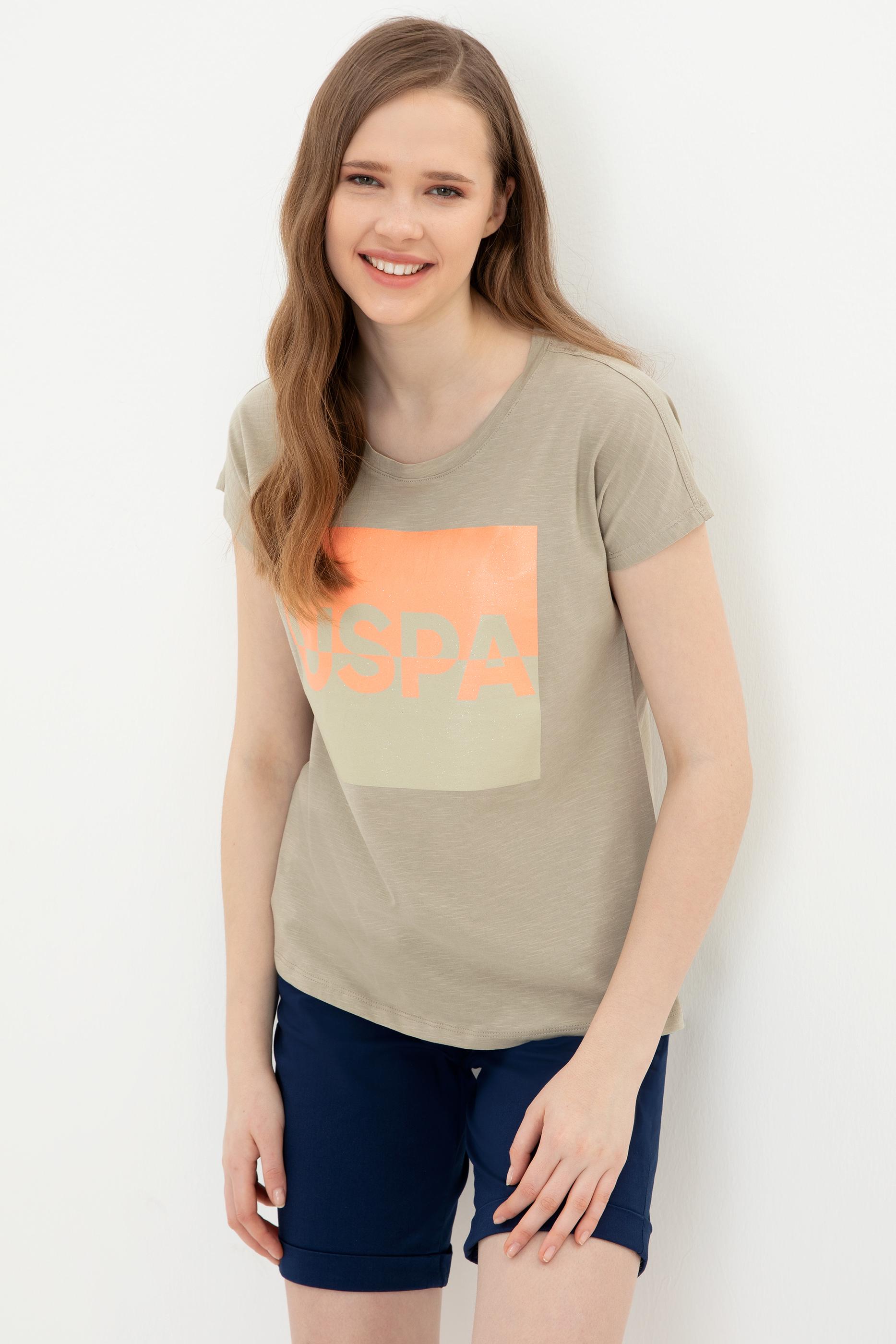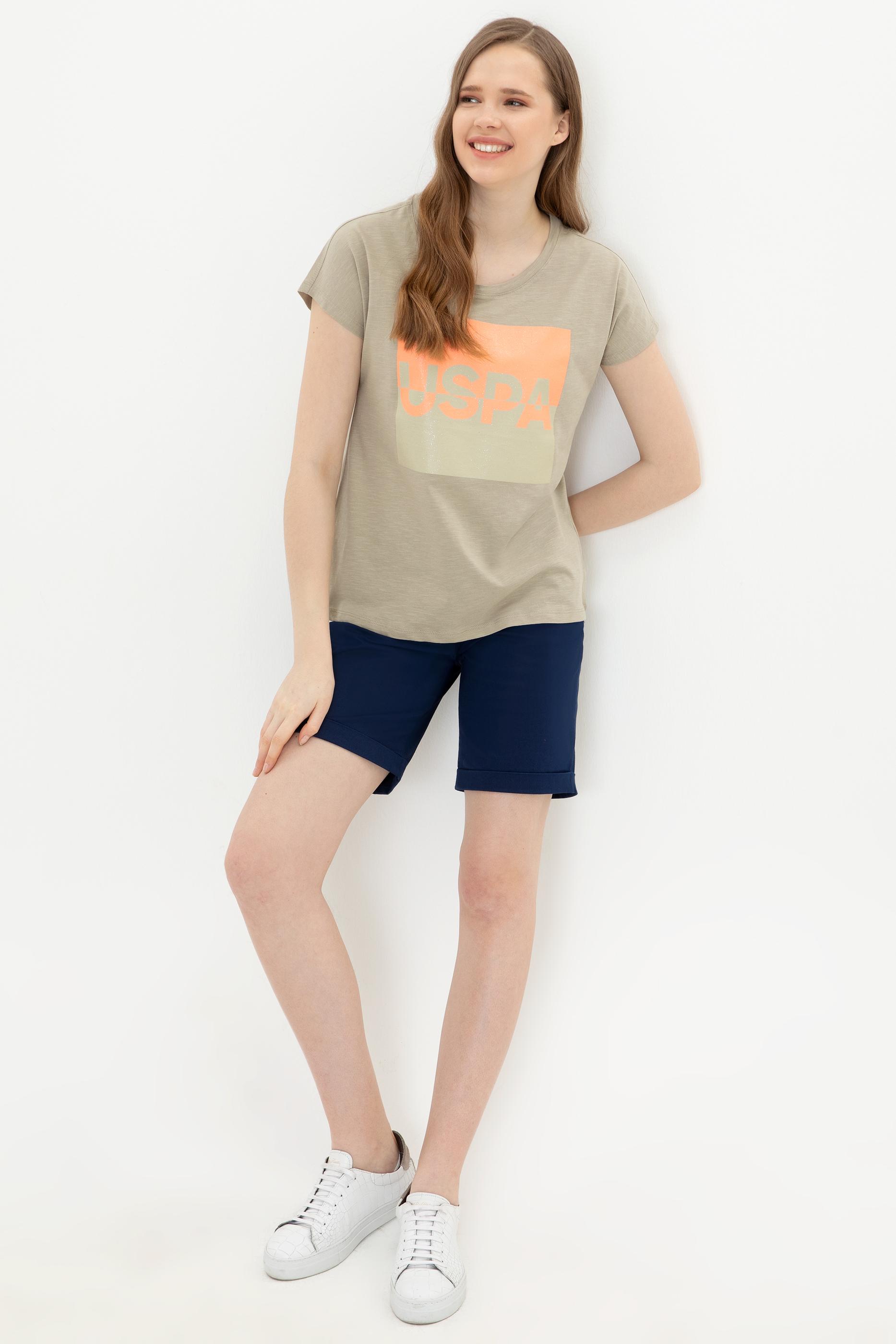 Bisiklet yaka t-shirt modelimiz şık detaylarıyla hareketli bir görünüm kazanıyor. Ön tarafında simli USPA yazısı bulunan baskılı t-shirt modelimiz gösterişli tasarımıyla özellikle yaz gecelerinde ışıltı saçıyor. Kadın haki t-shirt modelimizin rengi ise bu özel tasarımı öne çıkaran yalın bir zemin oluşturuyor. %100 pamuklu t-shirt modelimiz terlemeyi kontrol altında tutarak ferah bir kullanım imkanı da sunuyor.