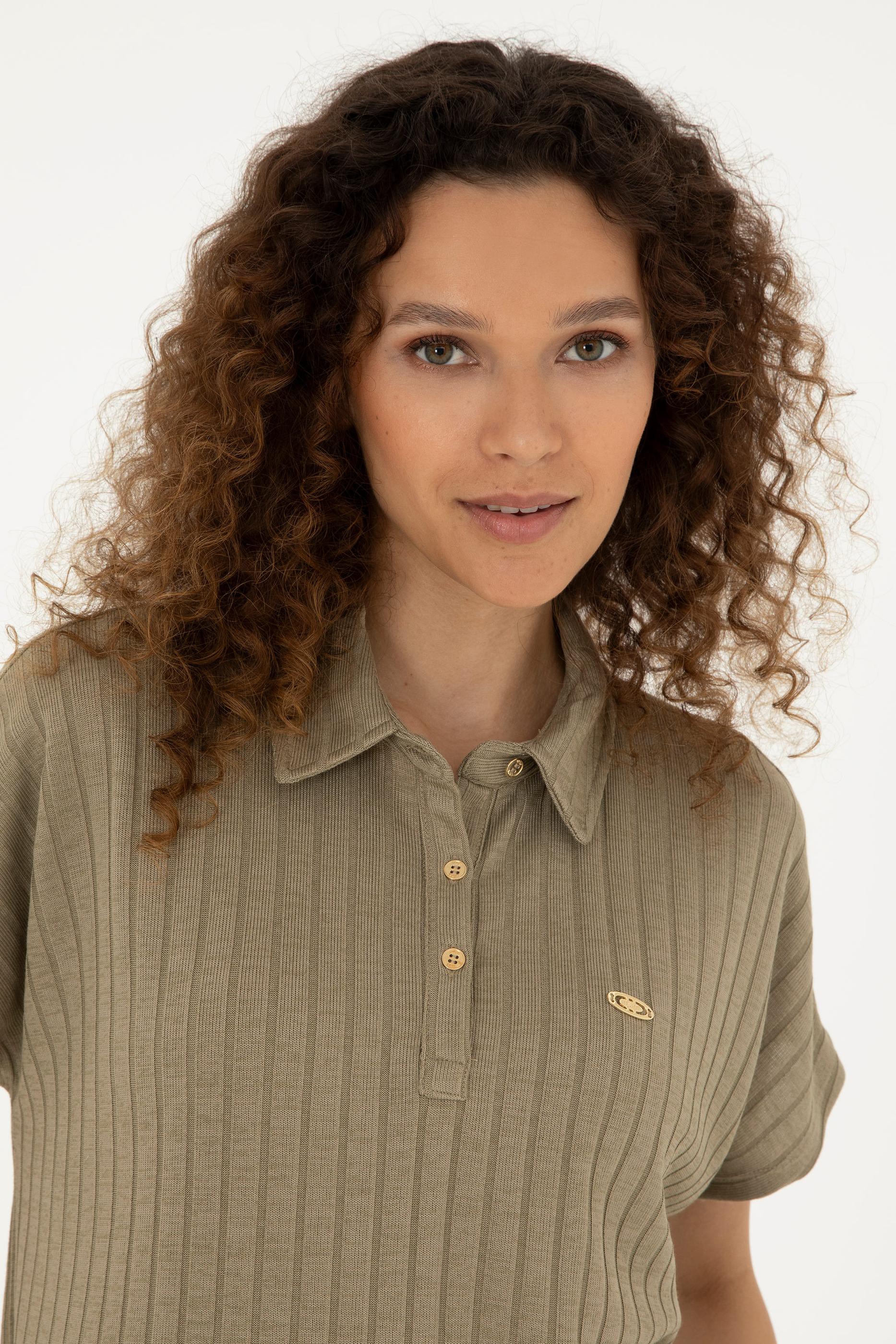 Kadın Haki Polo Yaka Tişört