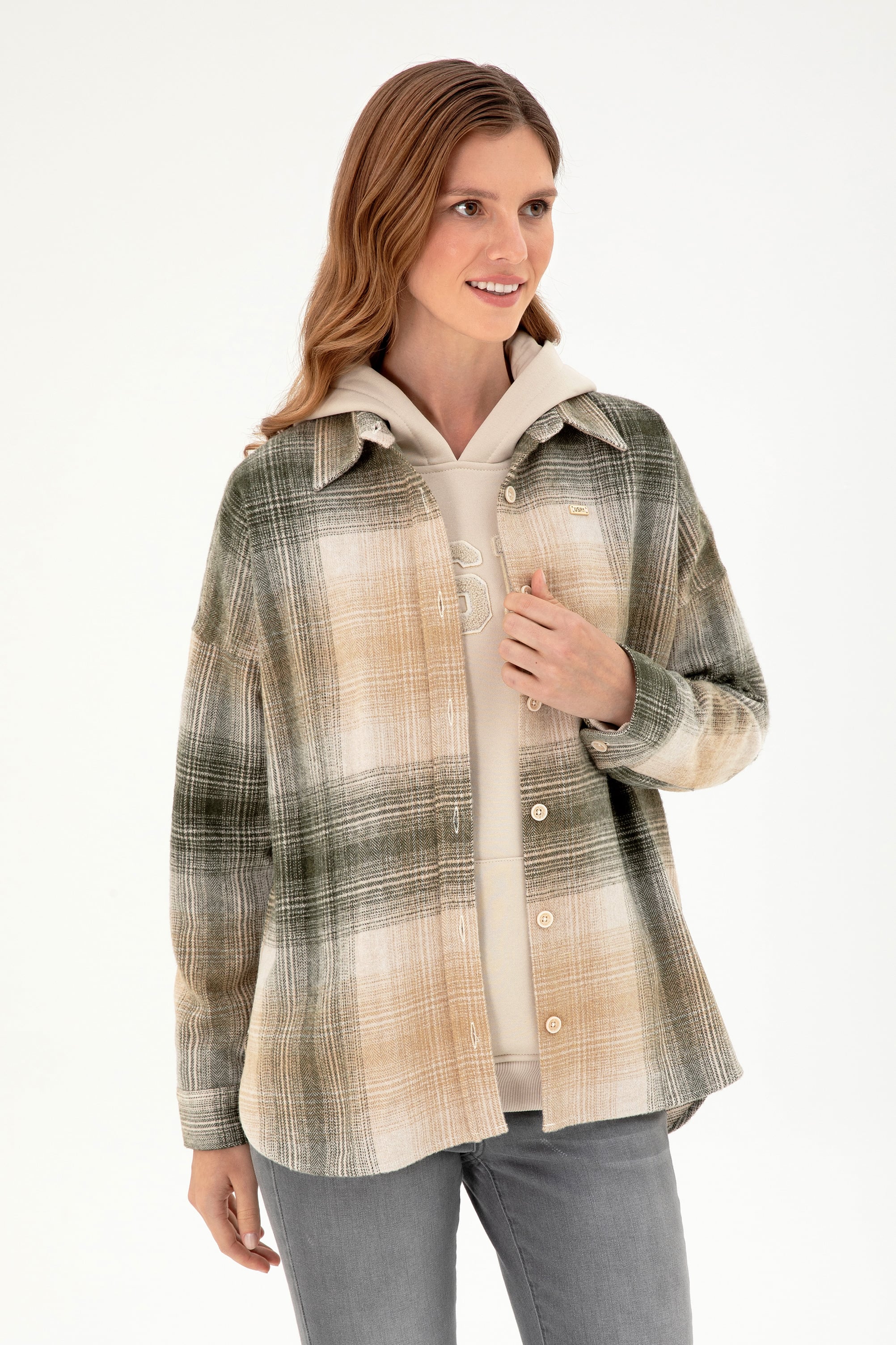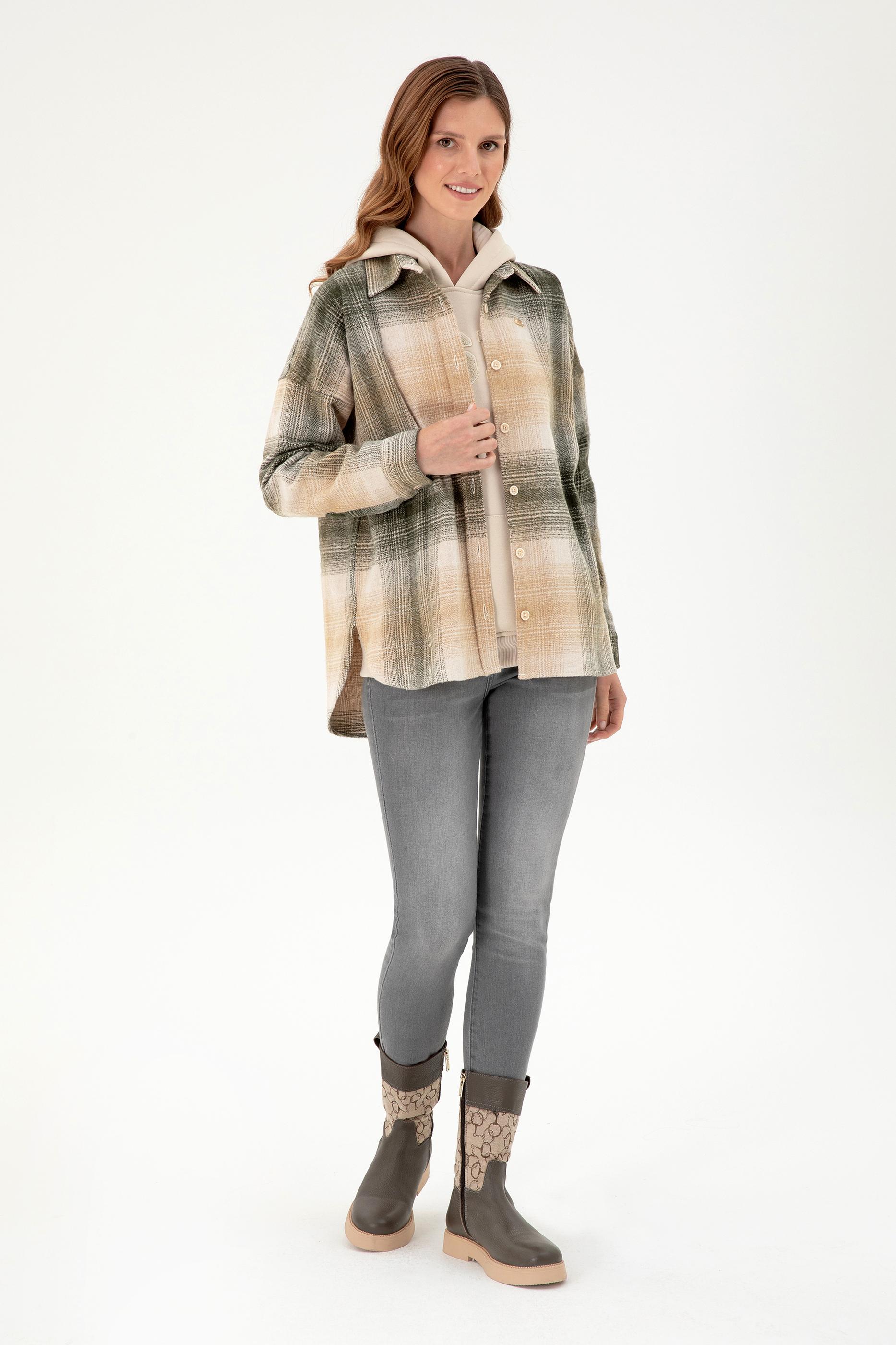 Doğanın tonlarını yansıtan haki renk, desenli ve ekose detaylarıyla şıklığı bir arada sunarak gardırobunuzda fark yaratacak bir parça olmaktadır. %83 akrilik, %9 polyester, %4 pamuk, %3 karışık lifler ve %1 yün karışımıyla üretilmiş olan model, hem sıcak tutmakta hem de hafif bir kullanım sunmaktadır. Yumuşak dokusu ve rahat kesimi, konforlu bir giyim deneyimi sağlar. Uzun kollu tasarım, mevsim geçişlerinde ve serin günlerde ideal bir tercih olup, çok yönlü kullanıma olanak tanımaktadır. Ekose detaylar, klasik tarza modern bir dokunuş eklerken, haki rengin verdiği doğallıkla günlük hayattan iş stiline kadar pek çok farklı ortamda rahatça kullanılabilir. Hem spor hem de şık kombinlerle uyum sağlayan gömlek, özellikle sade kıyafetlerle giyildiğinde dikkat çekici bir parça haline gelmektedir. Comfort fit kesimi, vücudu sıkmadan rahat hareket etmeye imkan tanır ve gün boyu konfor sağlamaktadır. Kumaşında yer alan pamuk oranı nefes alabilirlik sunarken, yün ve karışık lifler soğuk havalarda ekstra sıcaklık katar. Ekose detaylar, gömleğe hem klasik hem de özgün bir hava katmakta olup, farklı tarzlar arayanlar için idealdir. Yıpranmaya karşı dayanıklı yapısı, uzun ömürlü bir kullanım sunmakta, her yaş grubundan kadın için hem şıklığı hem de rahatlığı bir arada sunmaktadır.