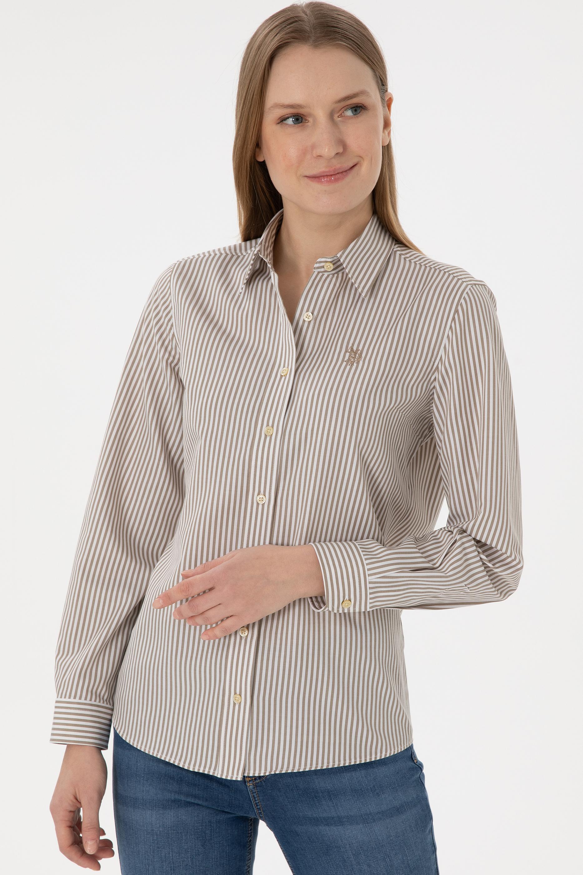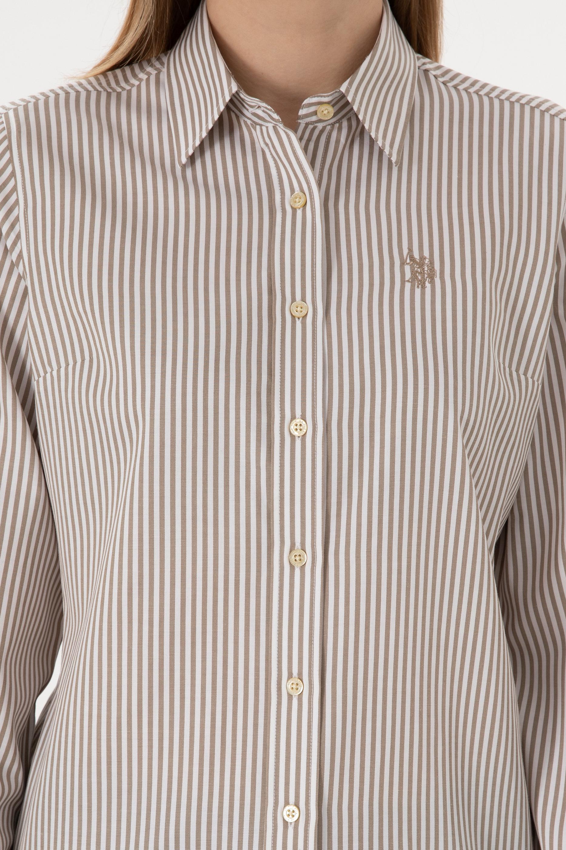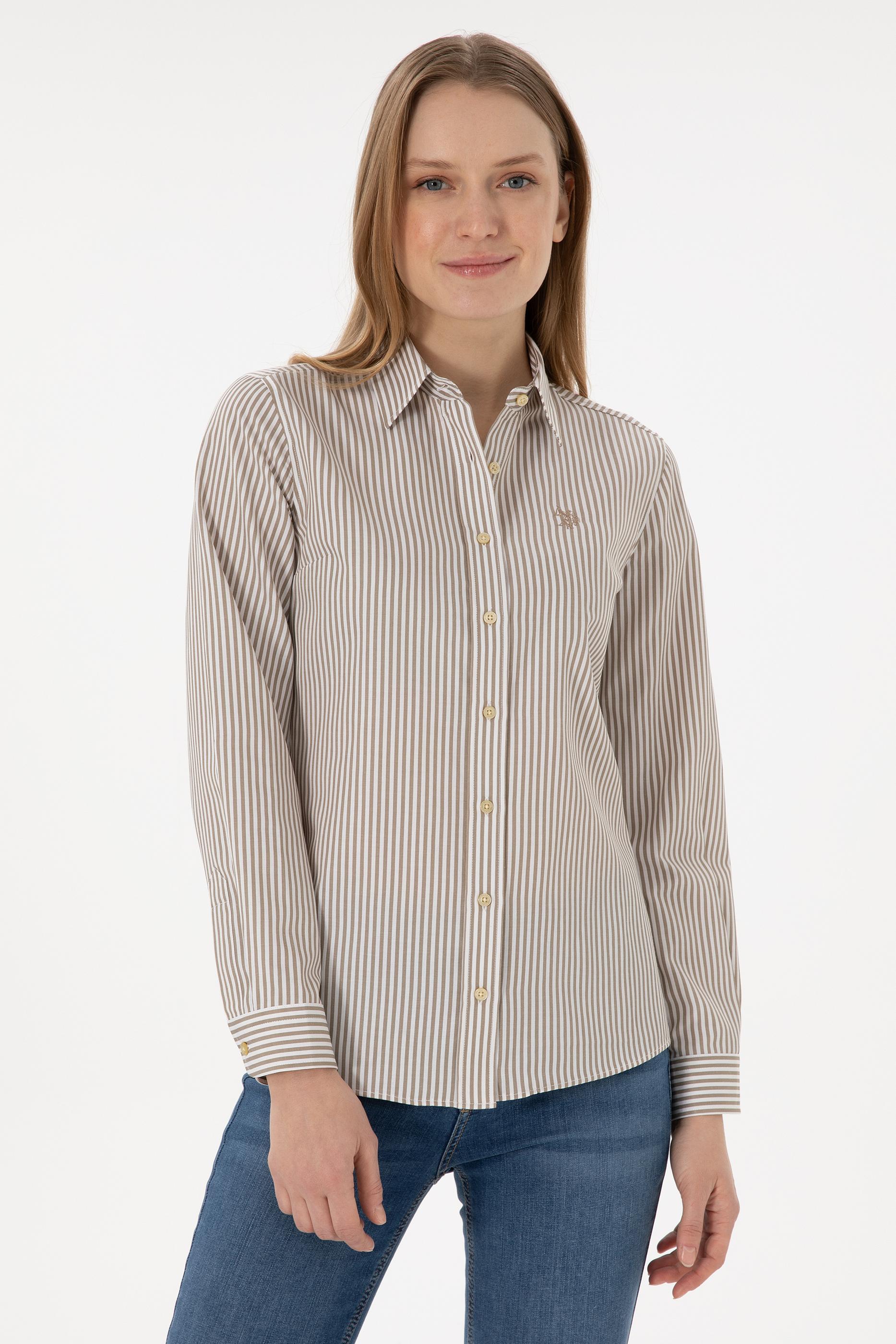 - Kadın Haki Çizgili Uzun Kollu Gömlek