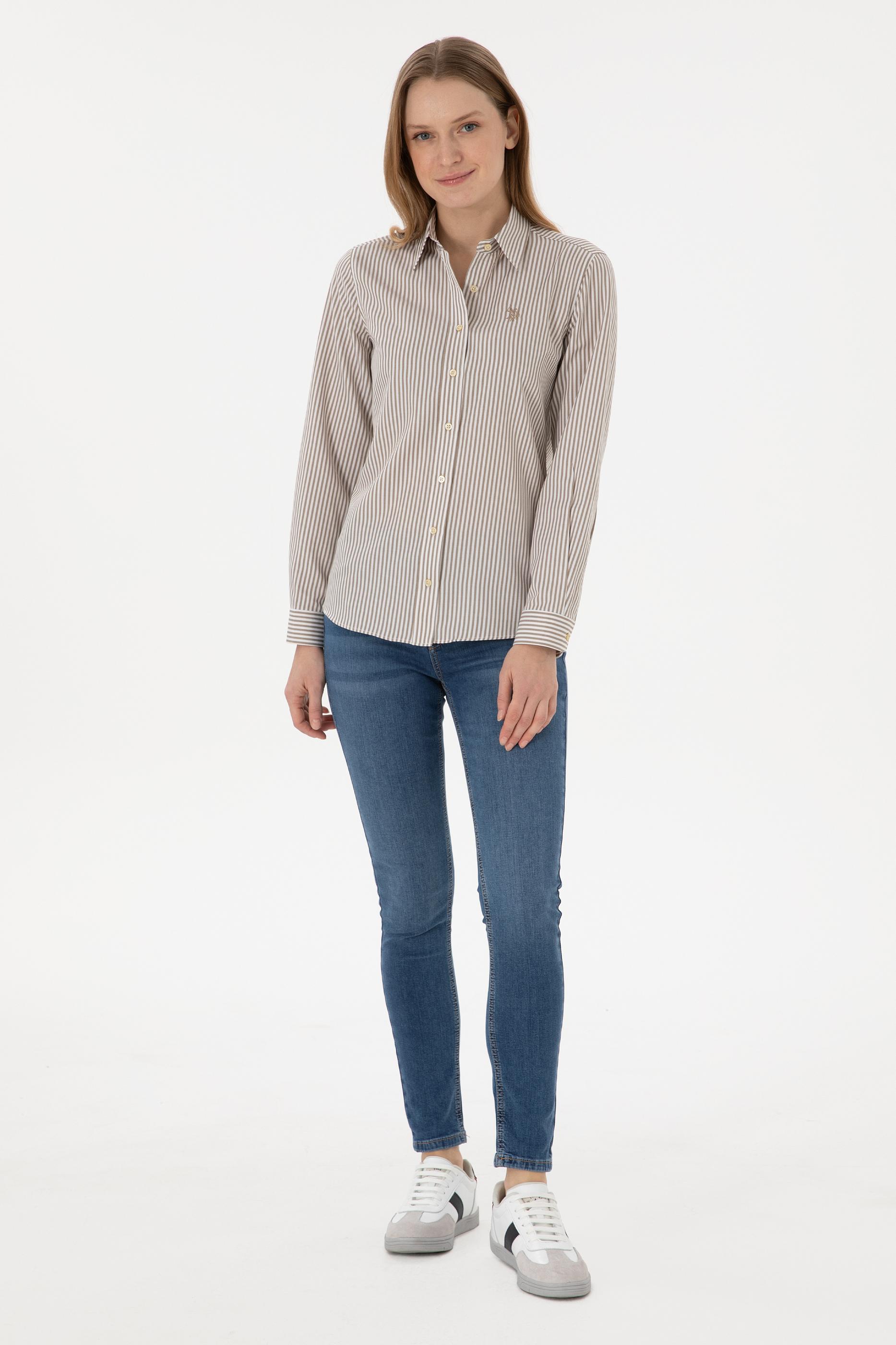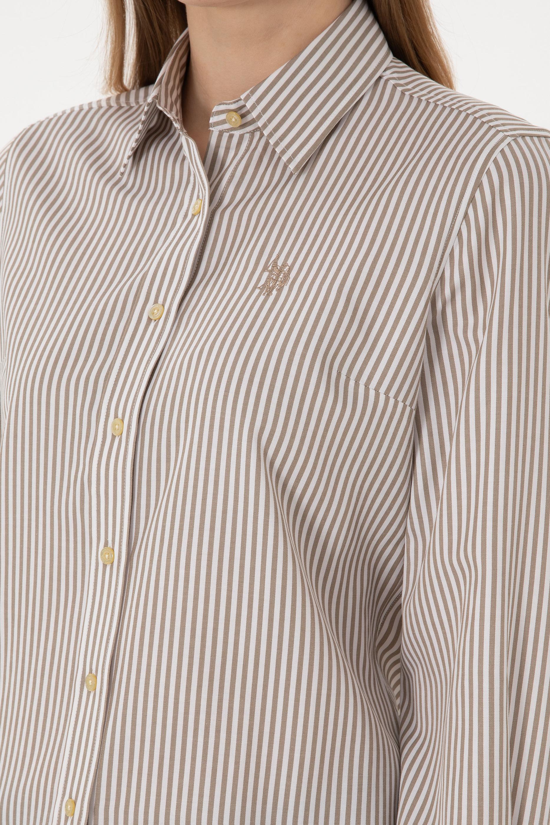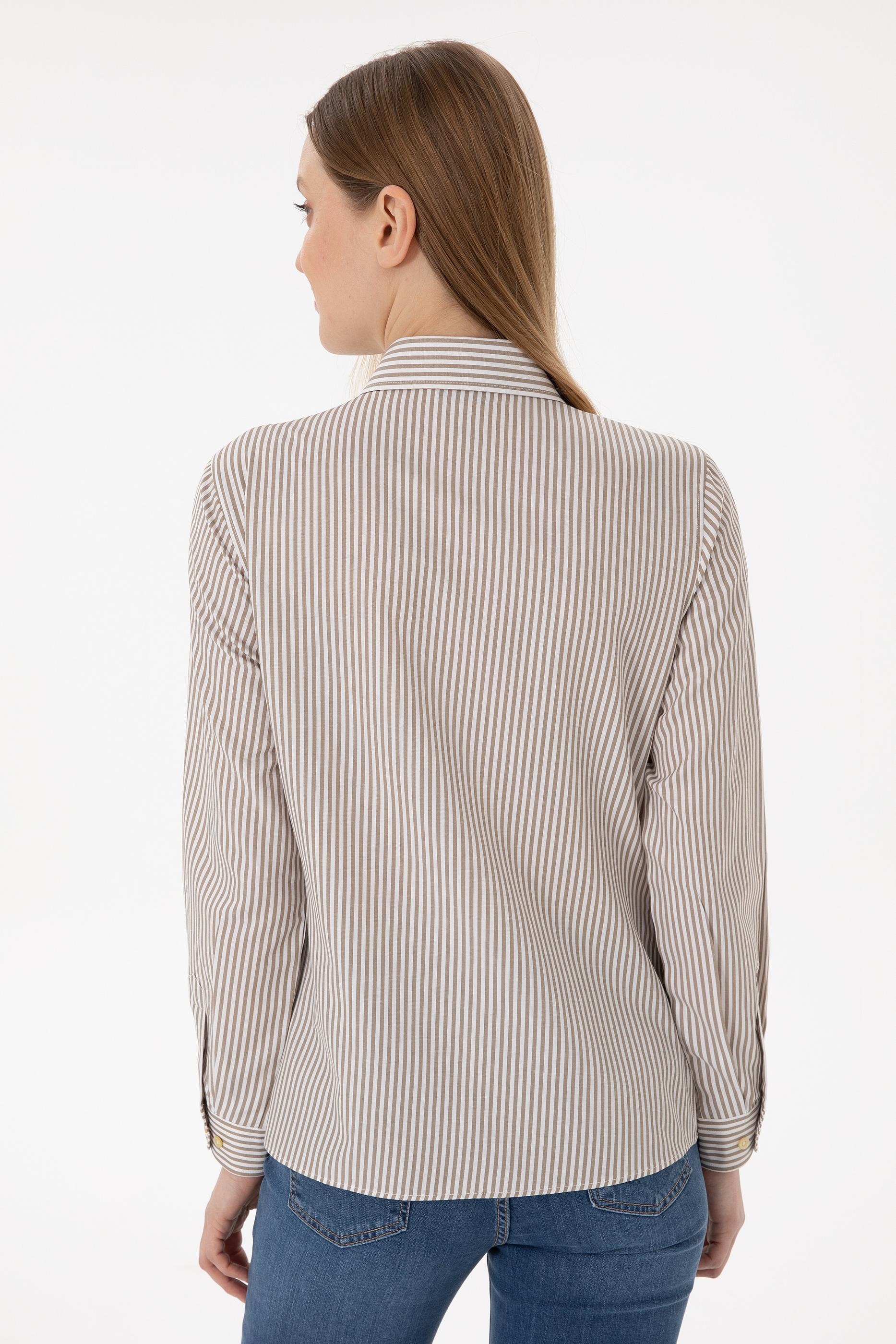 - Kadın Haki Çizgili Uzun Kollu Gömlek