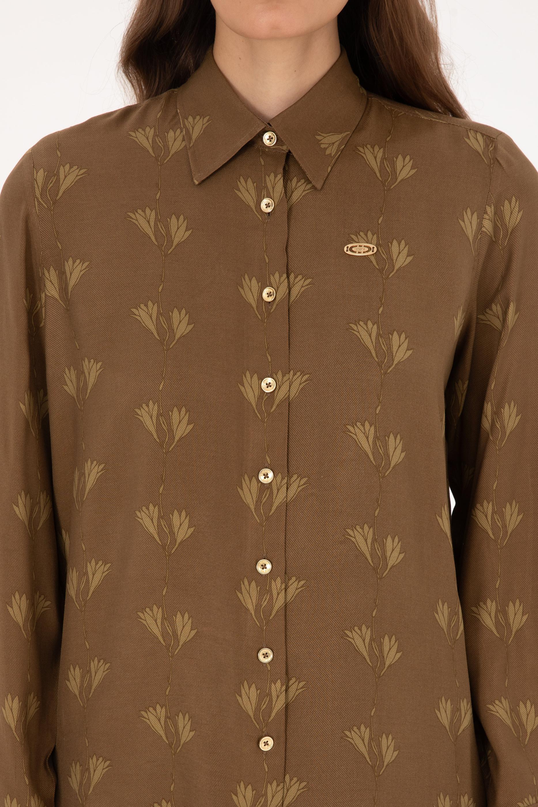 Kadın Haki Uzun Kollu Gömlek - 50308637020