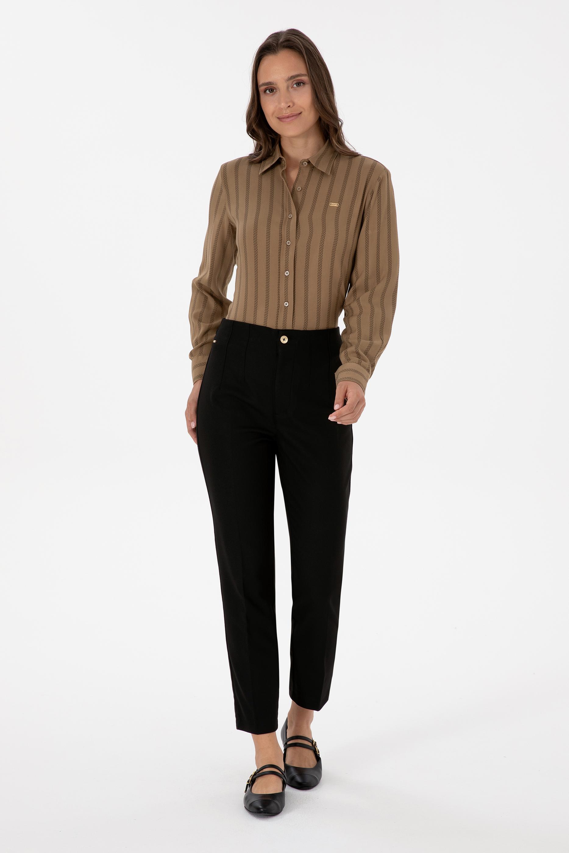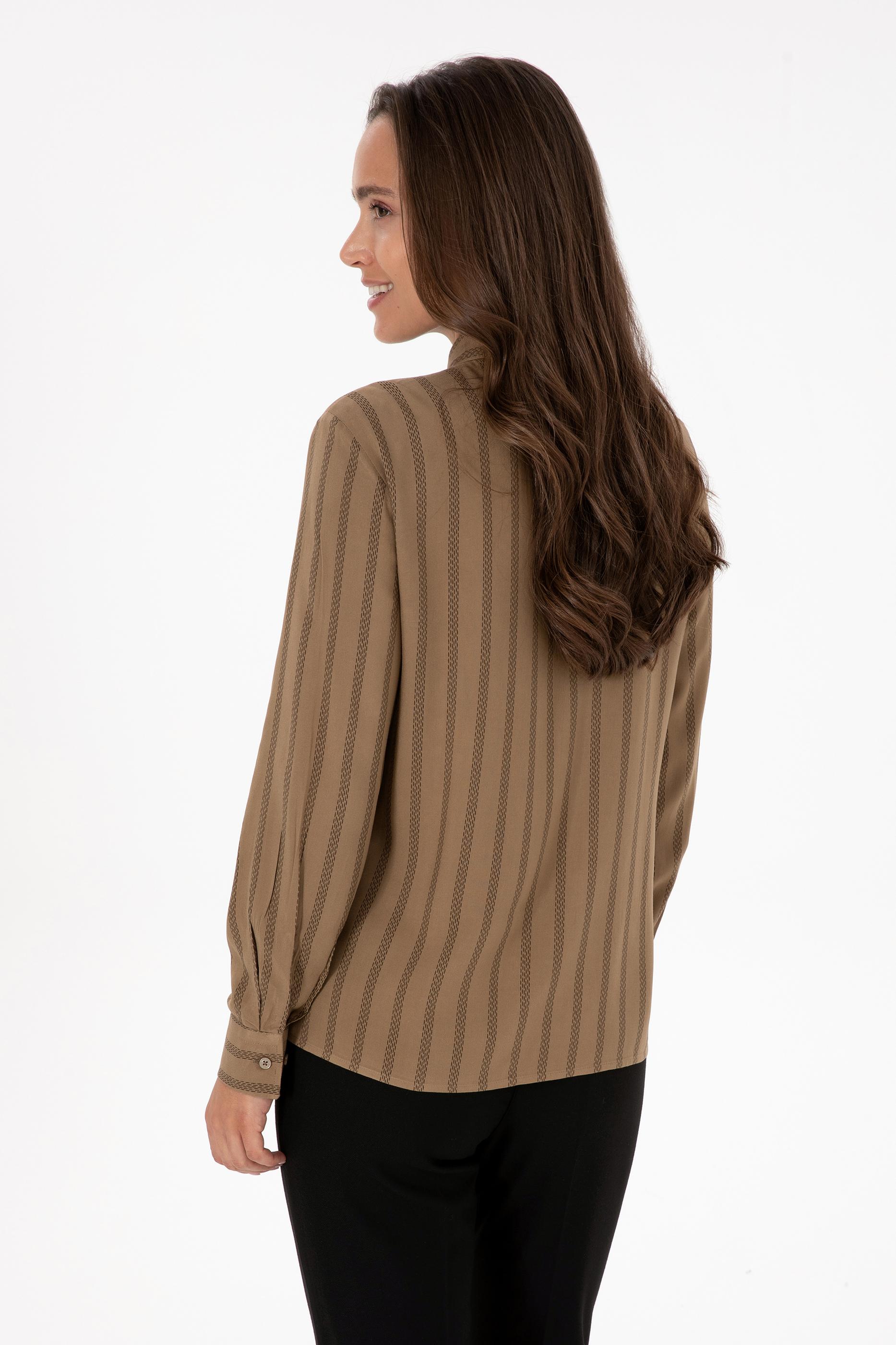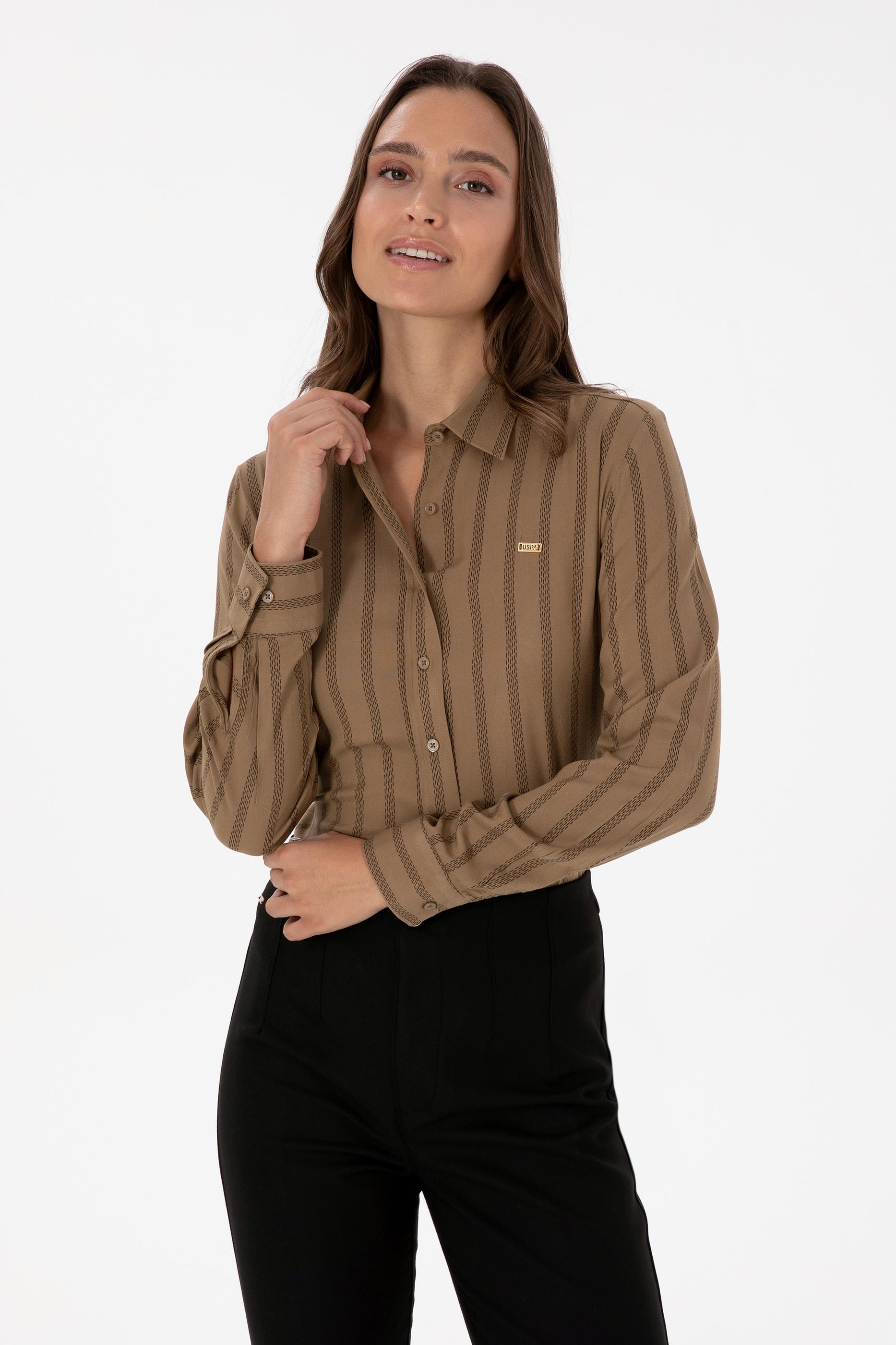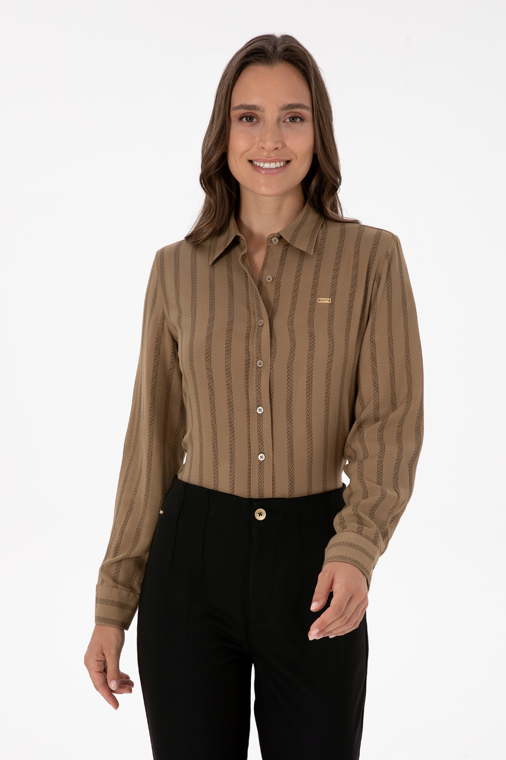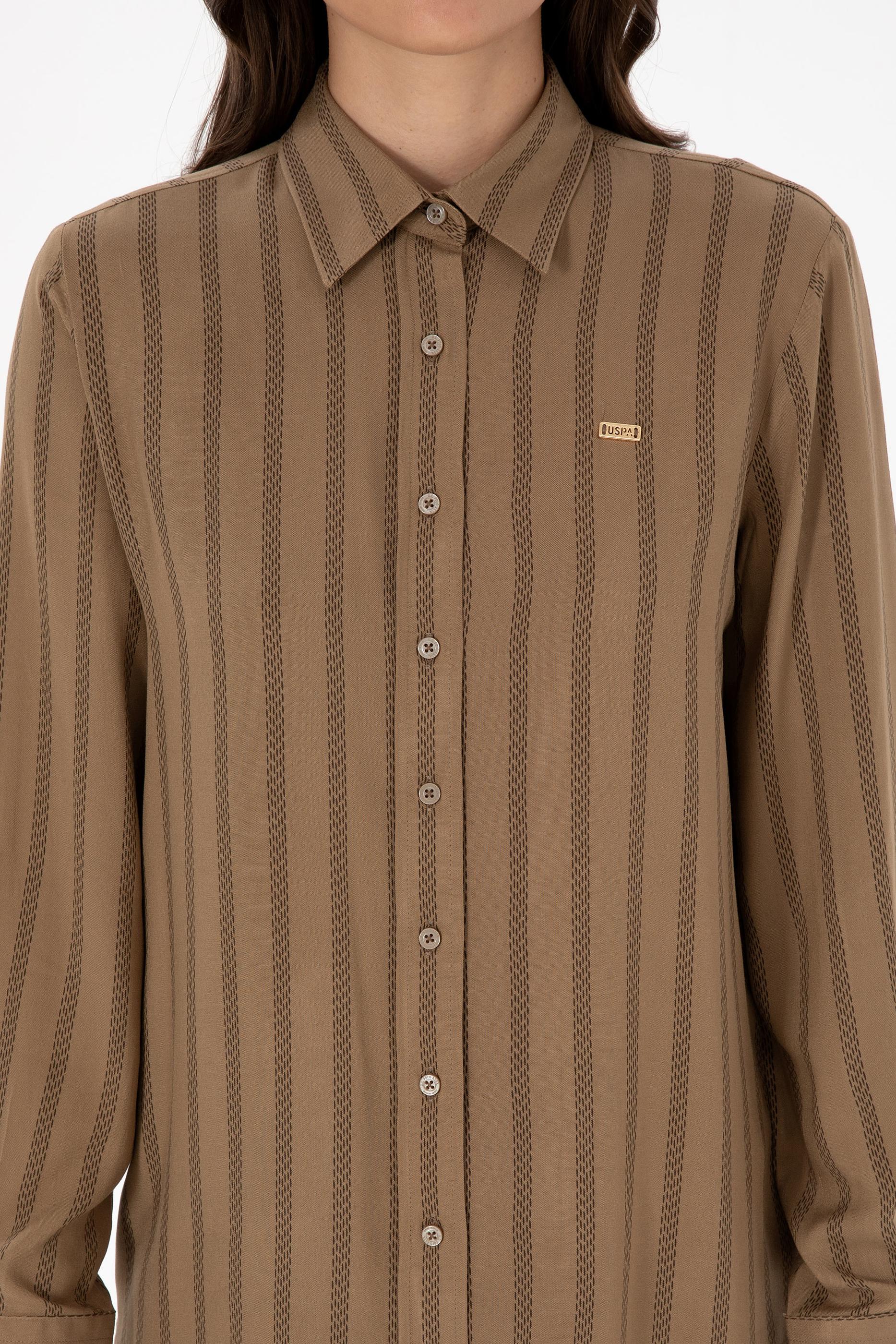 Kadın Haki Çizgili Uzun Kollu Gömlek