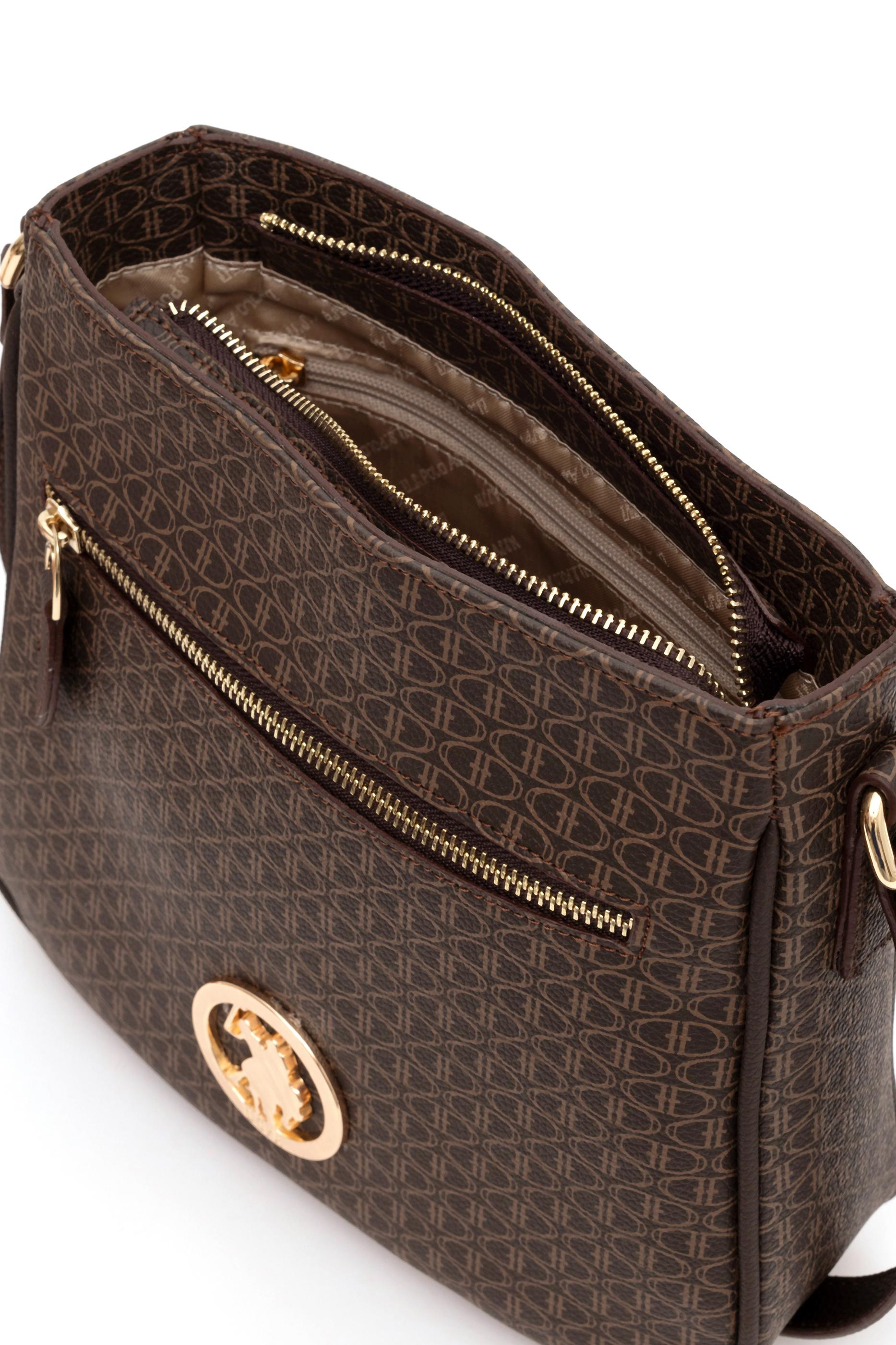 U.S. Polo Assn. kahverengi çapraz çanta, kompakt yapısı ve hafif tasarımıyla günlük kullanımda pratiklik sunar. Tüm yüzeyi markaya özgü küçük desenlerle kaplıdır; ön kısmında altın renkli yuvarlak metal logo ve fermuarlı bir dış cep yer alır. İç bölmesi fermuarlı kapamalıdır. Ayarlanabilir omuz askısı sayesinde vücuda göre ayarlanabilir ve rahatça taşınabilir. Kahverenginin sıcak tonlarıyla sade ve şık bir görünüm sunan model, işlevsel yapısıyla her stile uyum sağlar.