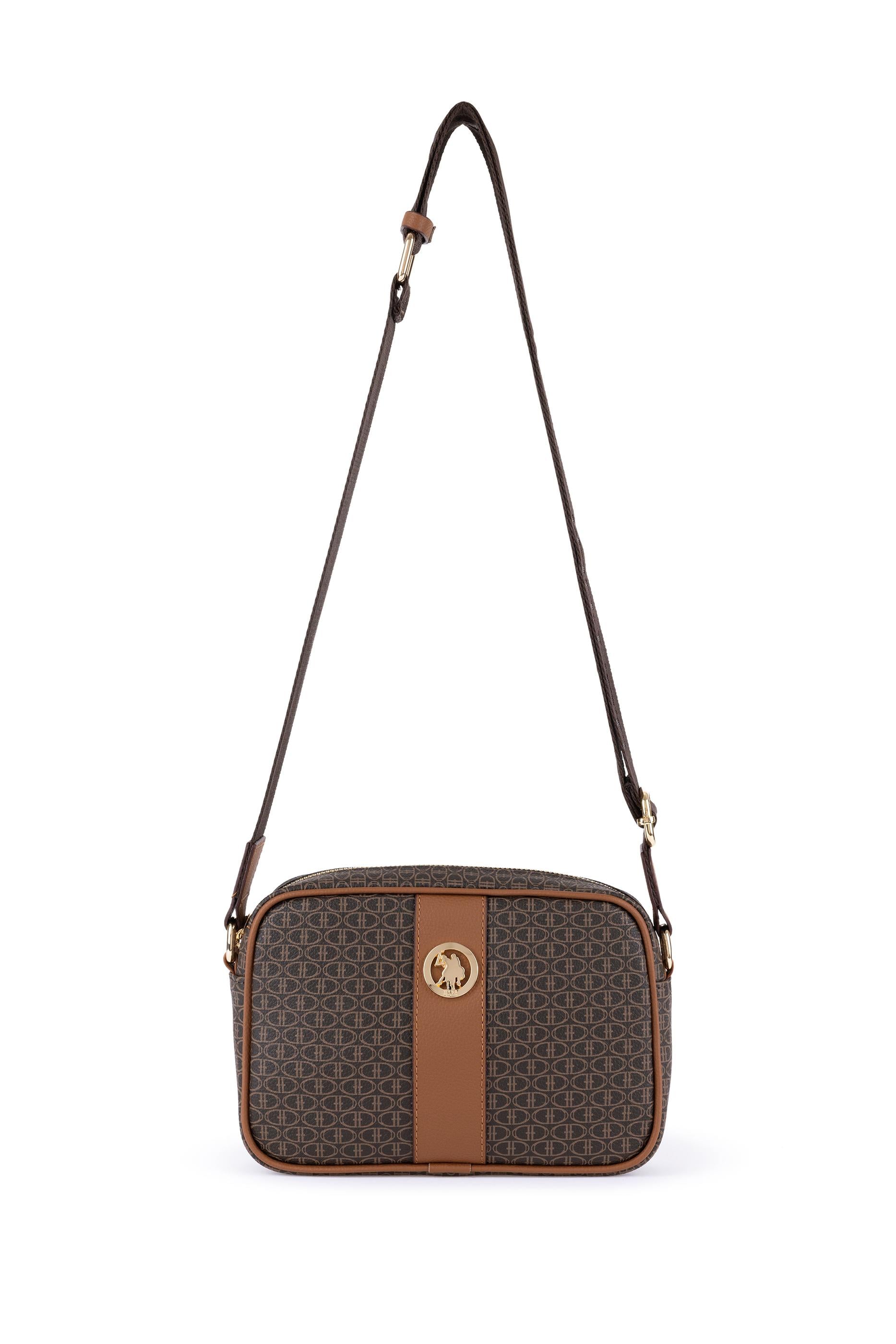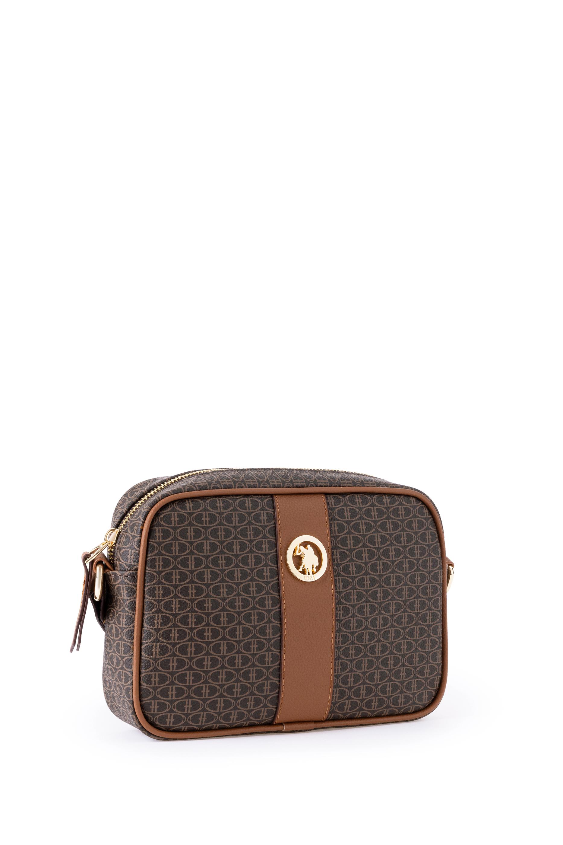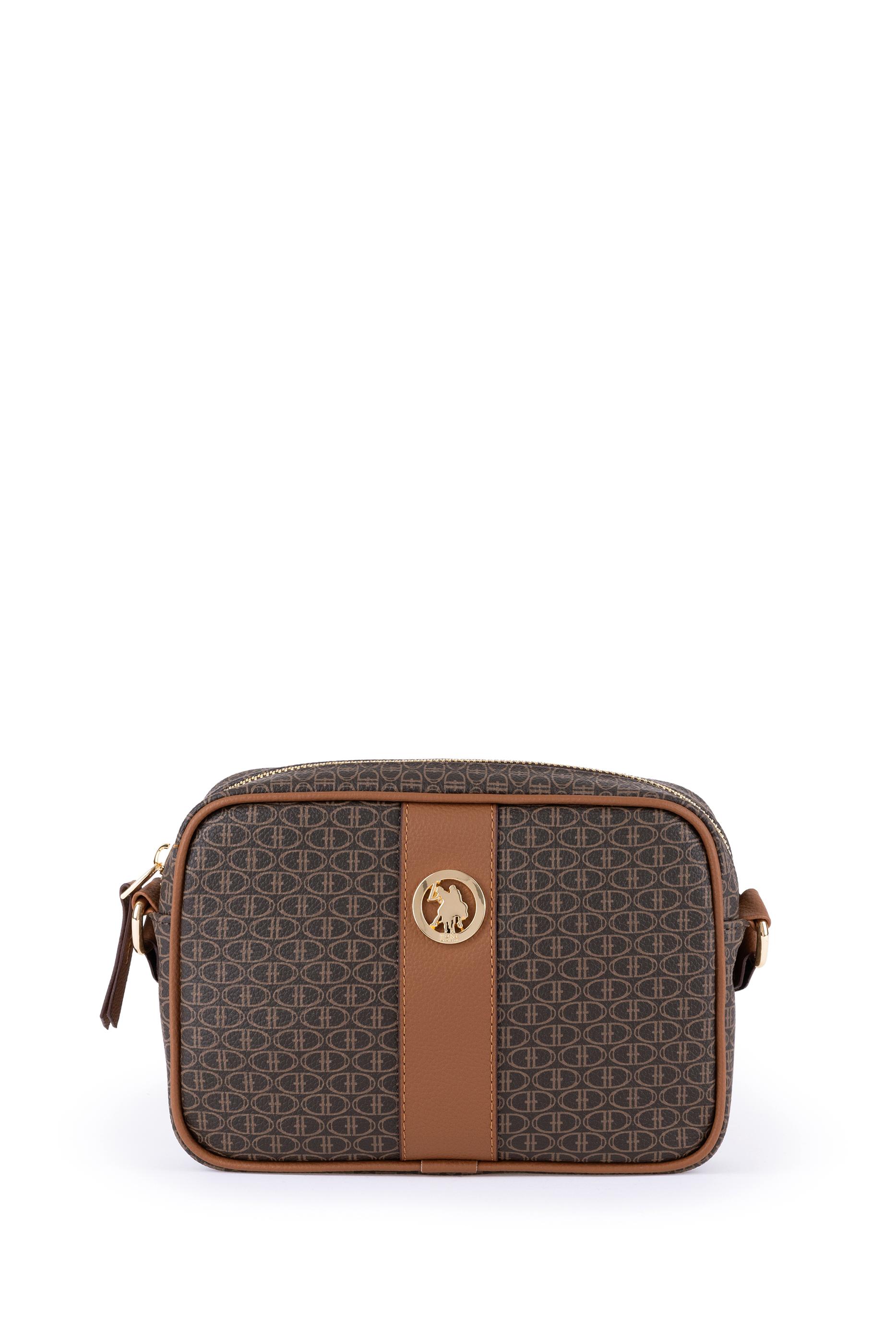 U.S. Polo Assn. kahverengi çapraz çanta, kompakt boyutu ve düzenli hatlarıyla günlük kullanım için ideal bir modeldir. Tüm yüzeyinde açık tonlu monogram desen kullanılmış, ortadan geçen kontrast taba şerit ile görsel denge sağlanmıştır. Ön kısmında altın renkli yuvarlak metal logo detayı yer alır. Fermuarlı ana bölme kişisel eşyaların güvenli biçimde taşınmasına olanak tanırken, ayarlanabilir omuz askısı çantanın vücuda uyumlu şekilde kullanılmasını sağlar. Hafif yapısı ve sade renk paletiyle her mevsime ve stile kolayca uyum sağlar.