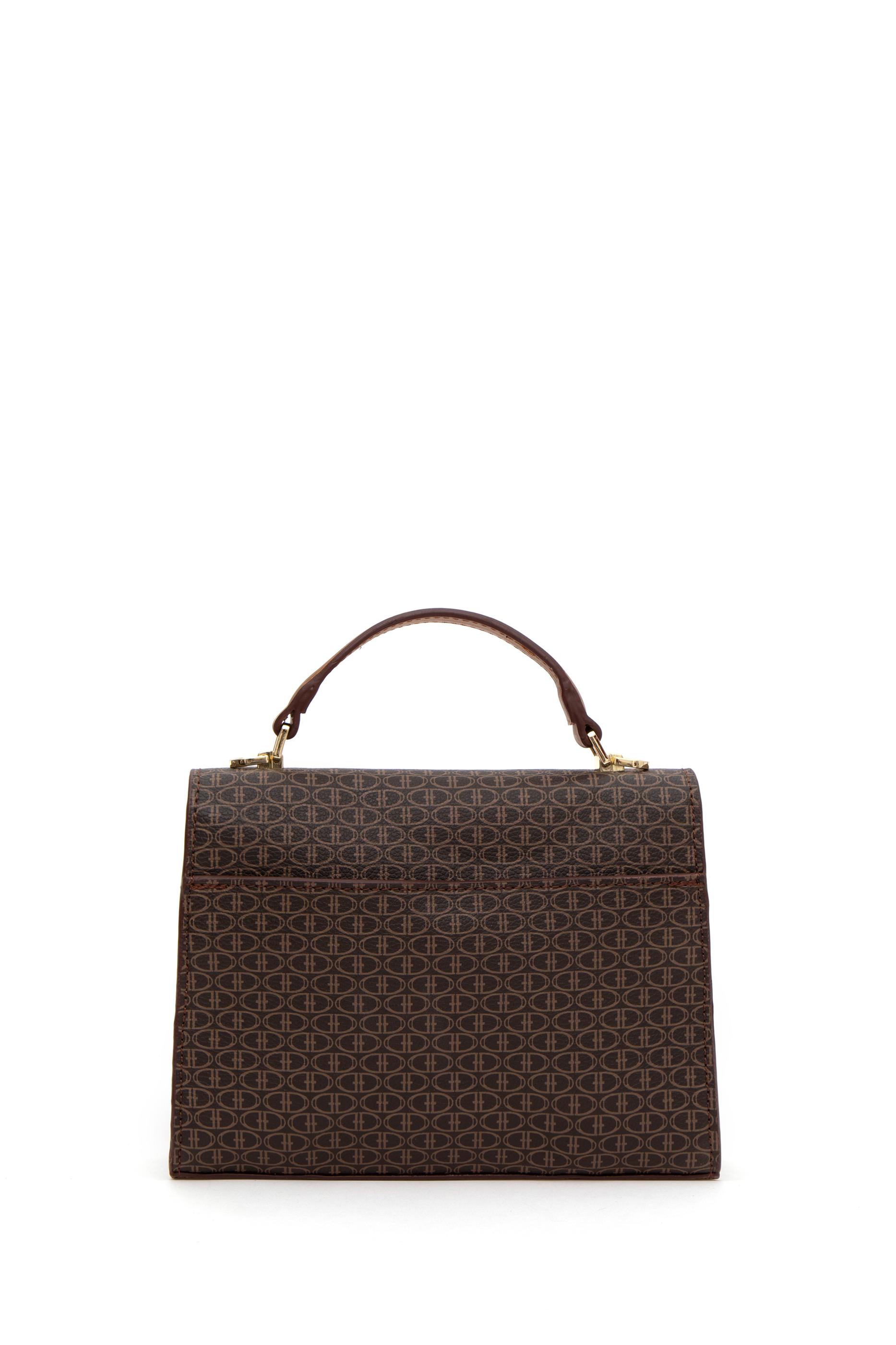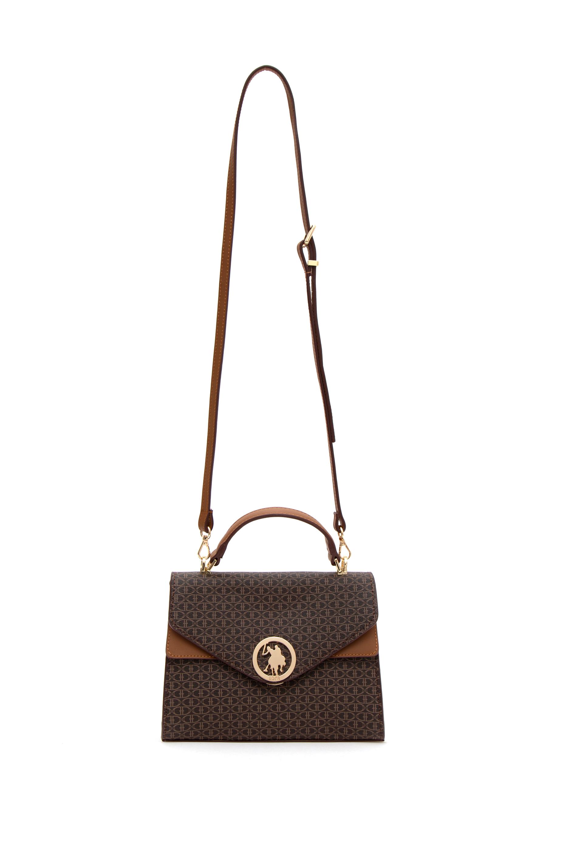 U.S. Polo Assn. kahverengi kol çantası, belirgin hatlara ve flap kapak detayına sahip zarif bir modeldir. Yüzeyinde markaya özgü küçük geometrik desenler yer alırken, kapağın tam ortasında altın tonlu yuvarlak metal logo bulunur. V formundaki kapağı çantaya karakteristik bir siluet kazandırır. Kısa üst sapı elde taşımaya uygun olup, ayarlanabilir omuz askısı sayesinde farklı şekillerde kullanım imkânı sunar. Kahverenginin iki tonuyla oluşturulan kontrast geçişler, tasarıma görsel derinlik katar. Yapısı sabit formda olup, hem klasik hem modern stillerle rahatlıkla uyum sağlar.