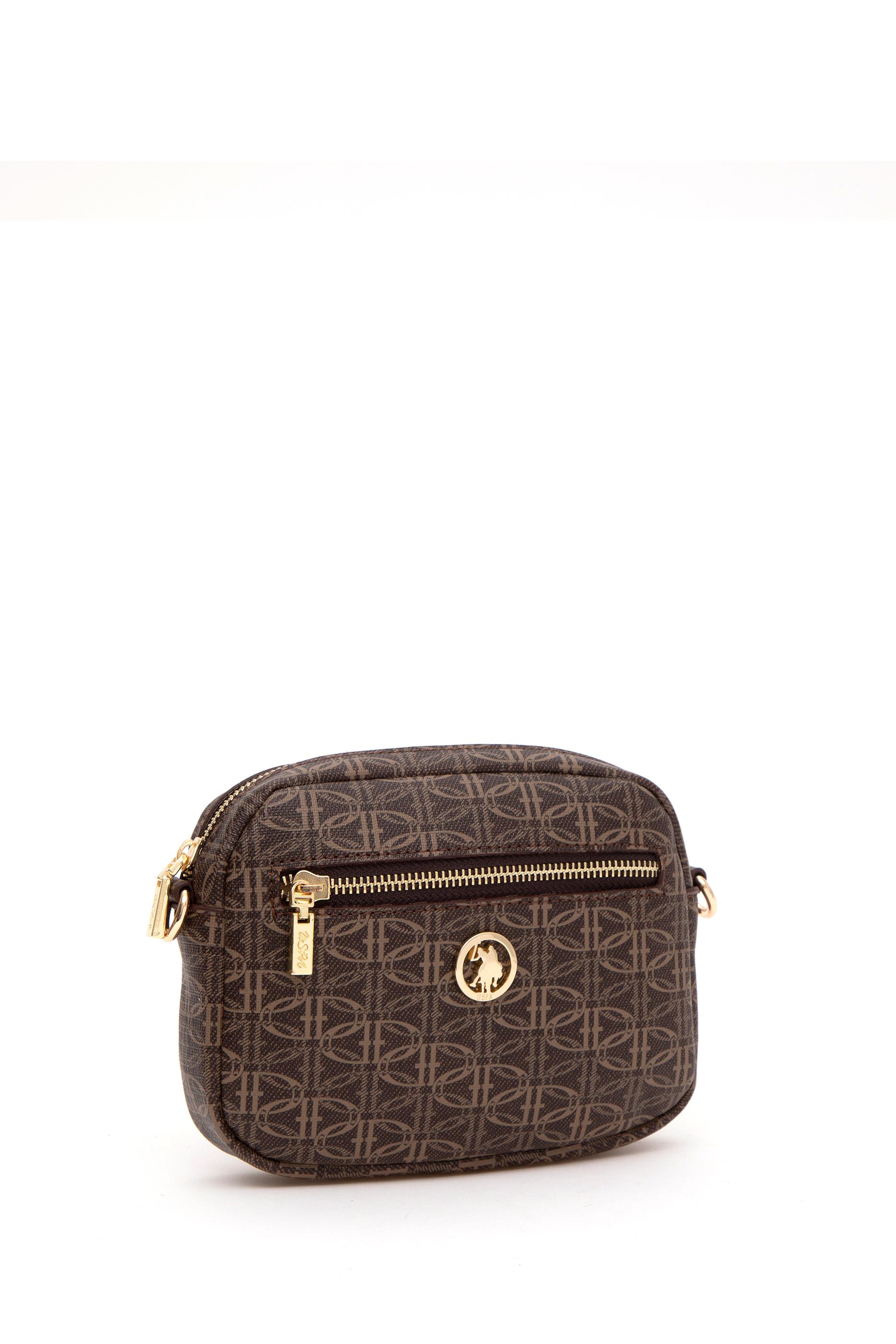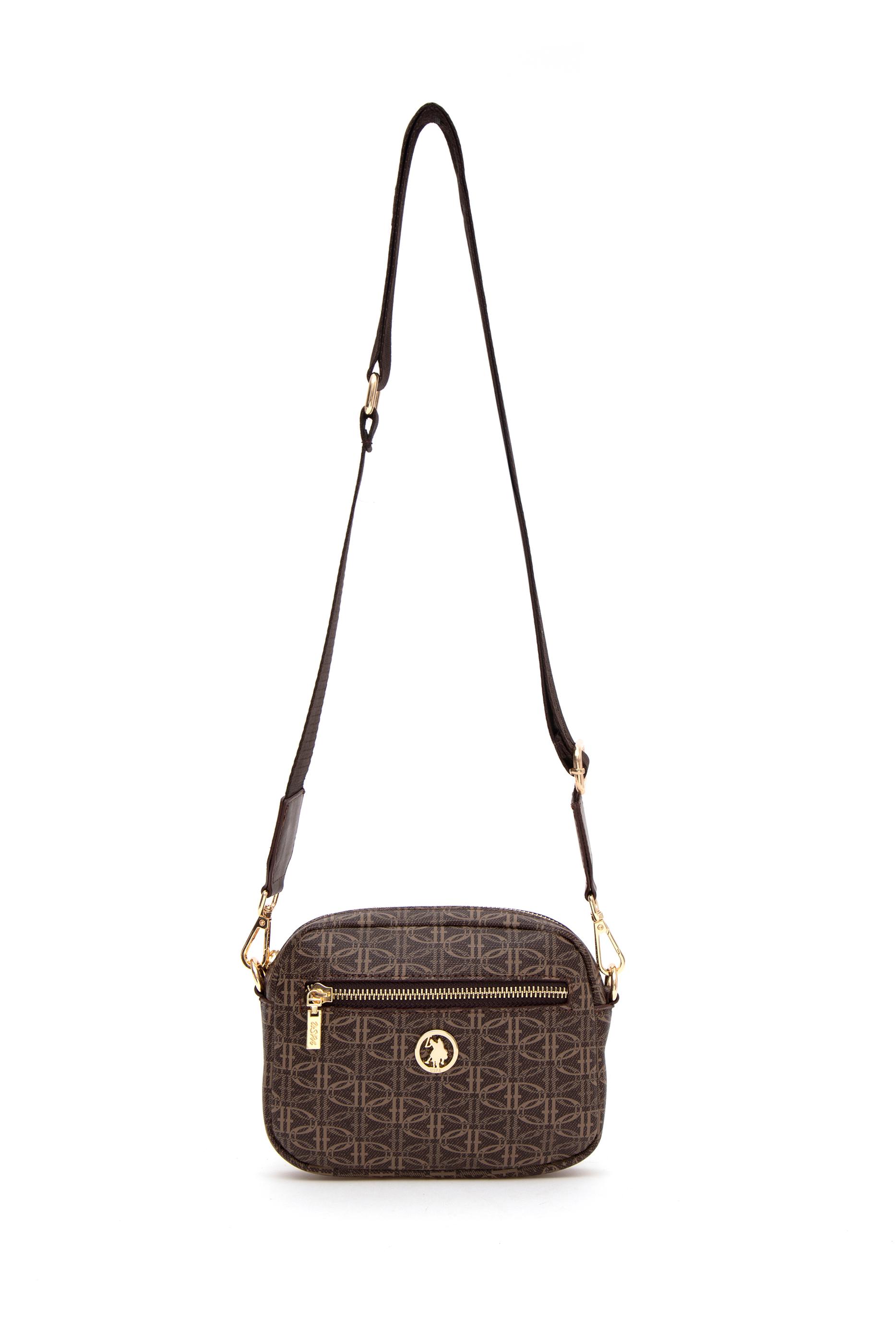U.S. Polo Assn. kahverengi çapraz çanta, kutu formdaki yapısıyla hem modern hem de fonksiyonel bir görünüm sunar. Kahverengi görünümlü zemin üzerine uygulanan monogram desen baskısı, yüzeye hareket katar. Altın renkli fermuar ve arma detayları tasarıma şıklık katarken, kalın dokulu omuz askısı çantaya sportif bir karakter kazandırır. Yapısı sert ve formunu koruyan bu model, küçük boyutuna rağmen işlevsel bölmeleriyle günlük kullanım için pratik bir alternatif sunar.
