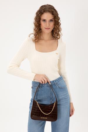 Mezurayı kol evinin altından, göğsün tepe noktasına yerleştirerek, yere parelel ölçüm alınız.