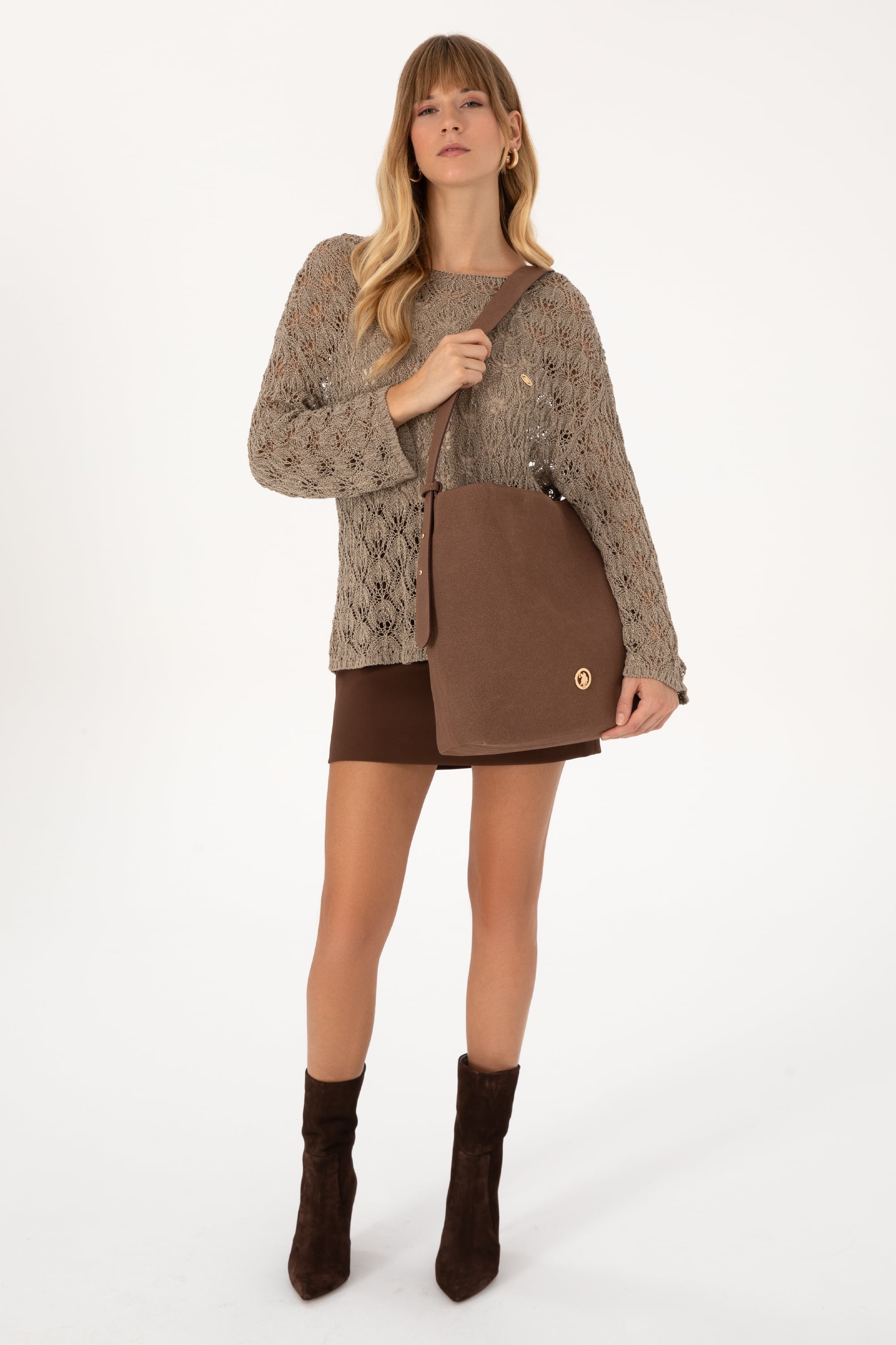 - Kadın Kahverengi Süet Omuz Çantası