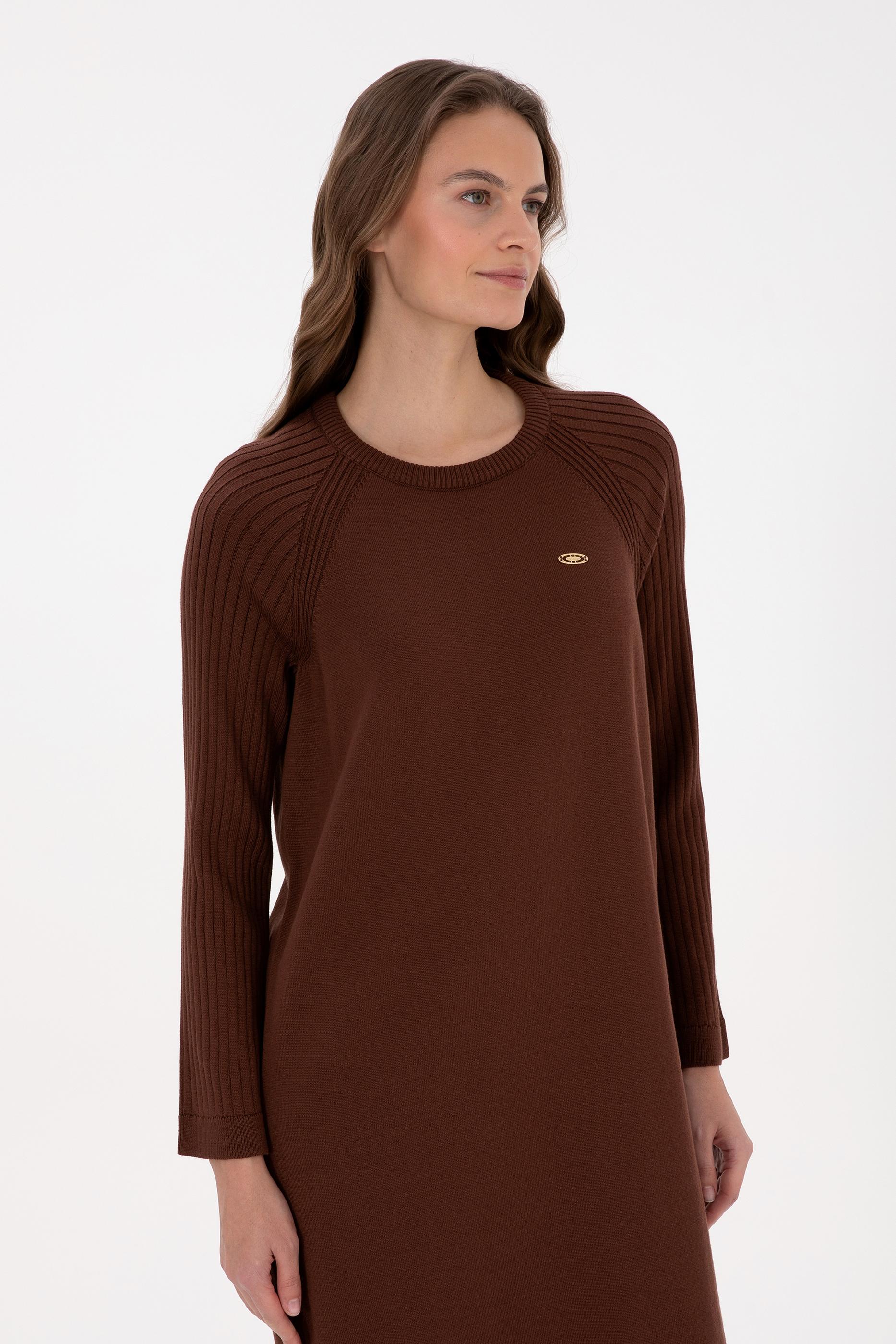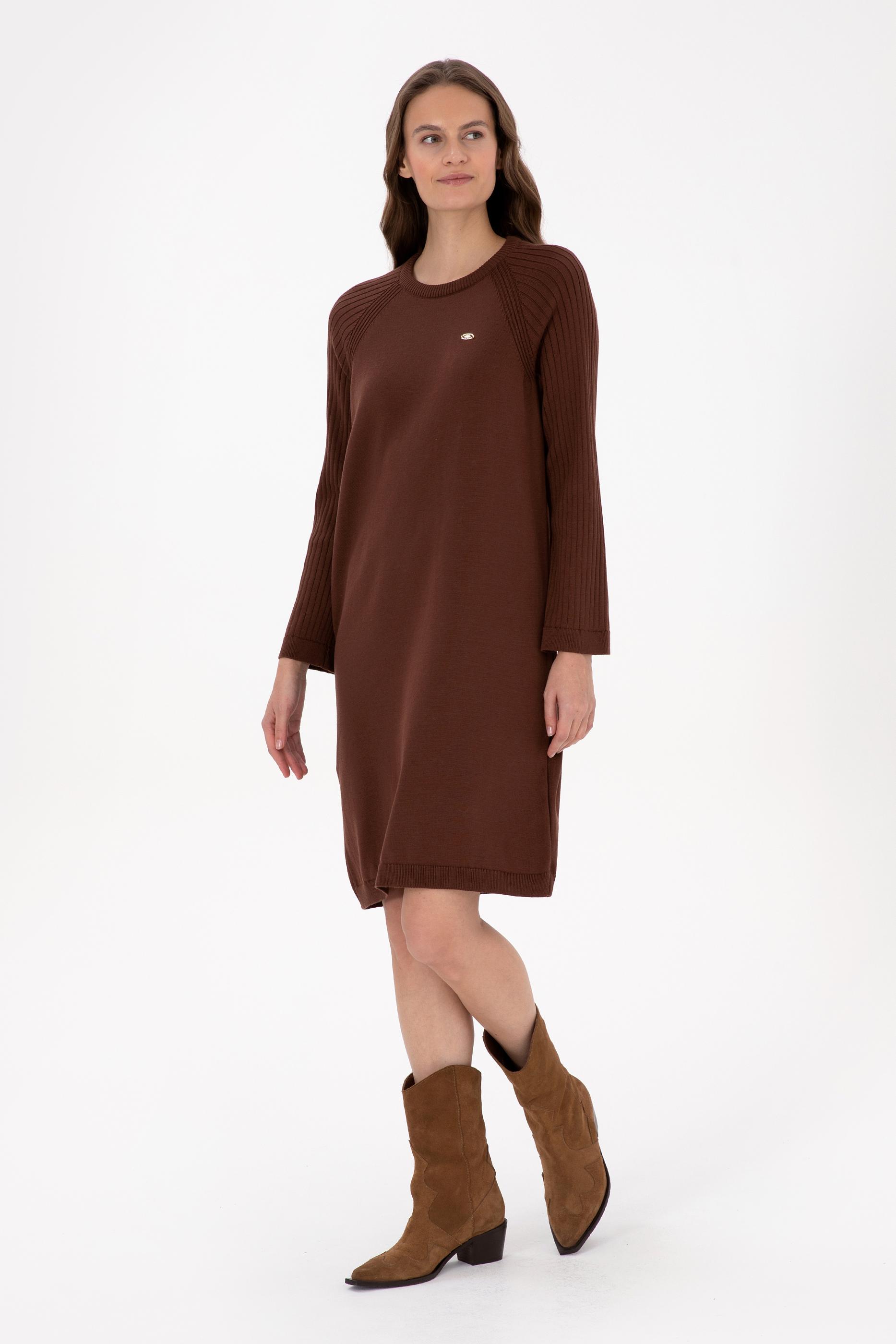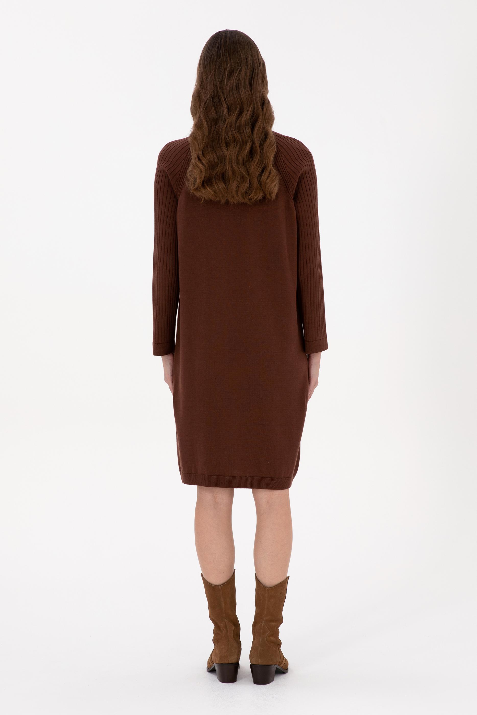 Zamansız kahverengi rengiyle her mevsim şıklık sunan bu triko elbise, midi boy uzunluğu ve bisiklet yaka detayıyla sade ama güçlü bir stil ortaya koyuyor. Yumuşak dokusu ve regular fit kesimi sayesinde hem günlük kullanımda hem de şık davetlerde rahatlıkla tercih edilebilecek bir tasarım. Kahverenginin asil duruşu, minimal formuyla birleşerek gardıroplarda uzun süre yerini koruyacak bir klasik yaratıyor. İster topuklu çizmeler ve uzun bir kabanla kış şıklığını tamamlayın, ister spor ayakkabılar ve oversize bir montla daha rahat bir görünüm elde edin; bu elbise her kombinle uyum sağlayacak esneklikte. Online özel koleksiyonun parçası olan bu model, konforu ve şıklığı aynı potada eriterek hem işlevsel hem de estetik bir seçenek sunuyor.