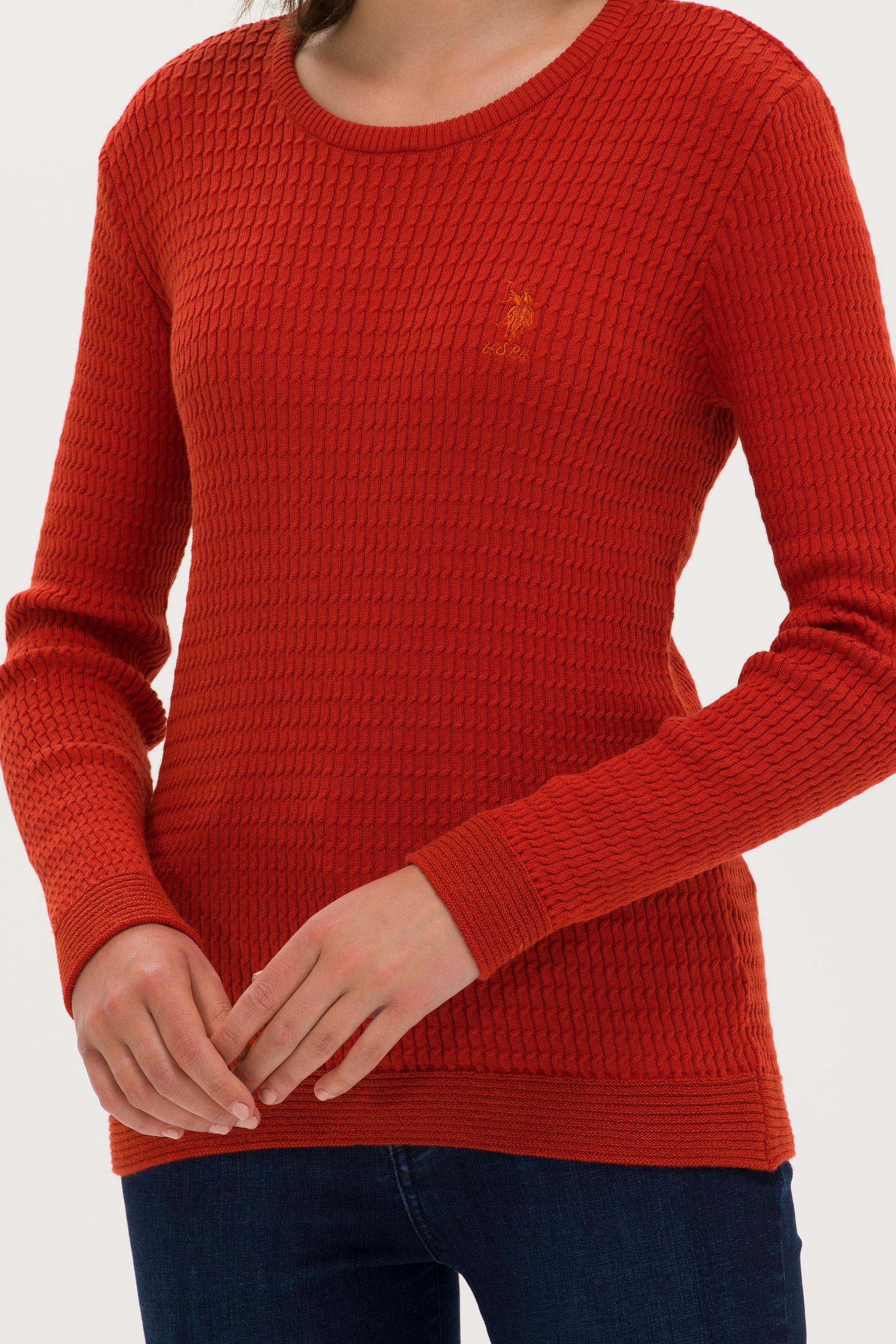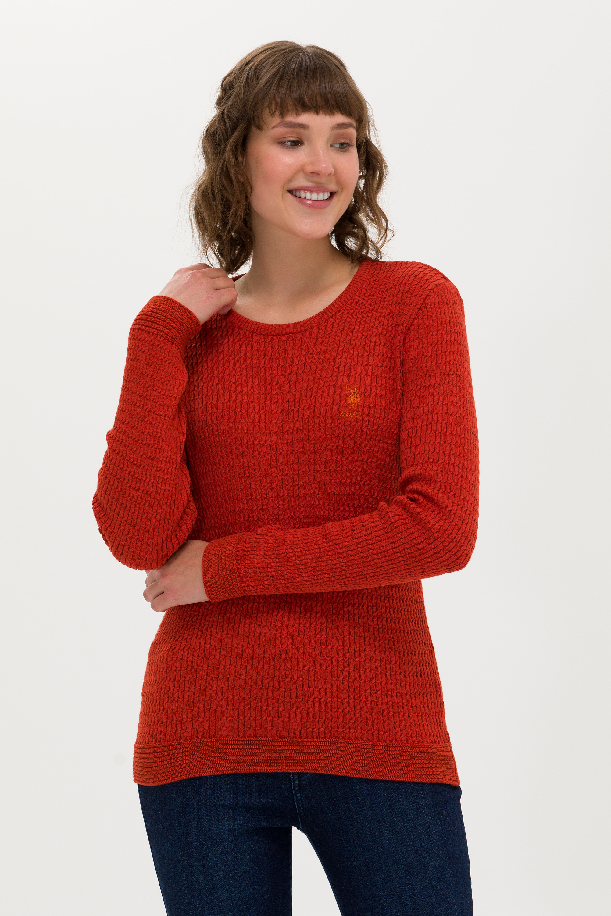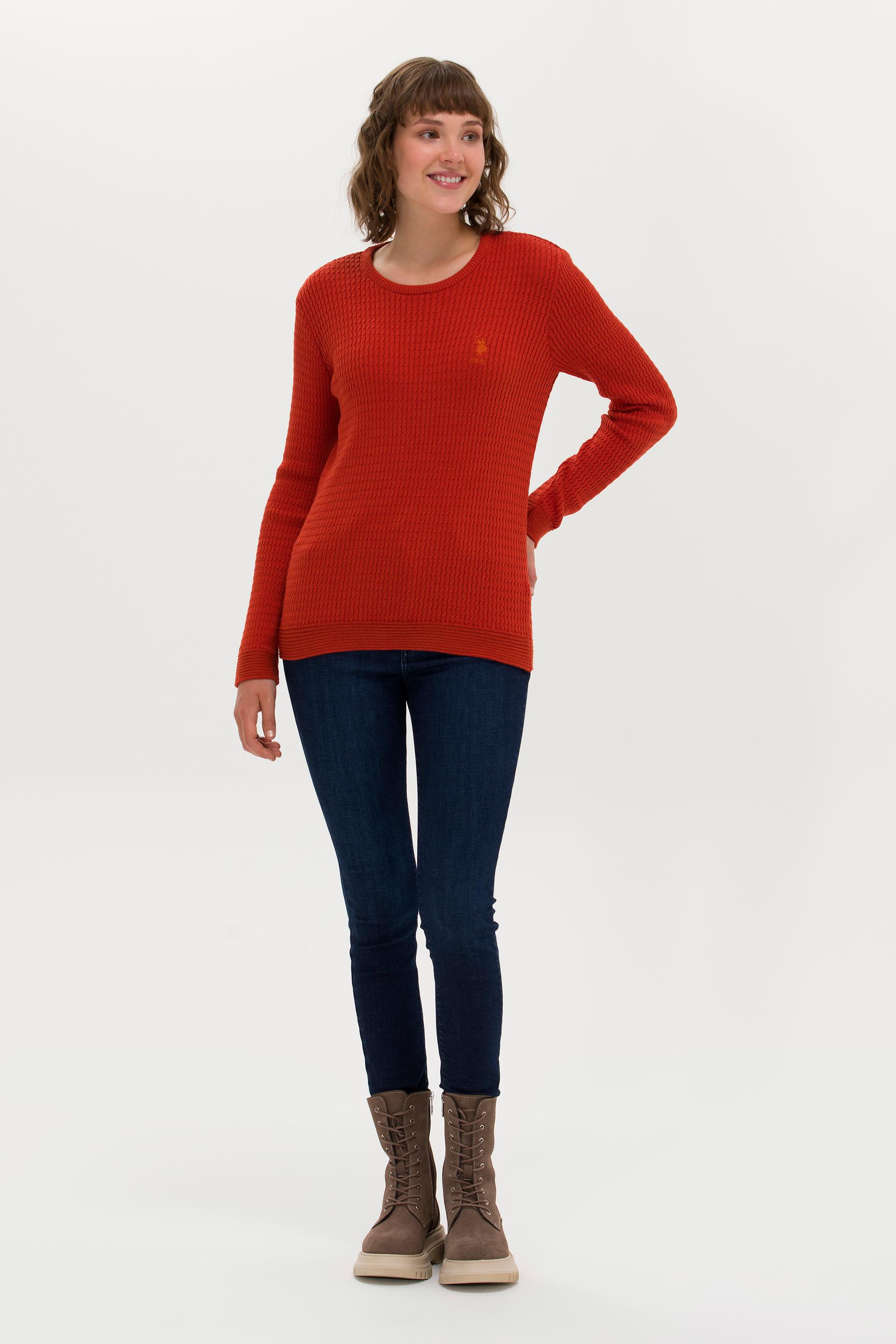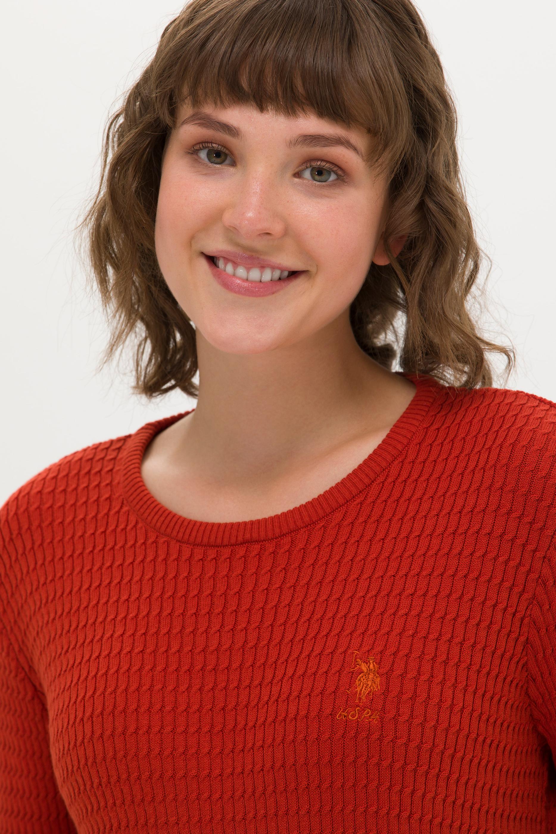 Kadın Kiremit Bisiklet Yaka Basic Kazak