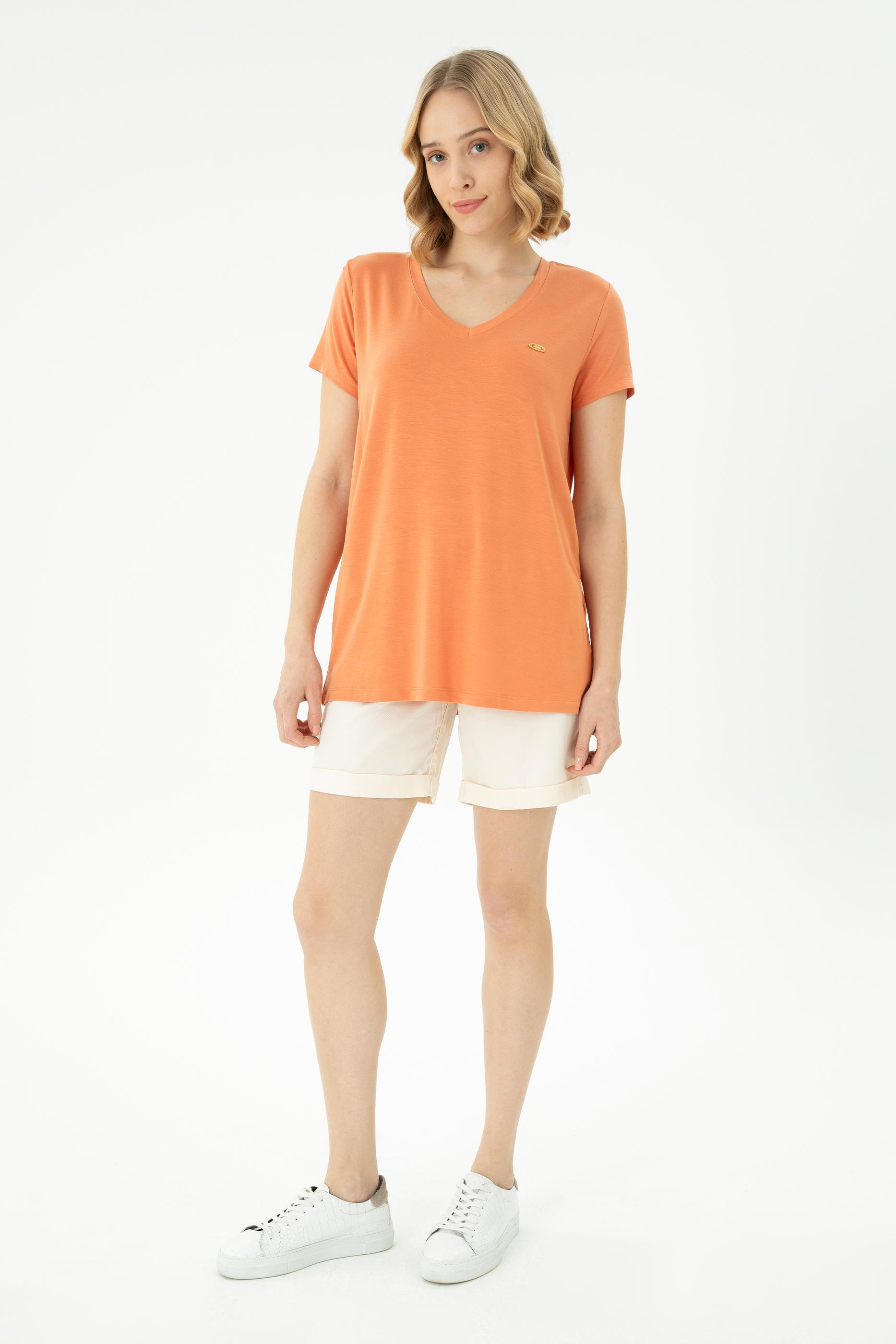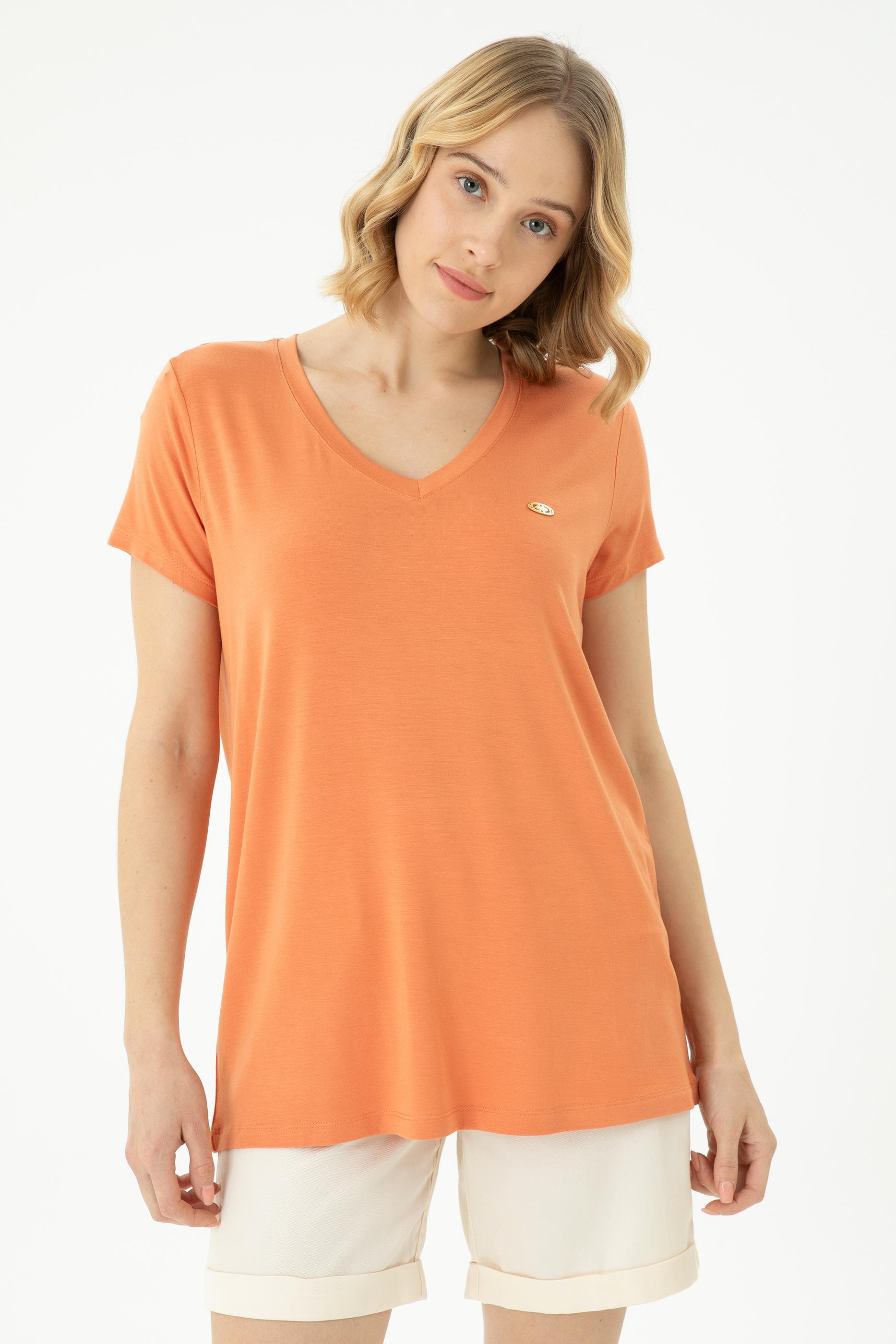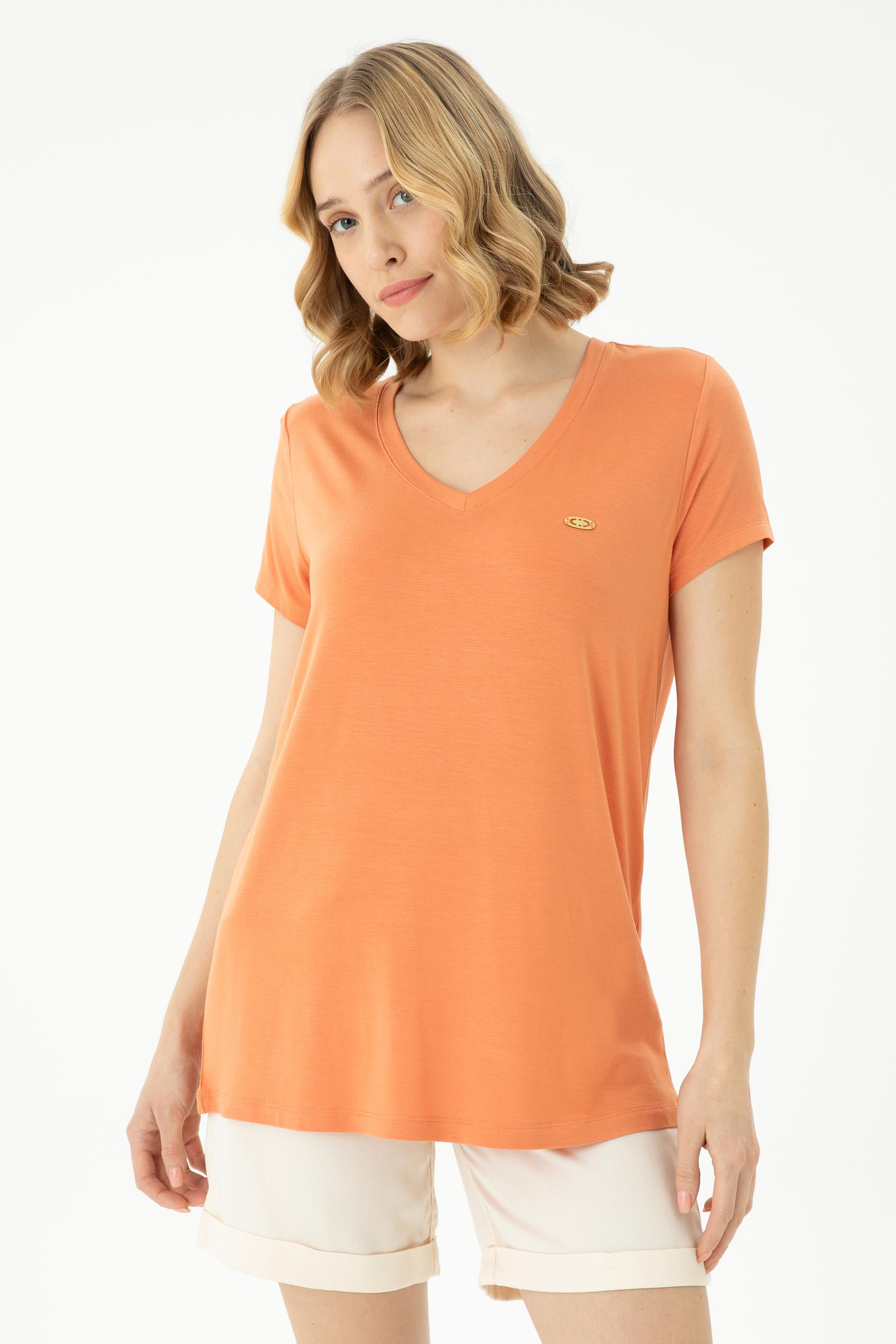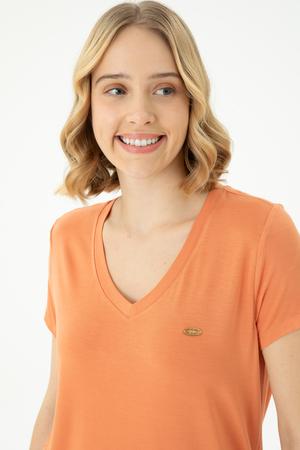 Kadın Kiremit Basic V Yaka Tişört
