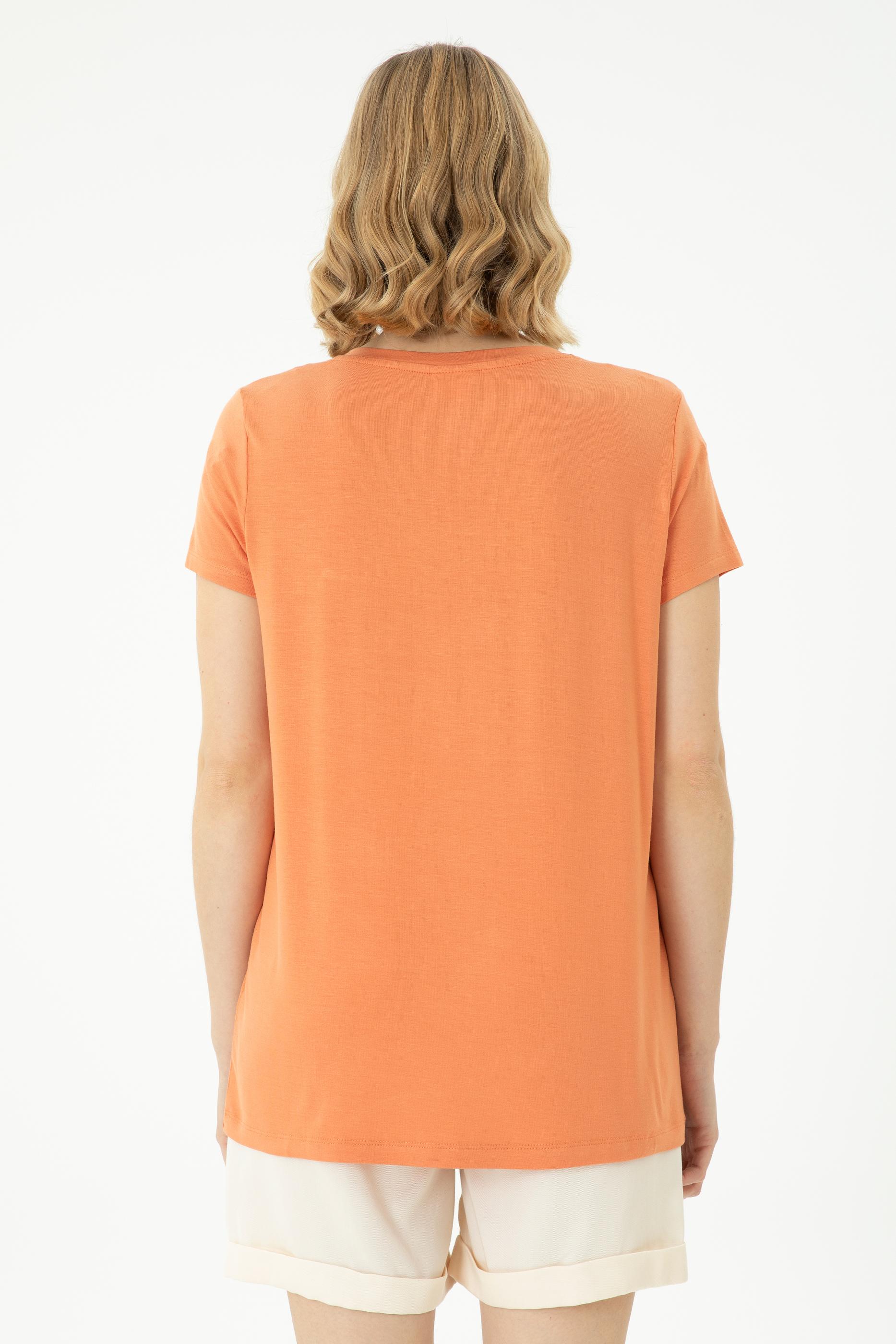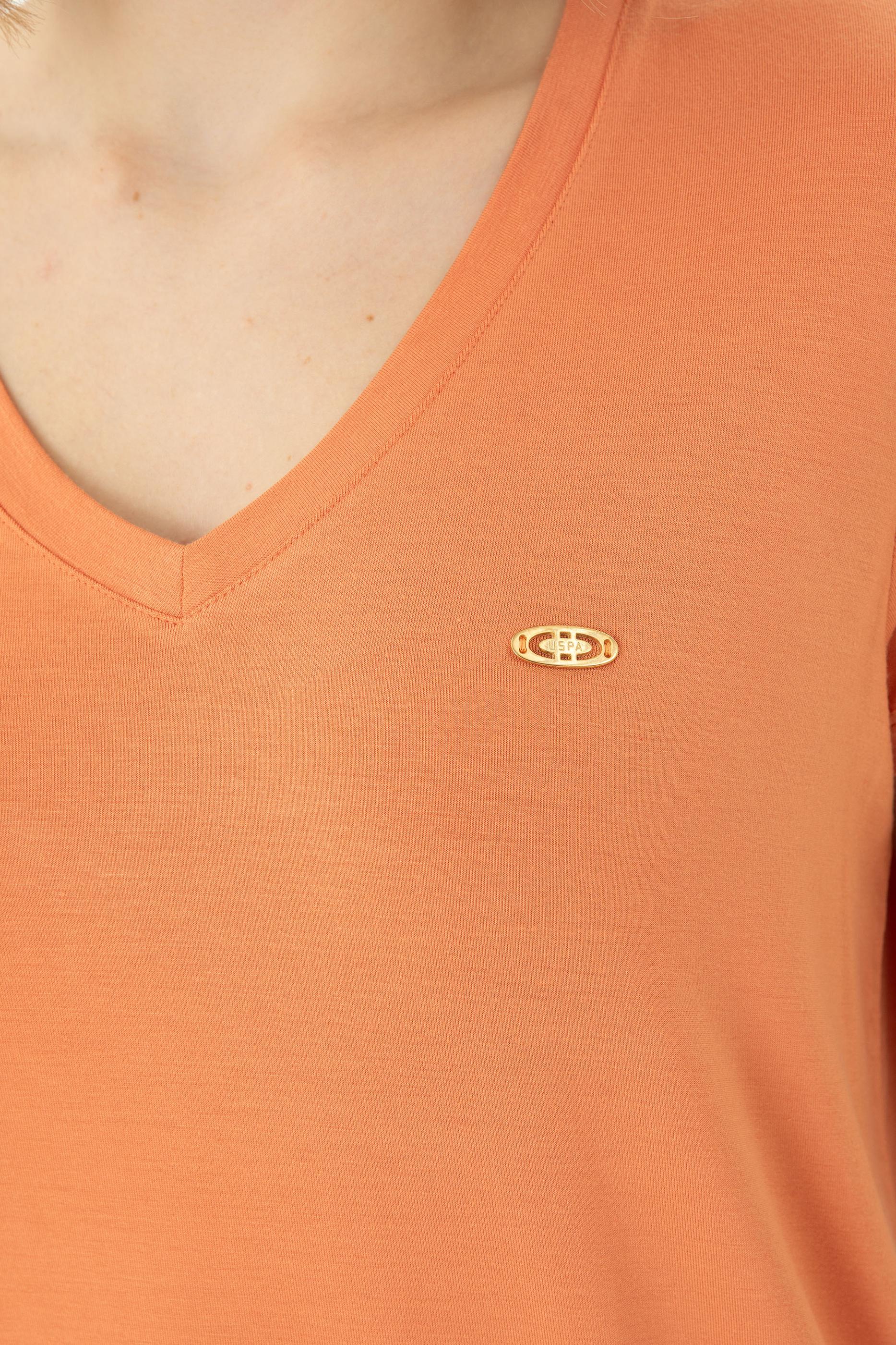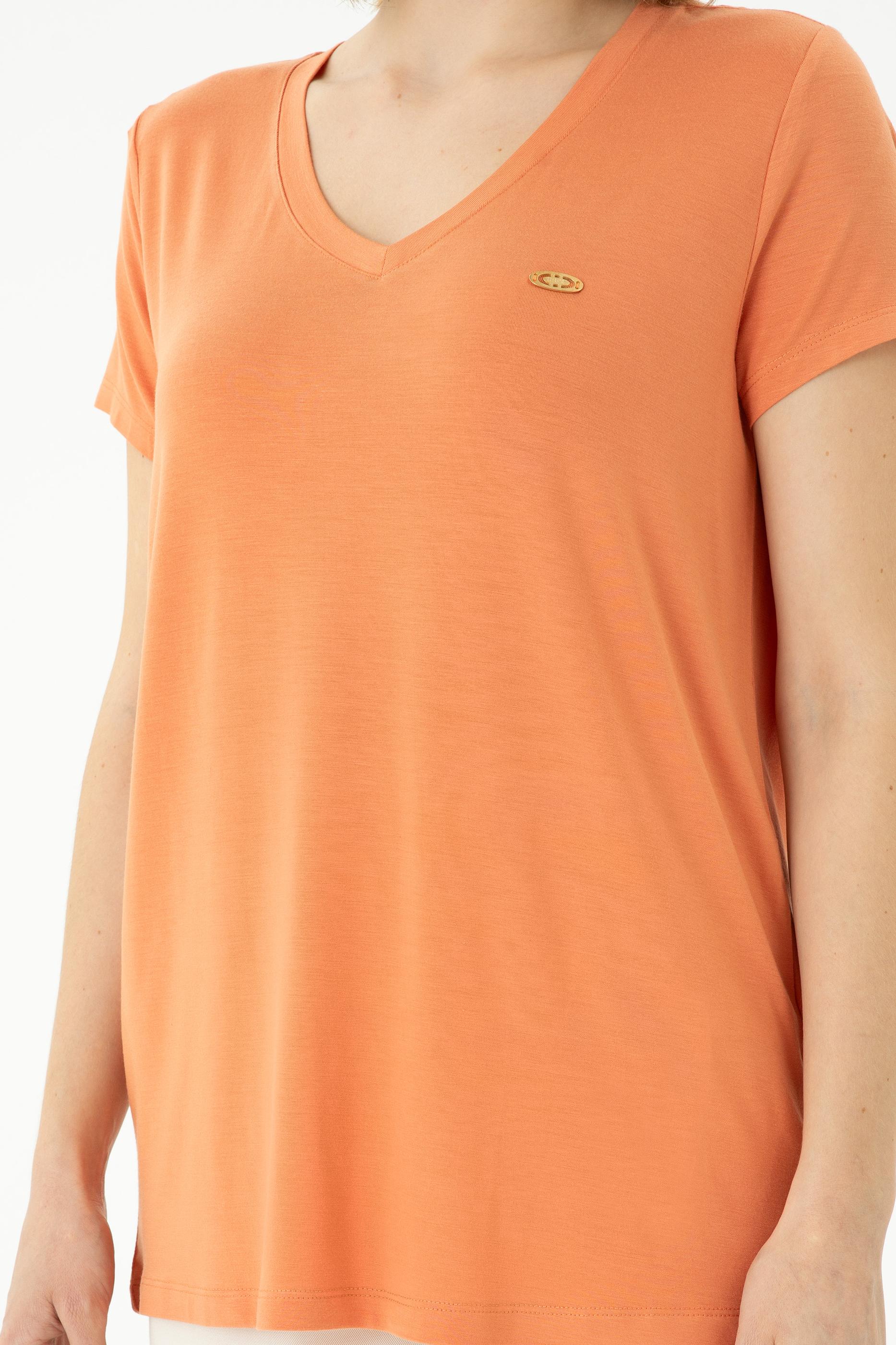 Kadın Kiremit Basic V Yaka Tişört