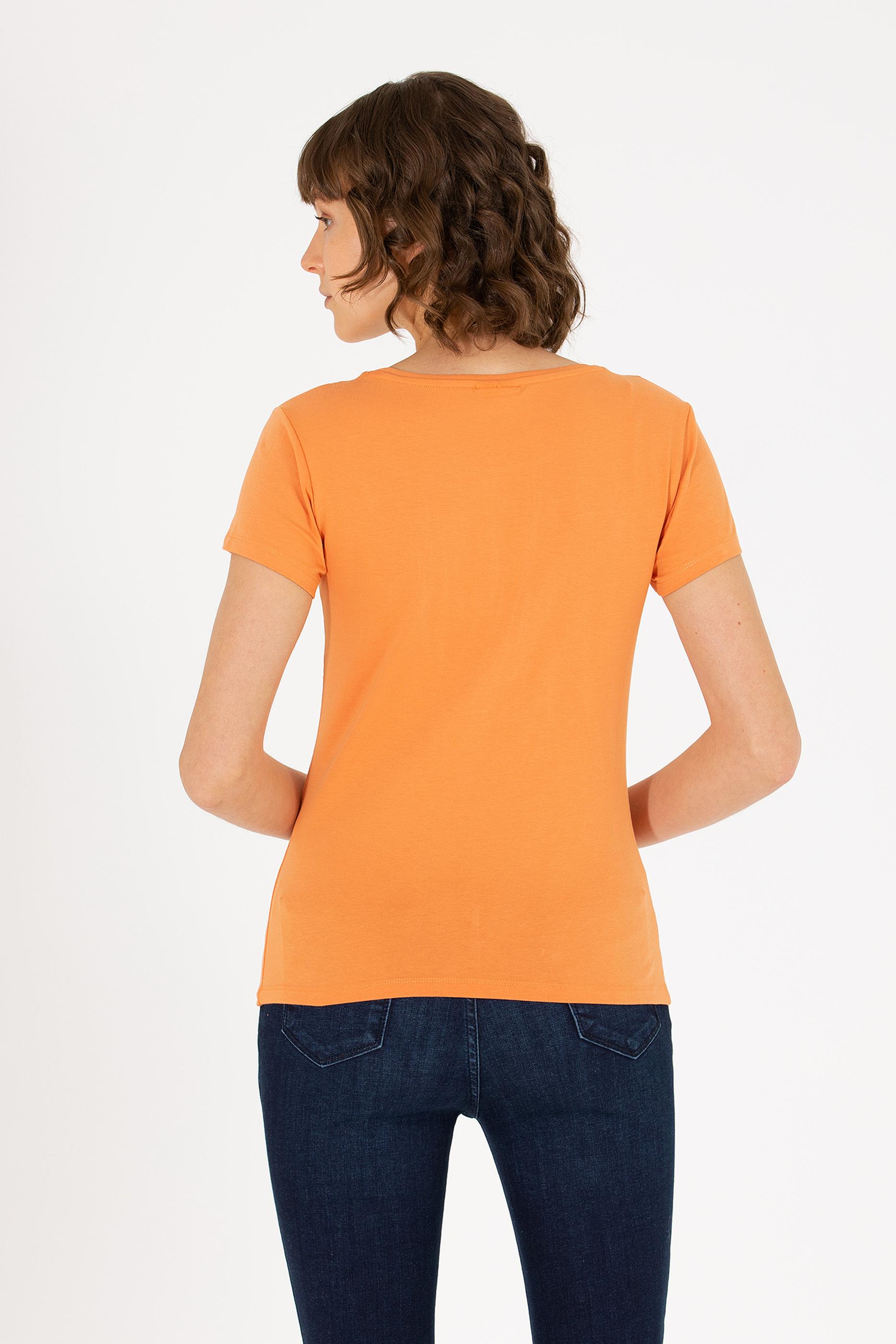 Kadın Kiremit Bisiklet Yaka Basic Tişört