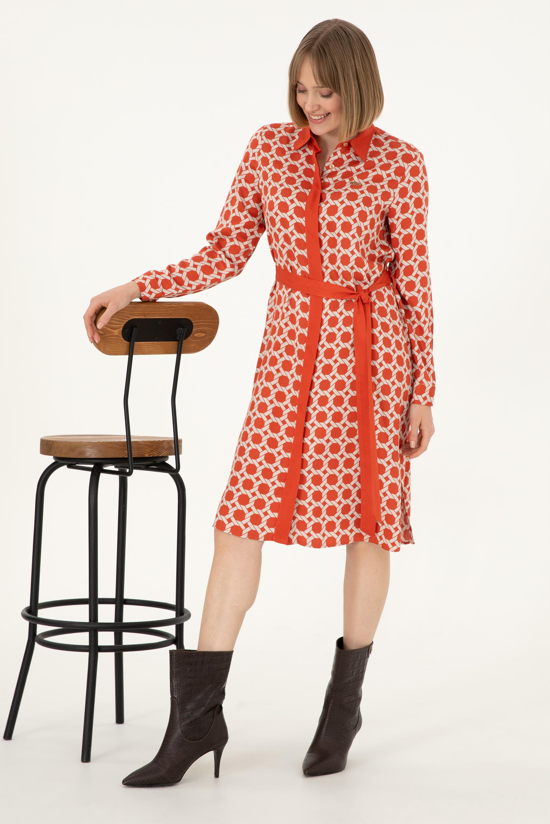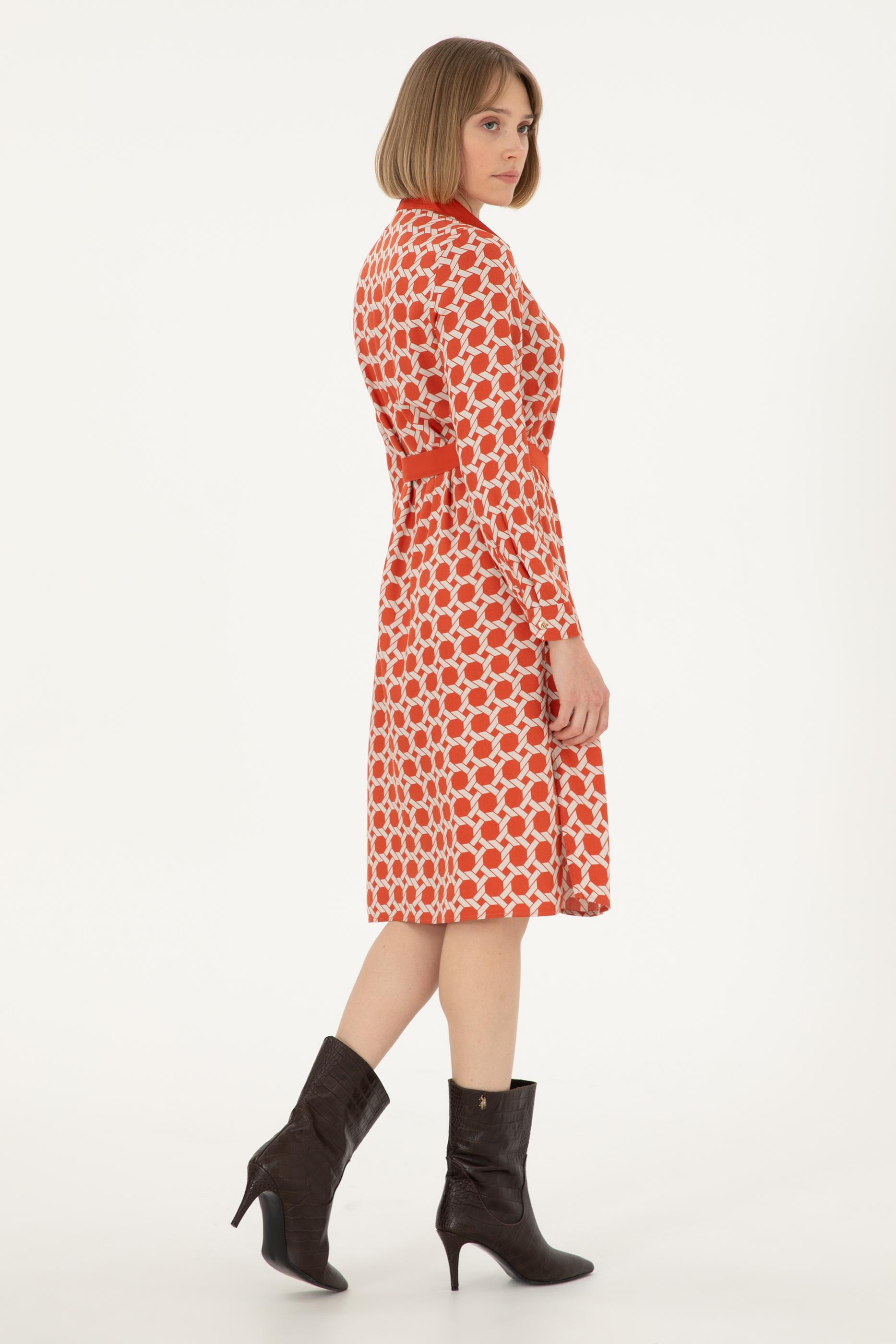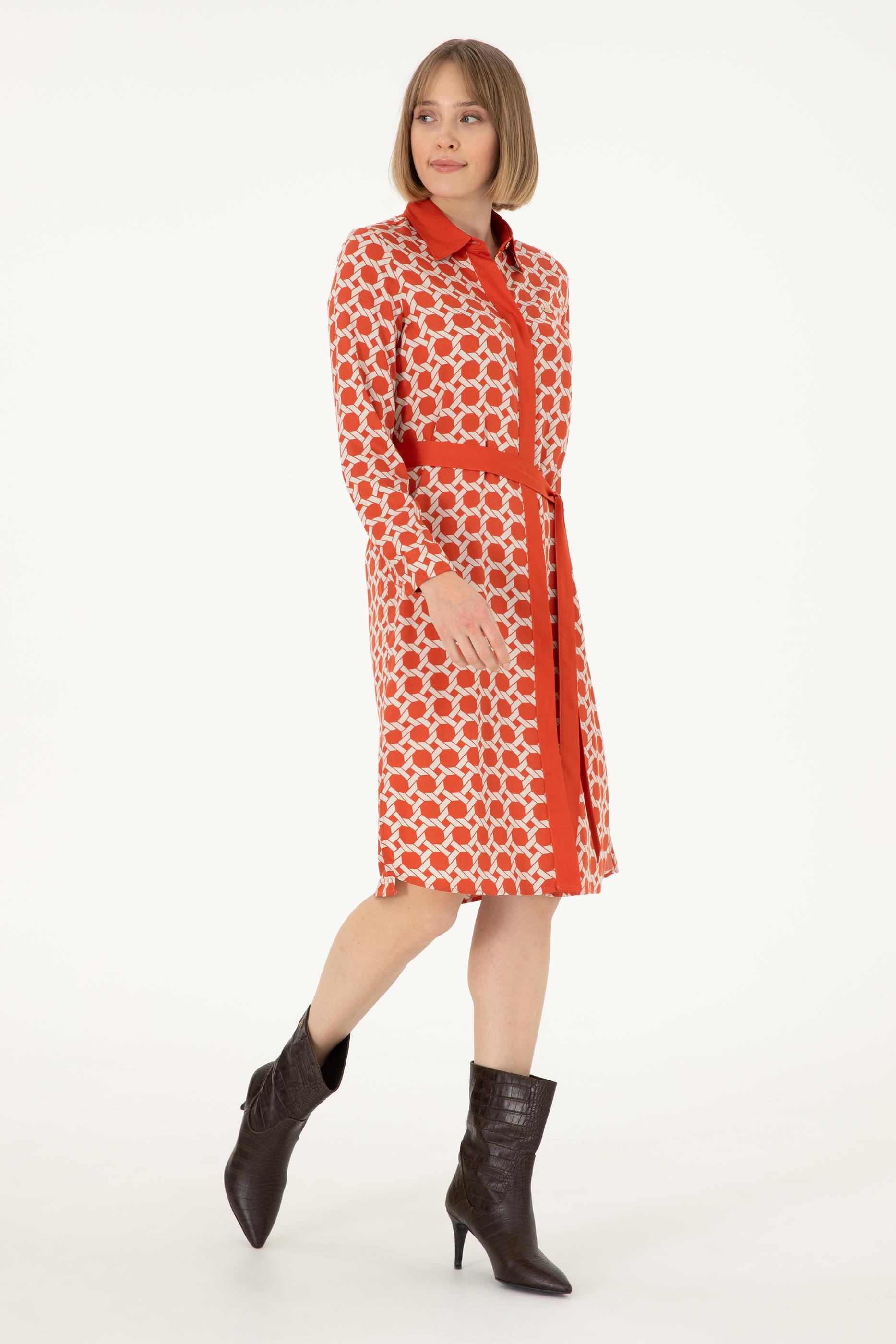 Kadın Kiremit Midi Boy Dokuma Elbise