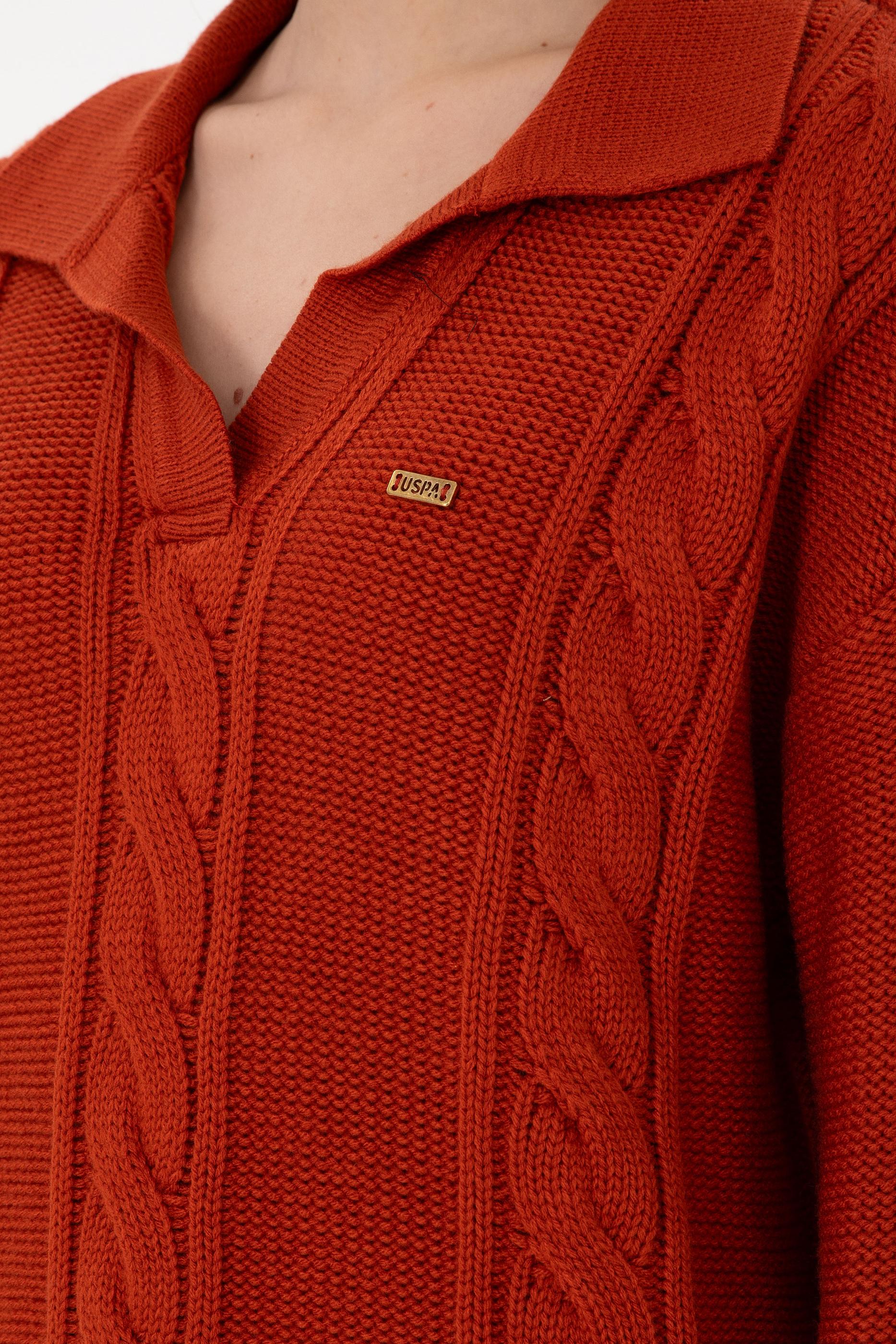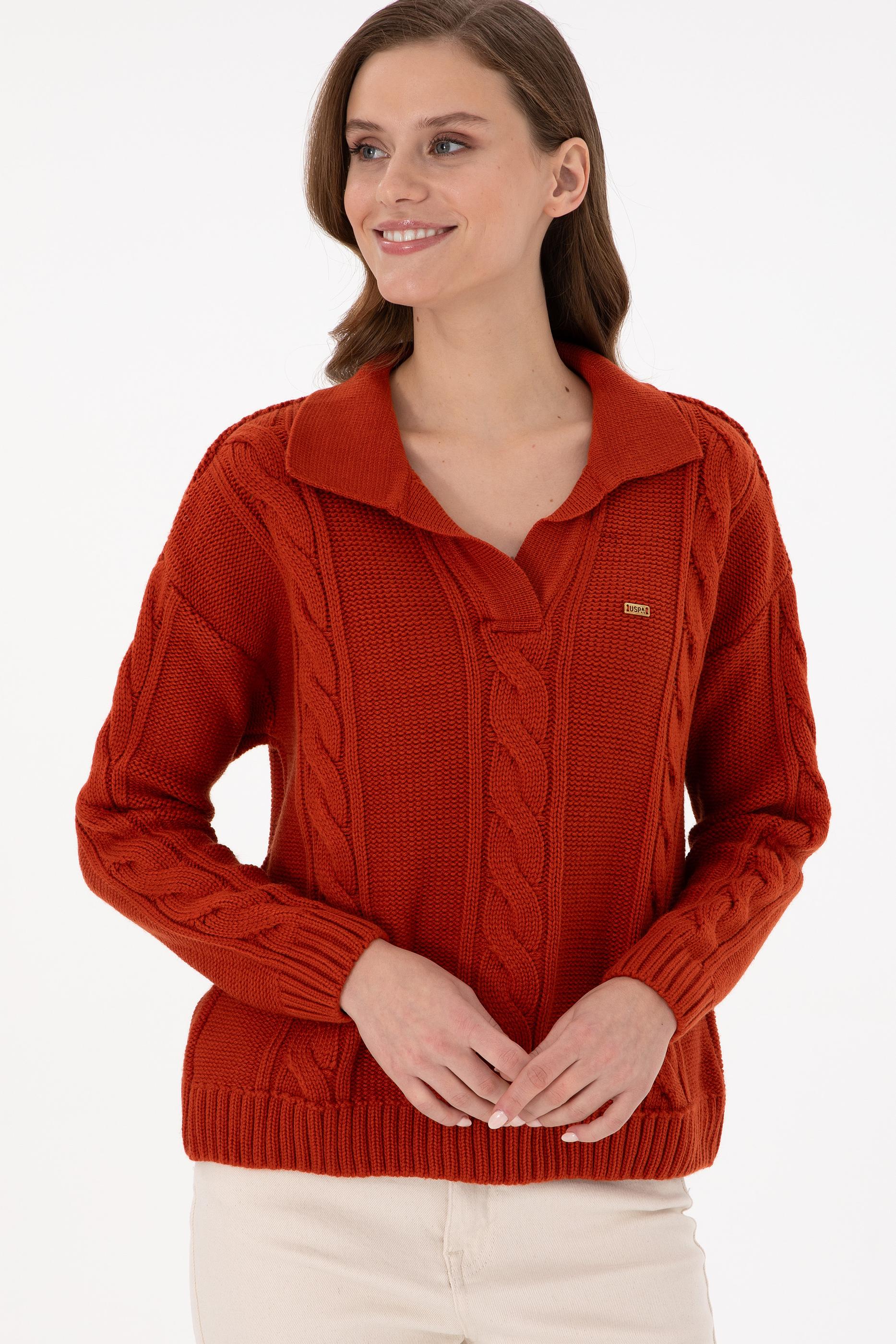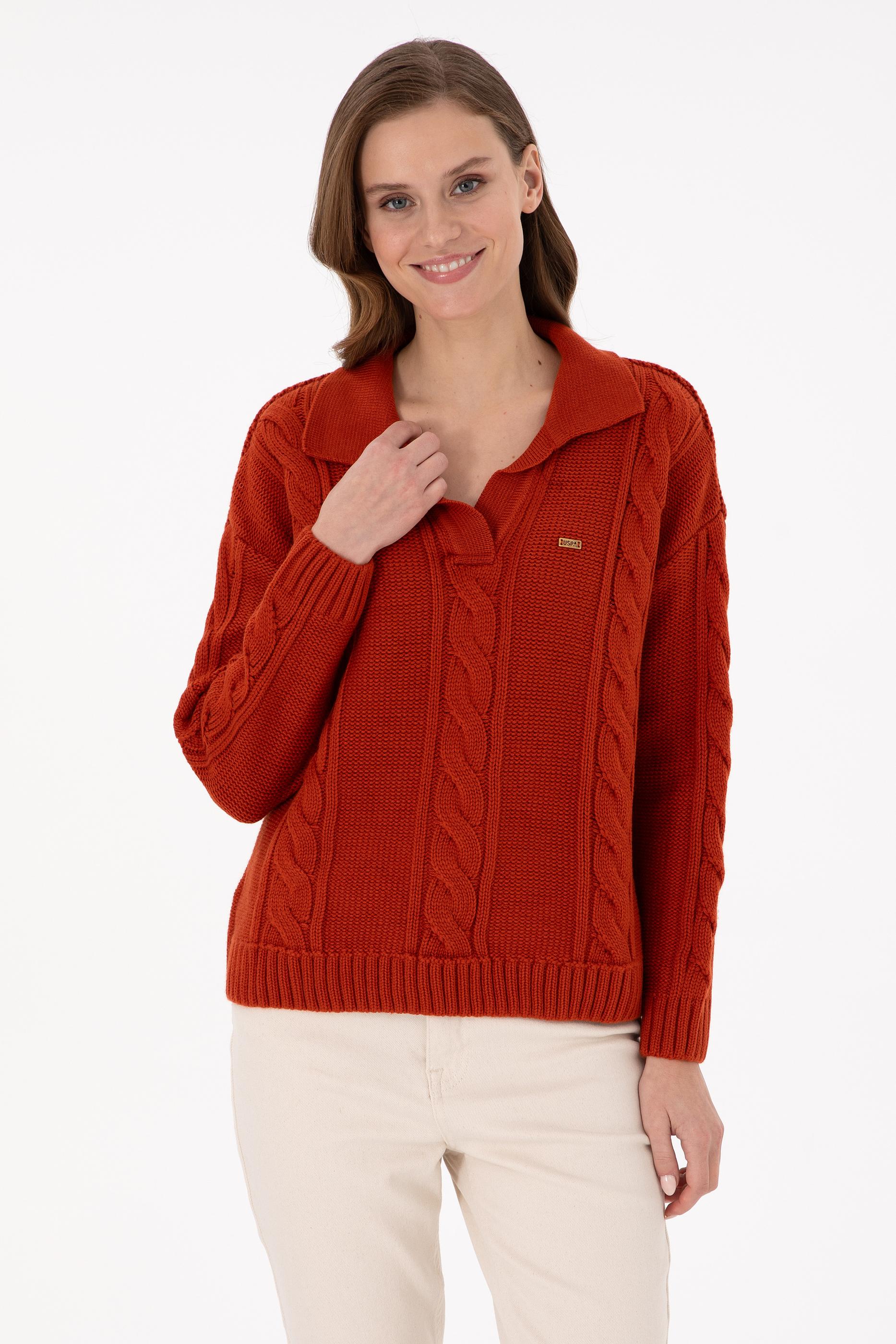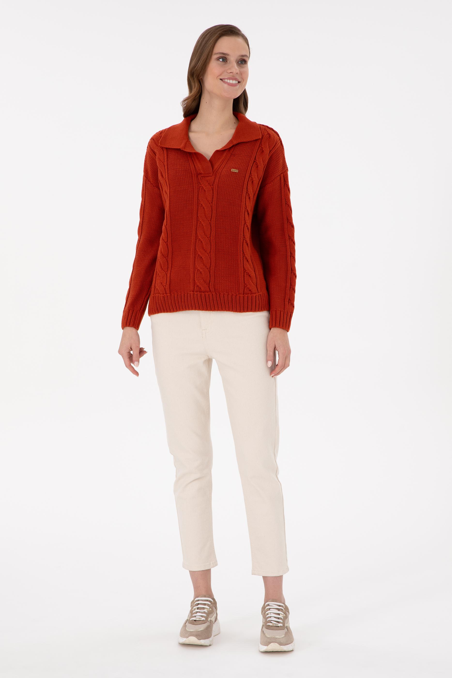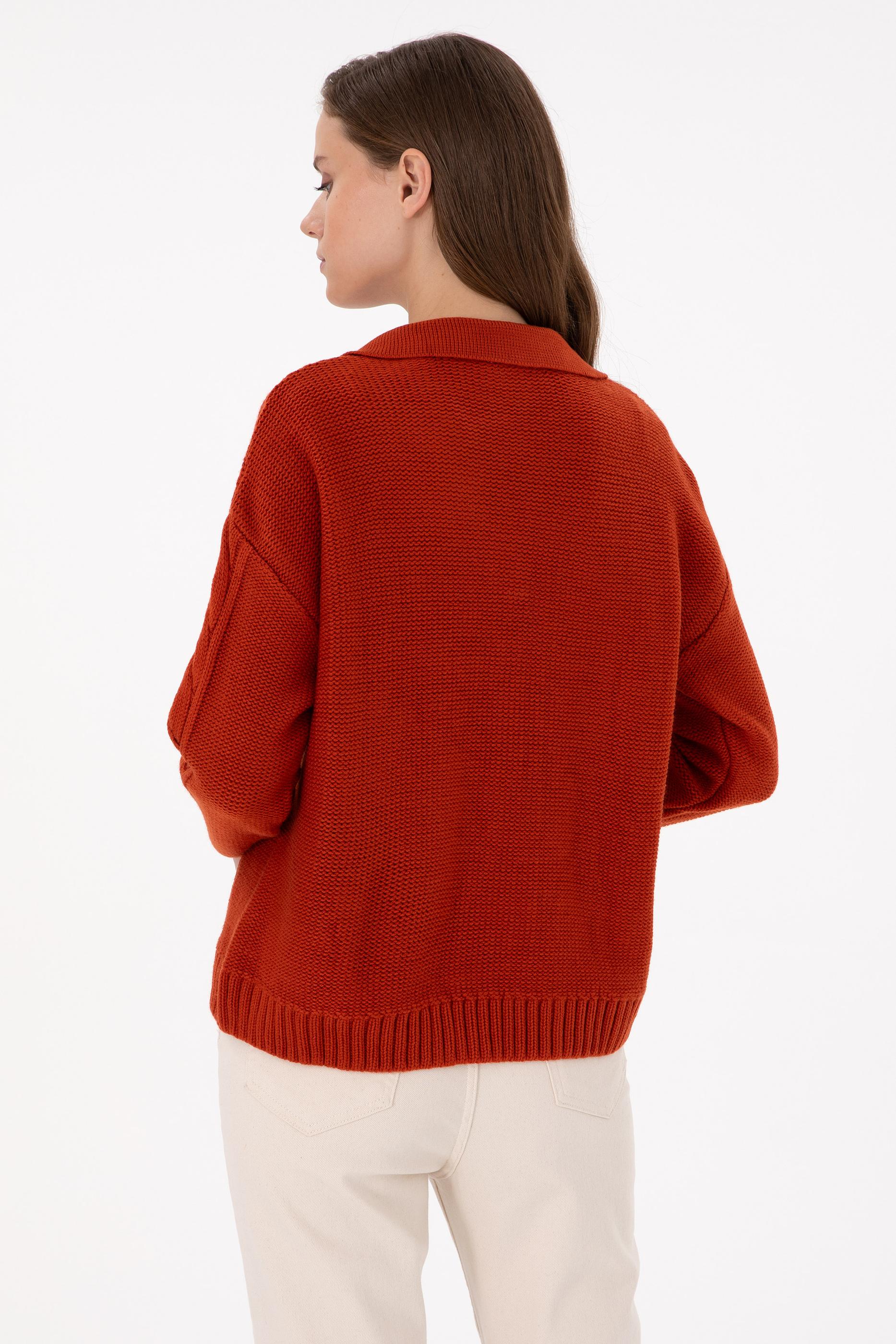 Kadın Kiremit Polo Yaka Kazak