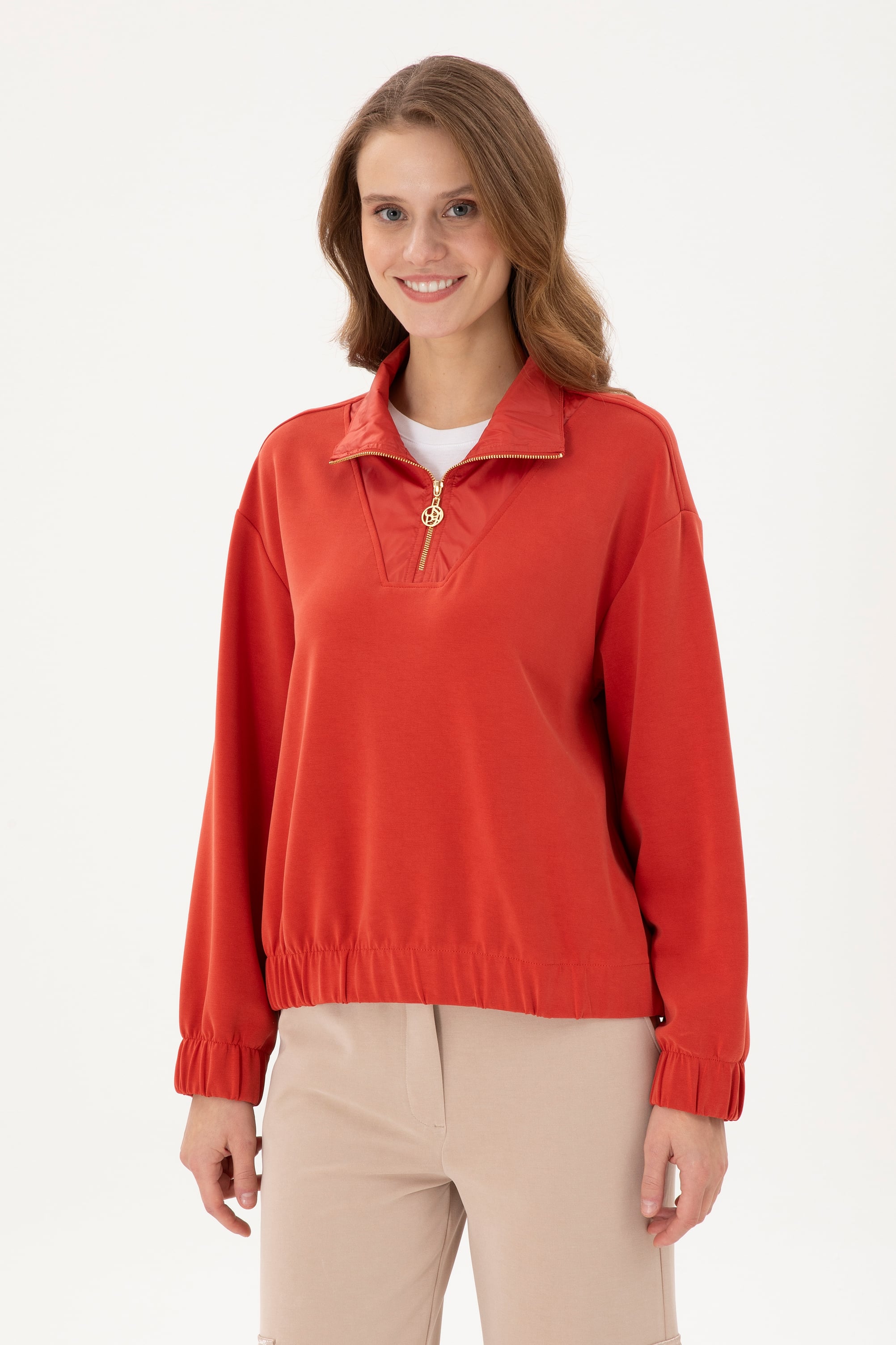 - Kadın Kiremit Dik Yaka Sweatshirt