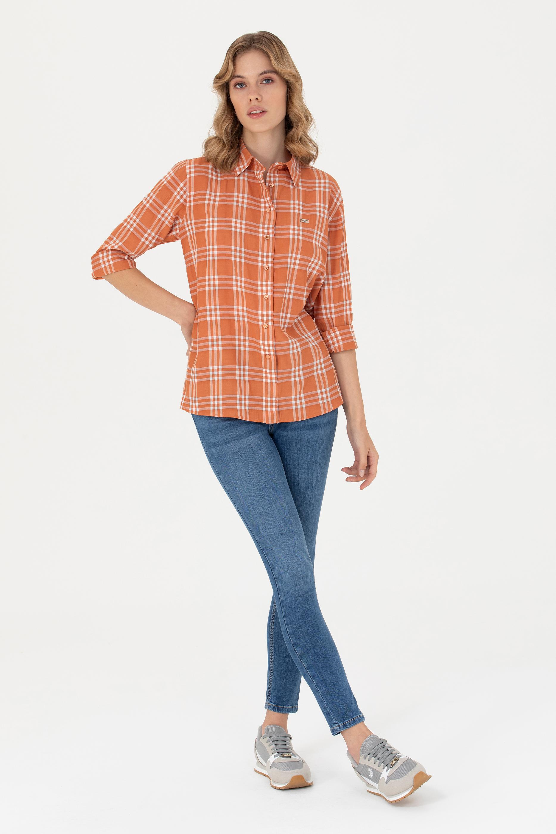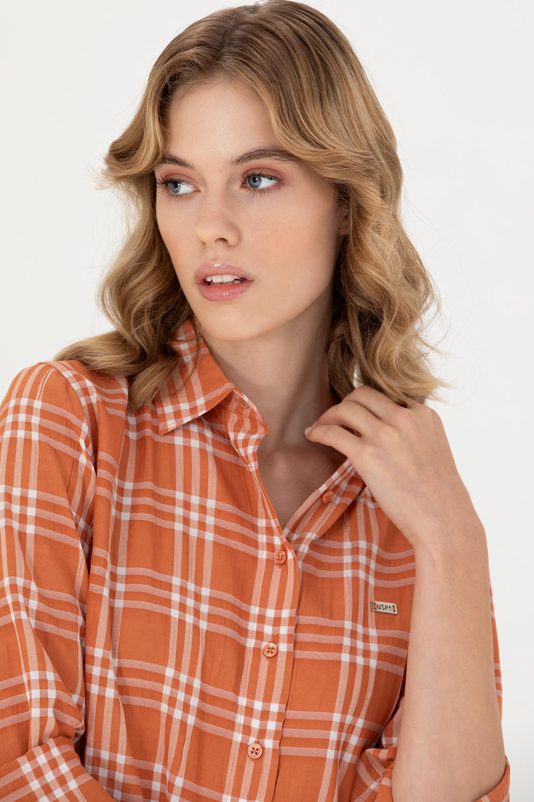 Kadın Kiremit Uzun Kollu Gömlek