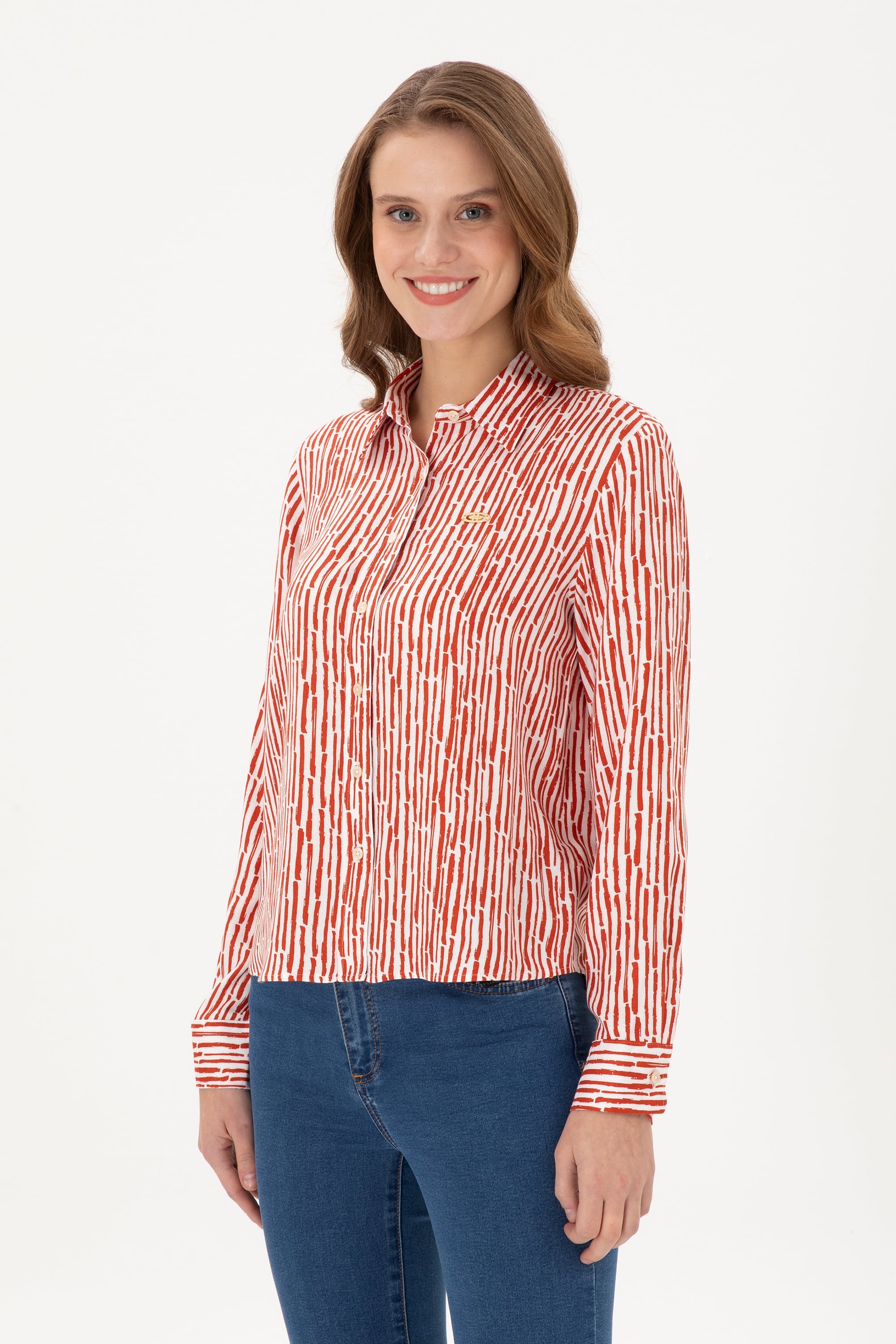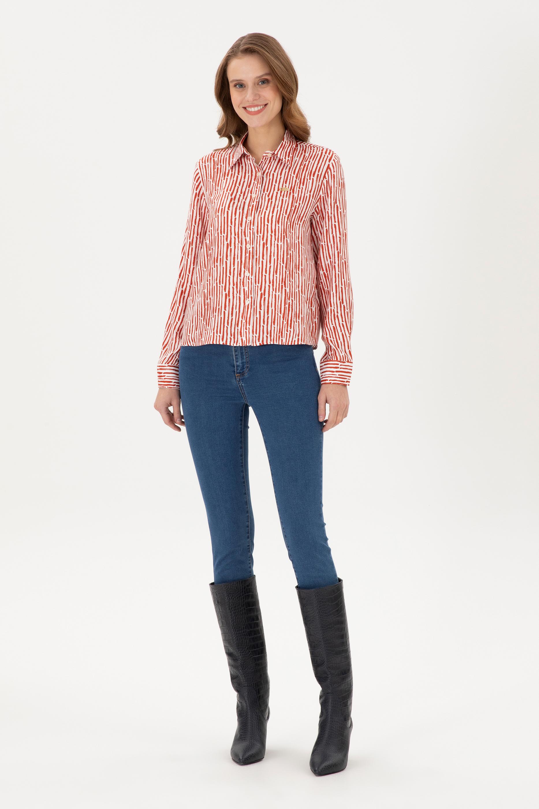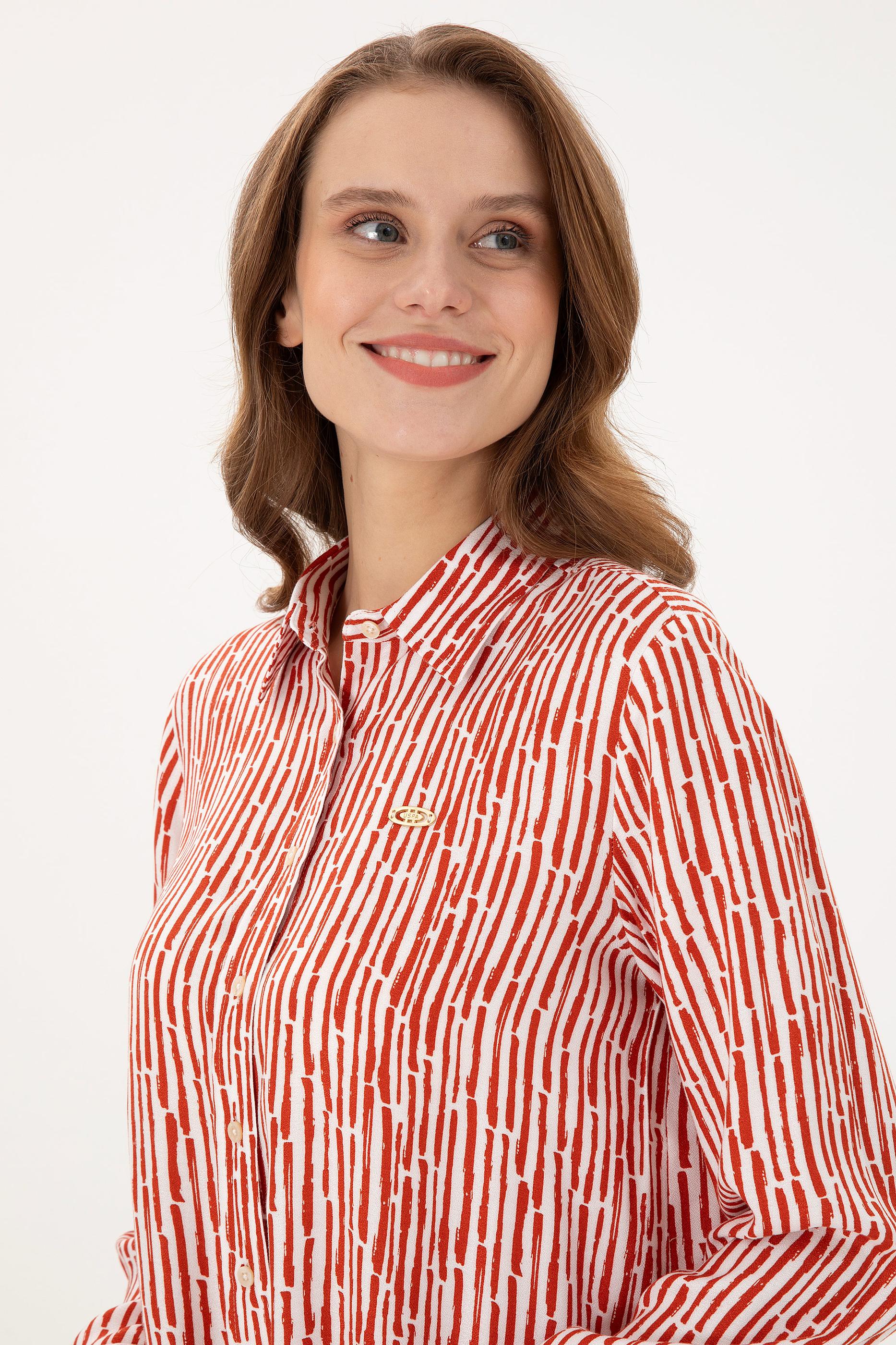 Kadın Kiremit Uzun Kollu Gömlek